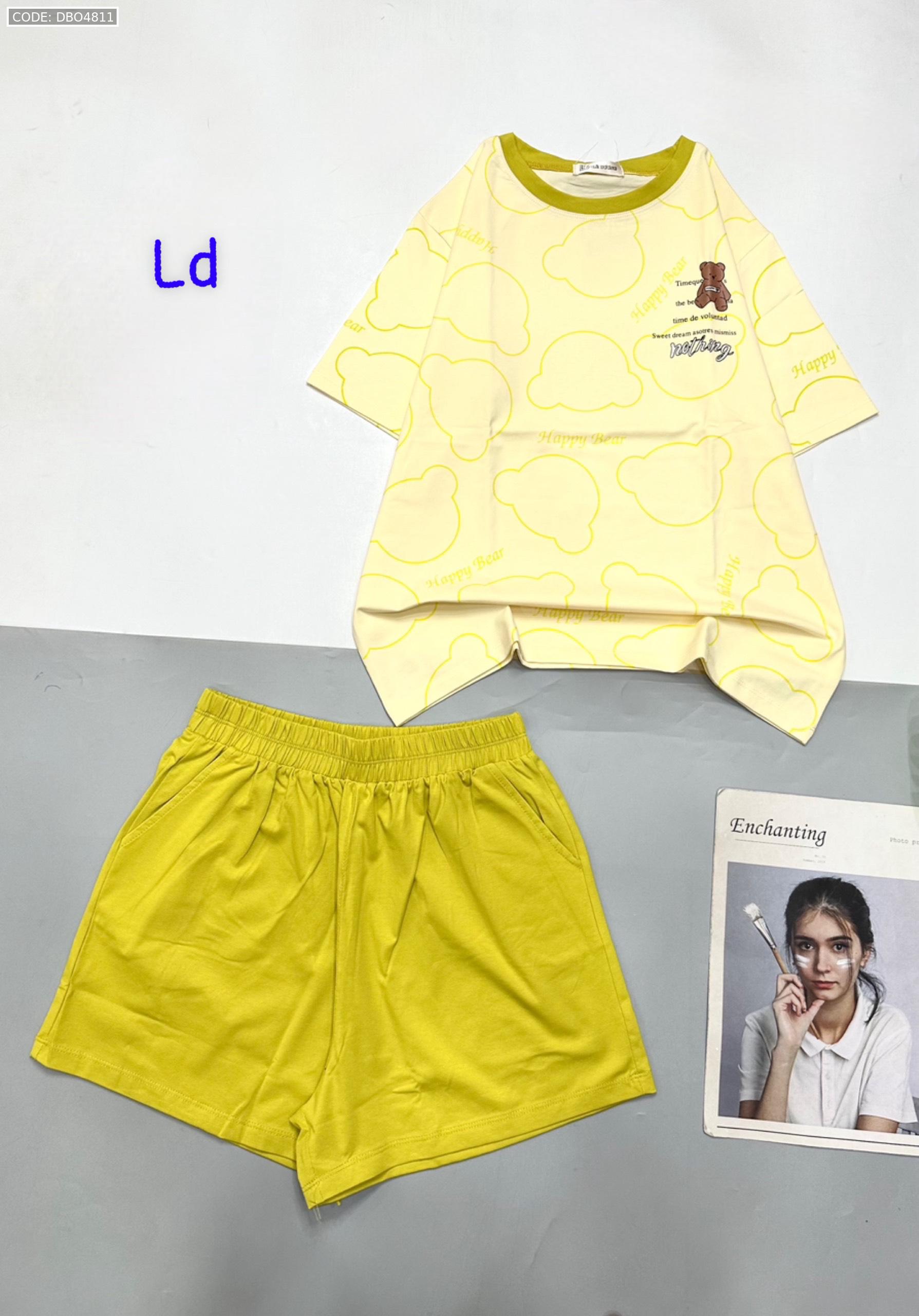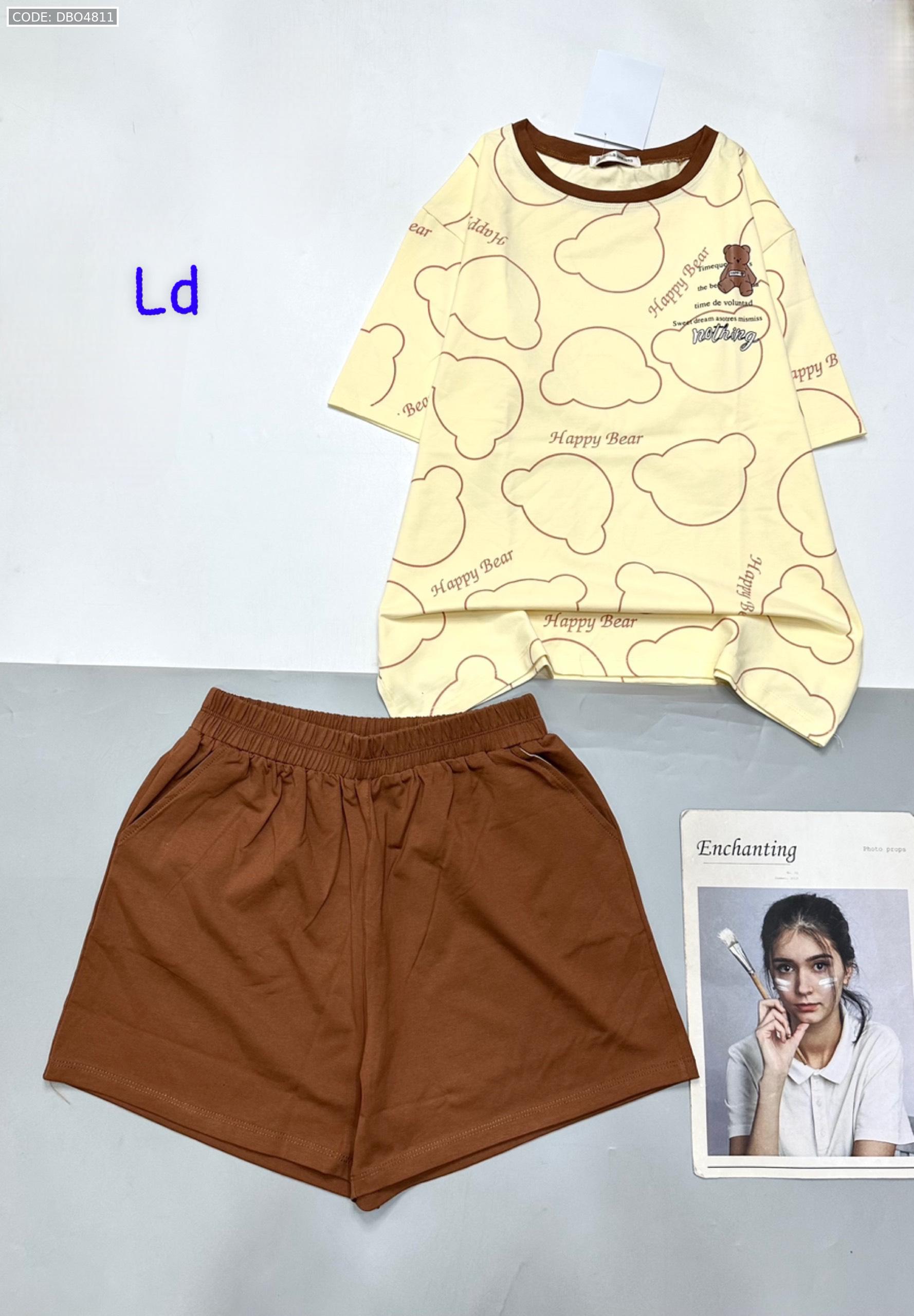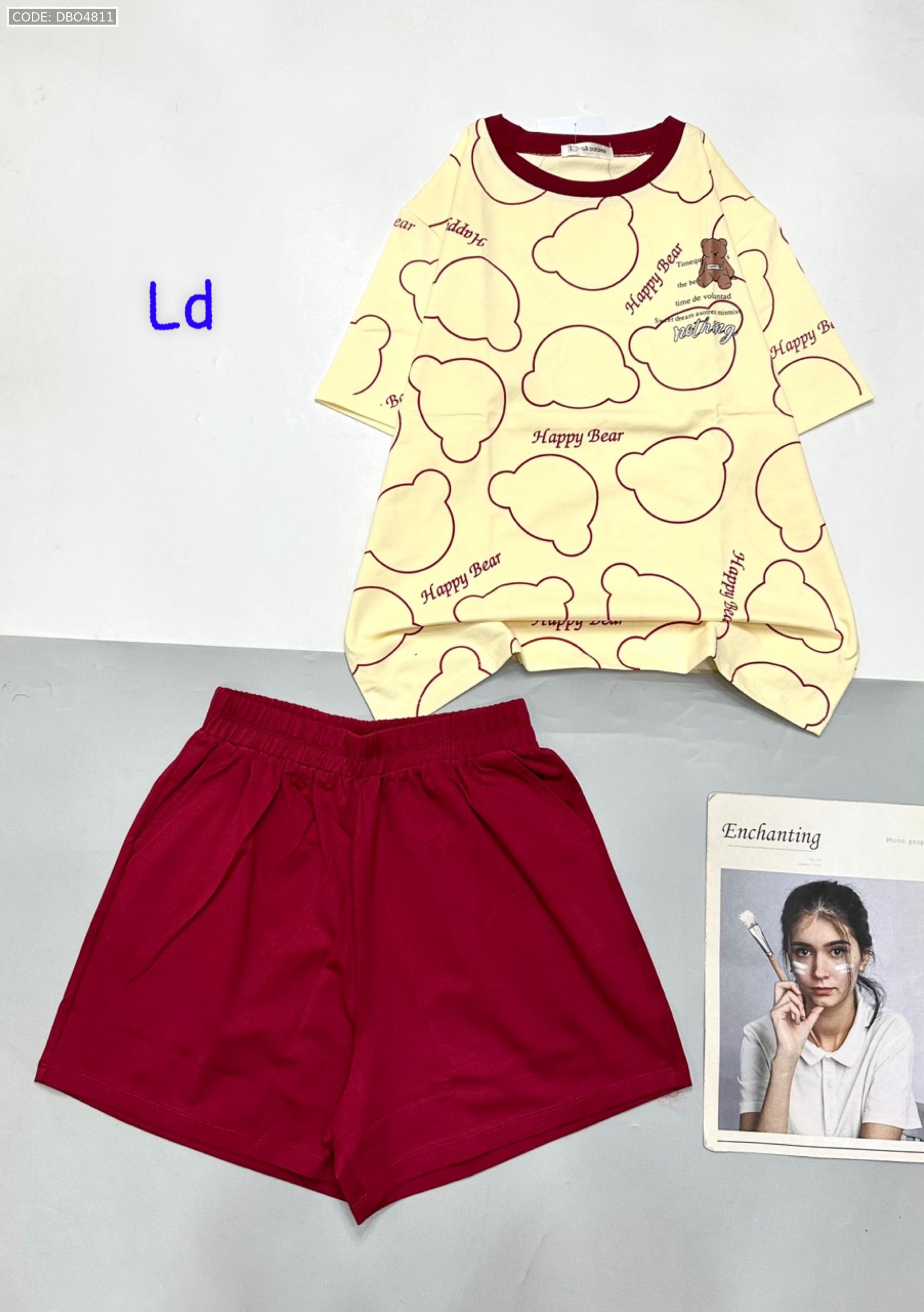 Shop sỉ đồ bộ quần đùi trơn áo tay ngắn in hình nhiều mặt gấu