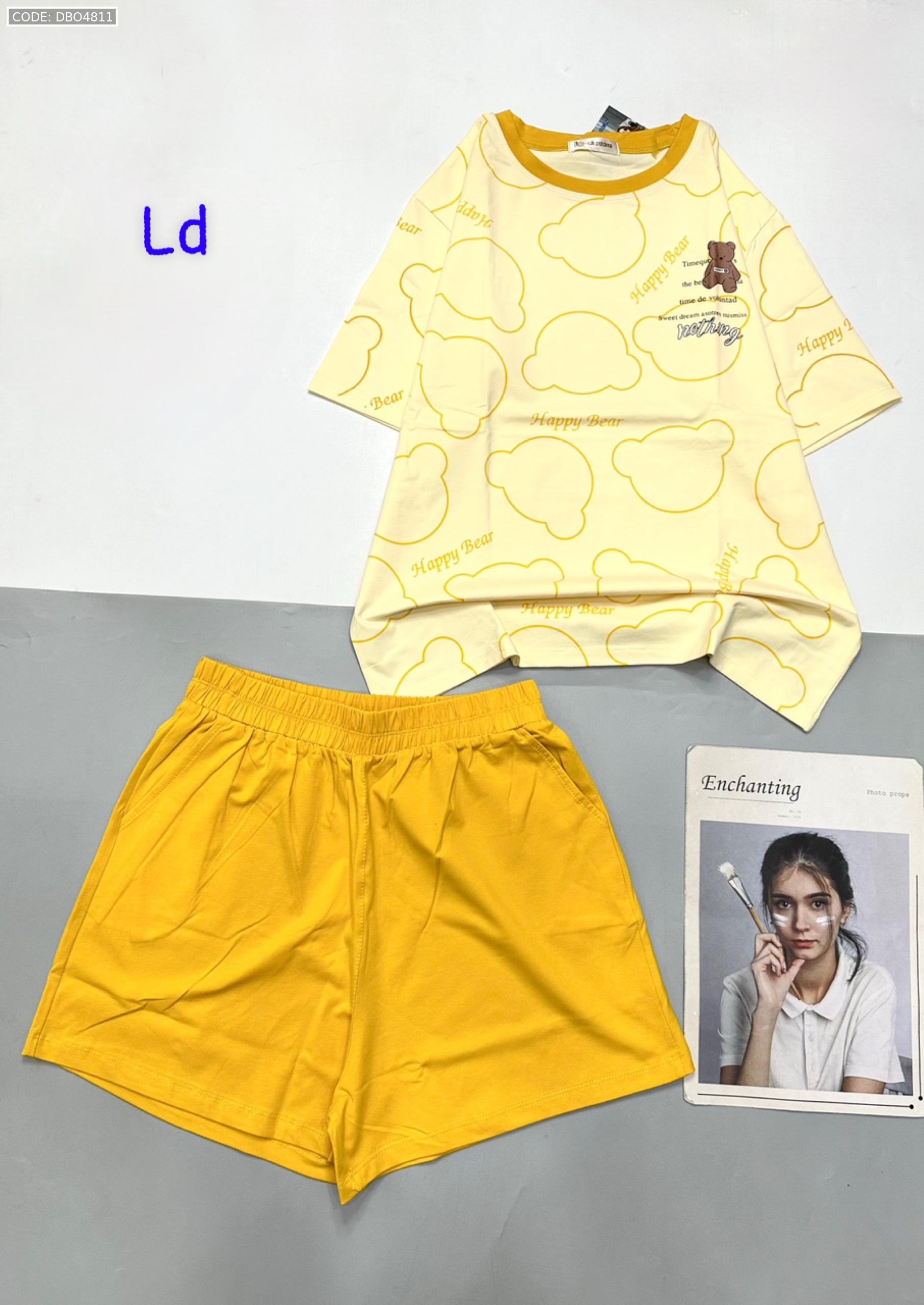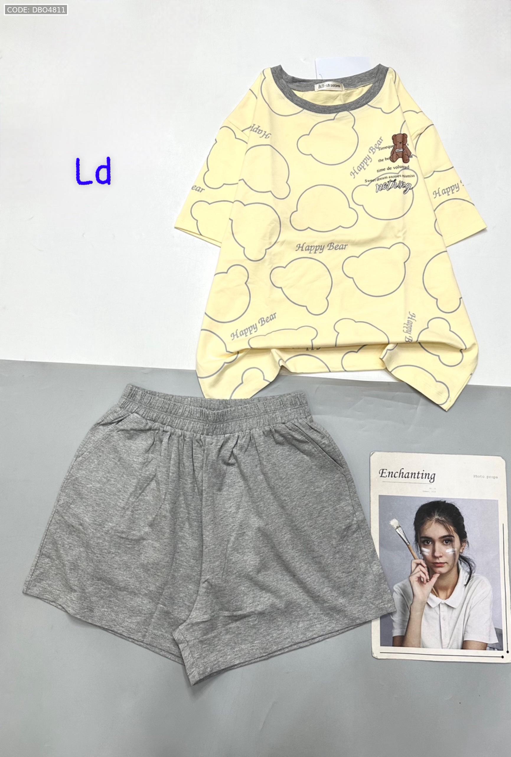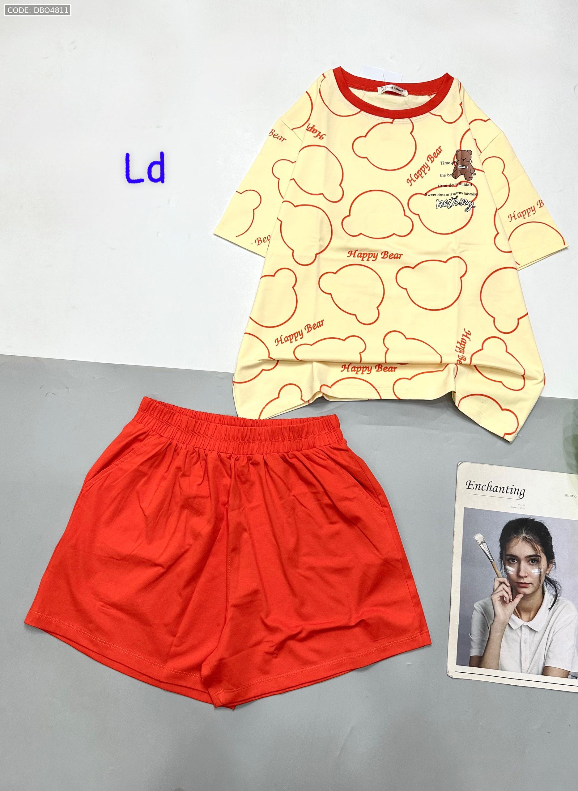 Shop sỉ đồ bộ quần đùi trơn áo tay ngắn in hình nhiều mặt gấu