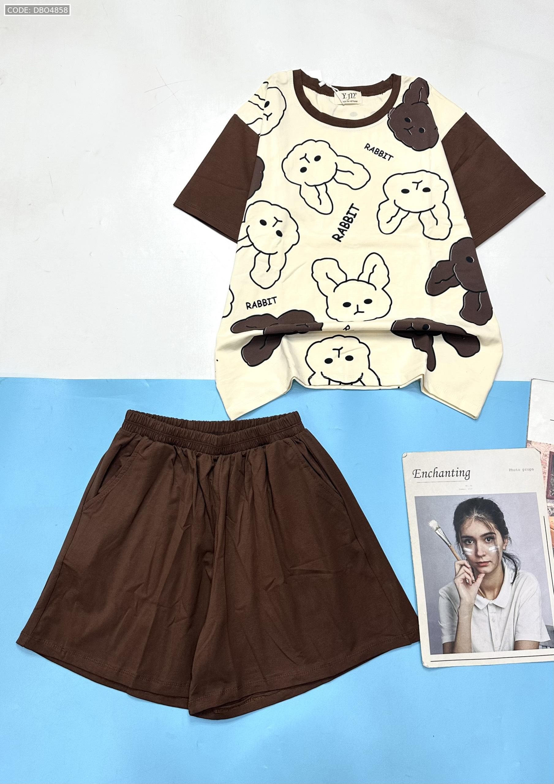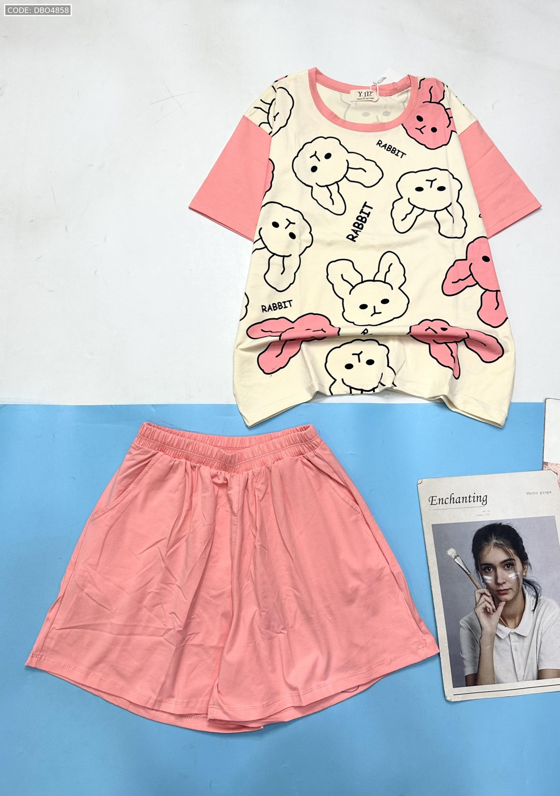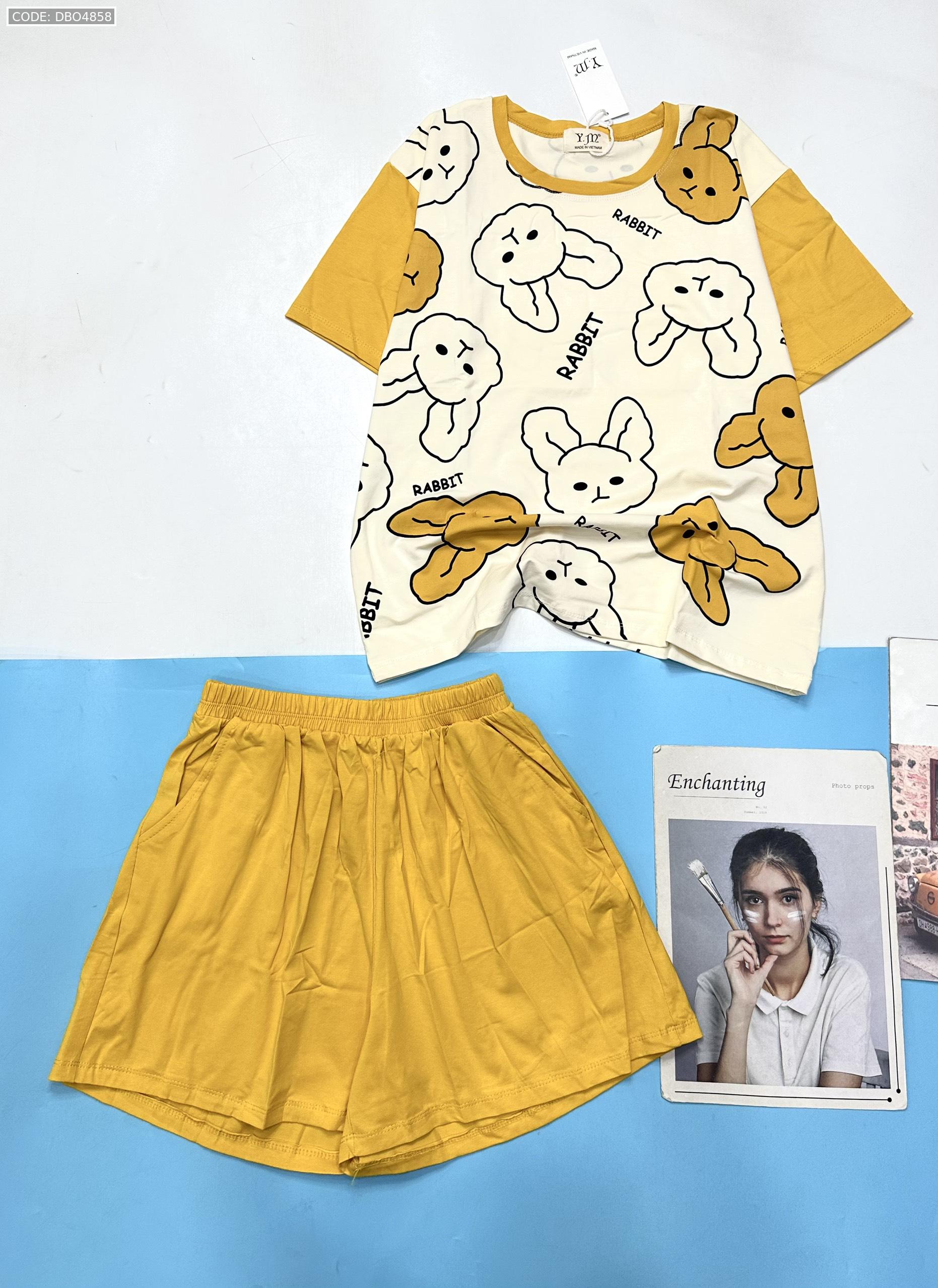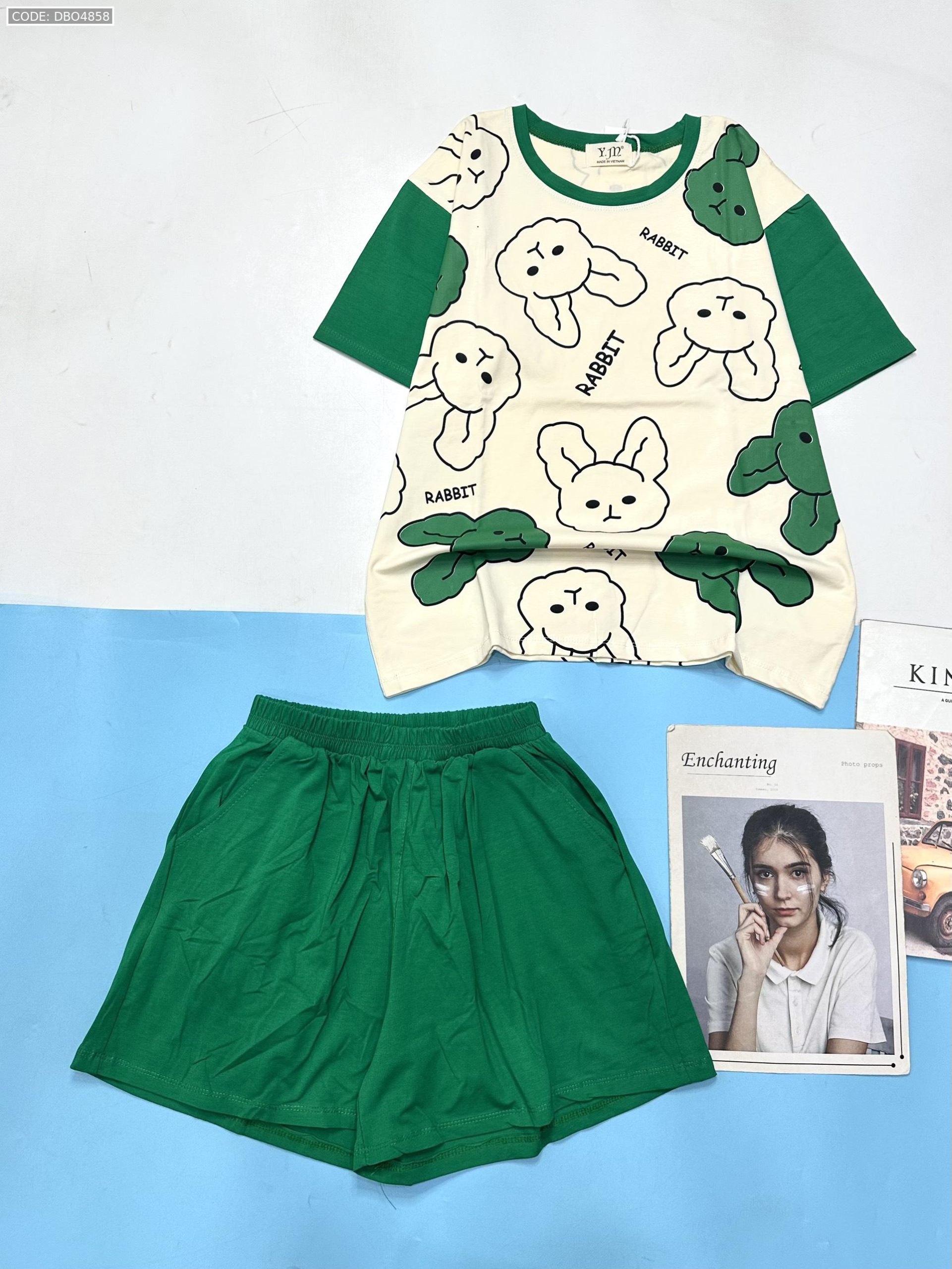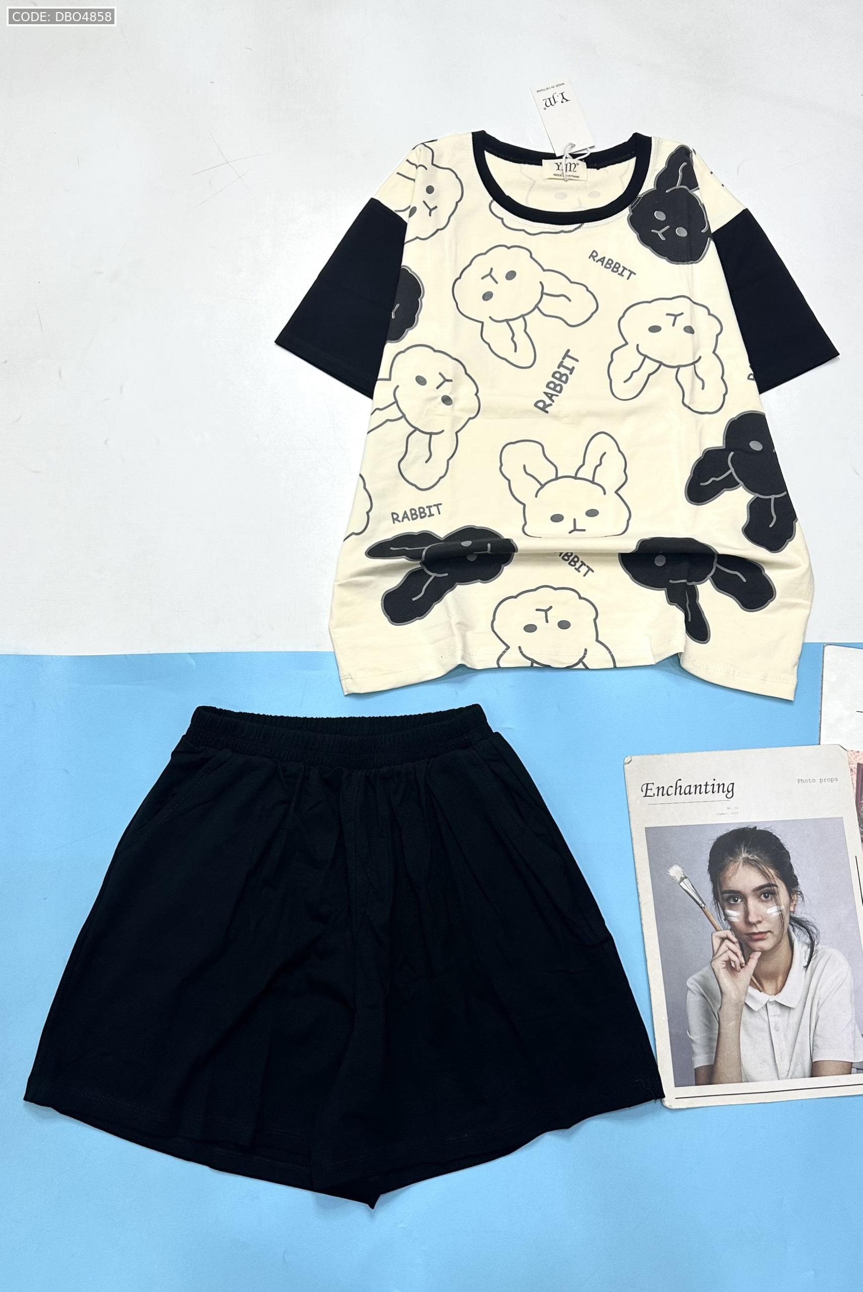 Shop sỉ đồ bộ quần đùi trơn áo tay ngắn in hình nhiều thỏ