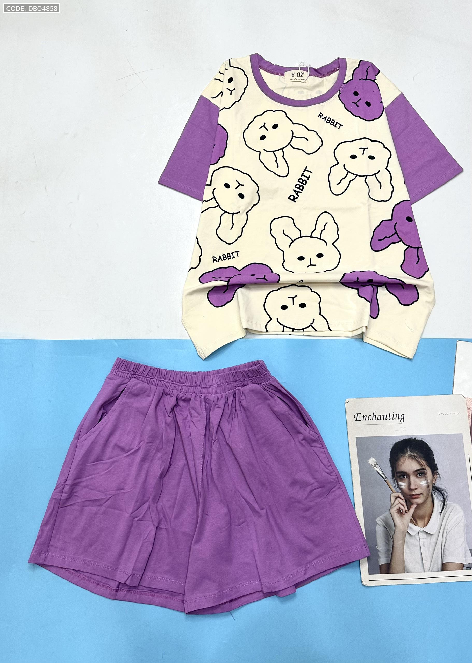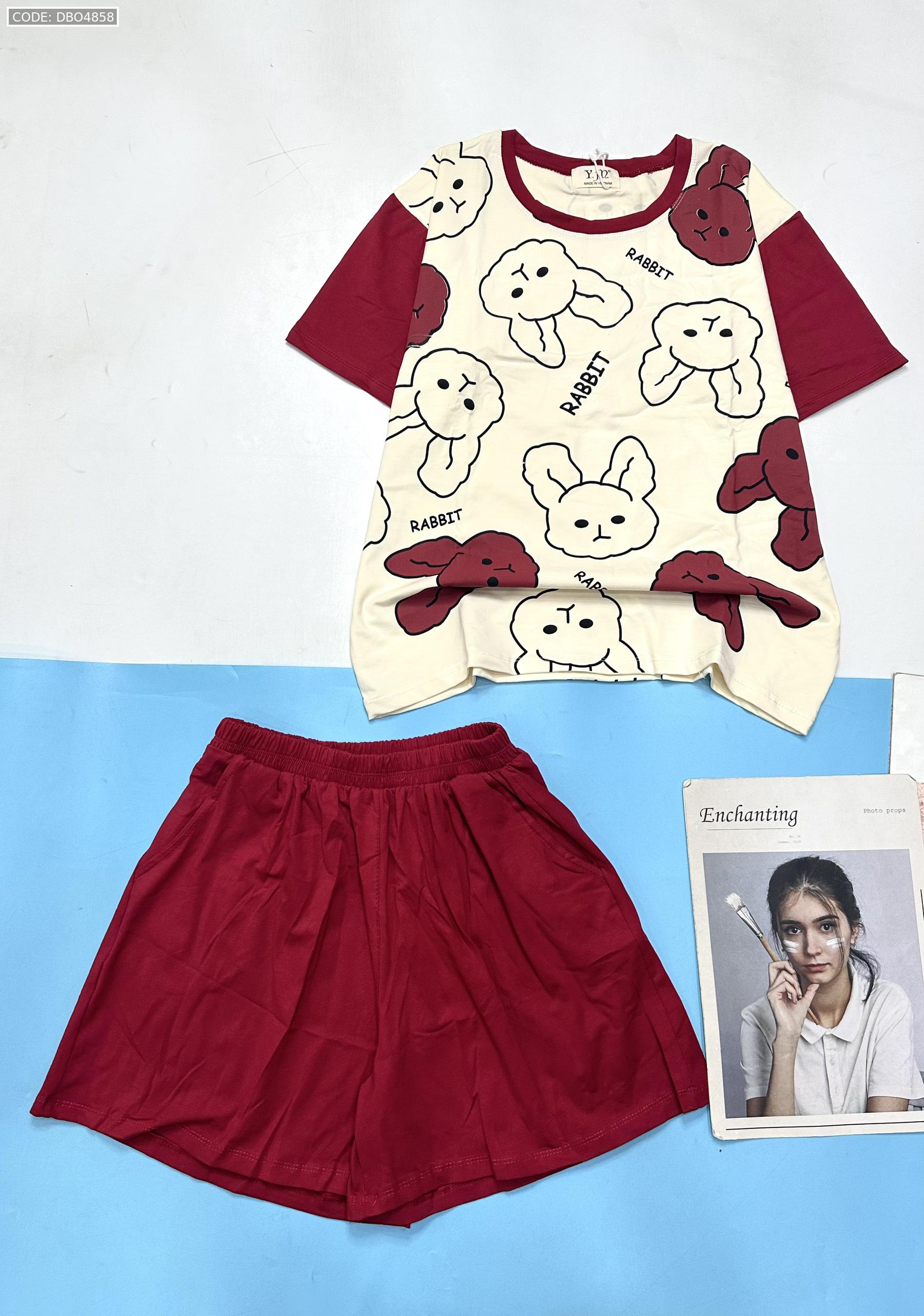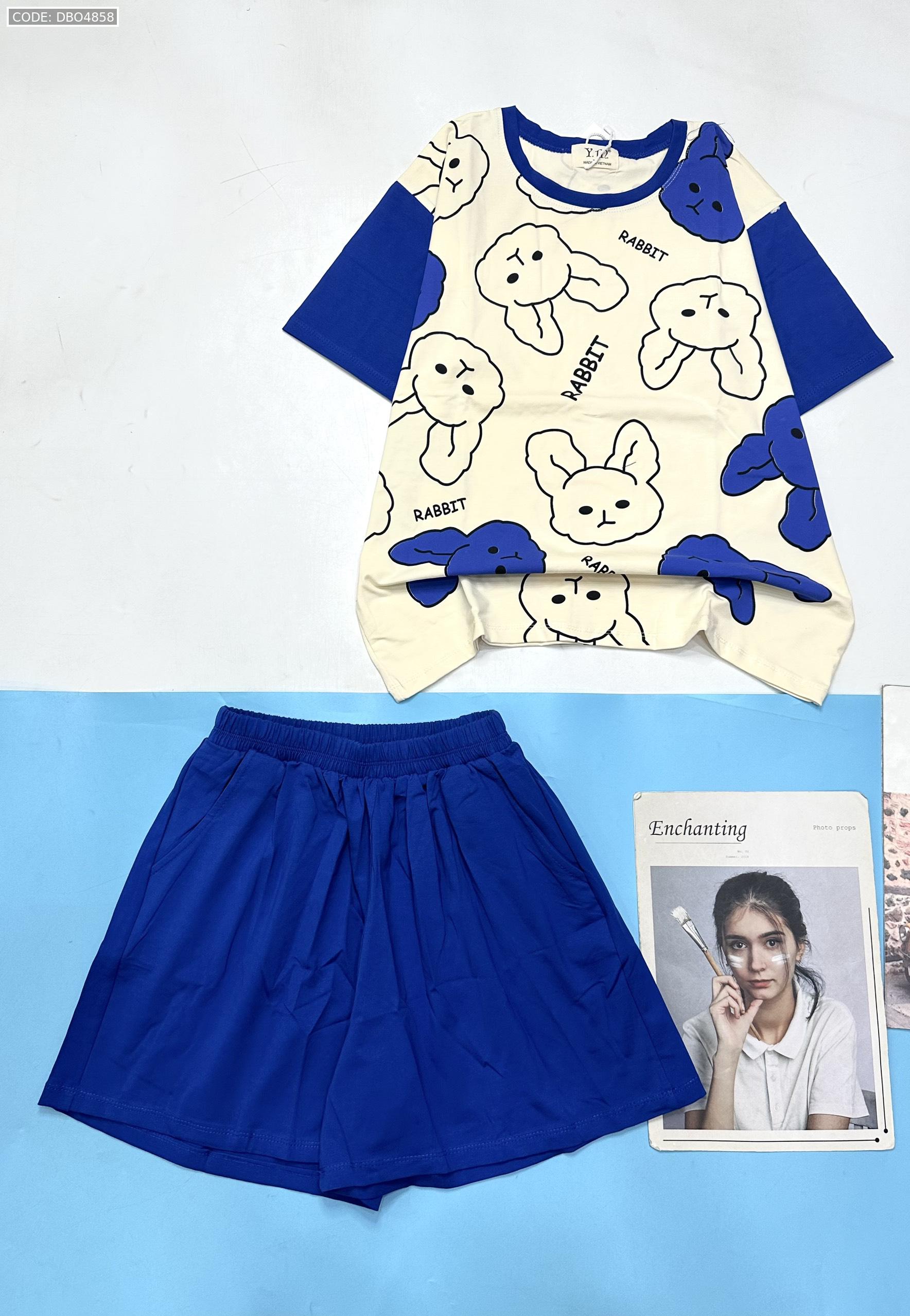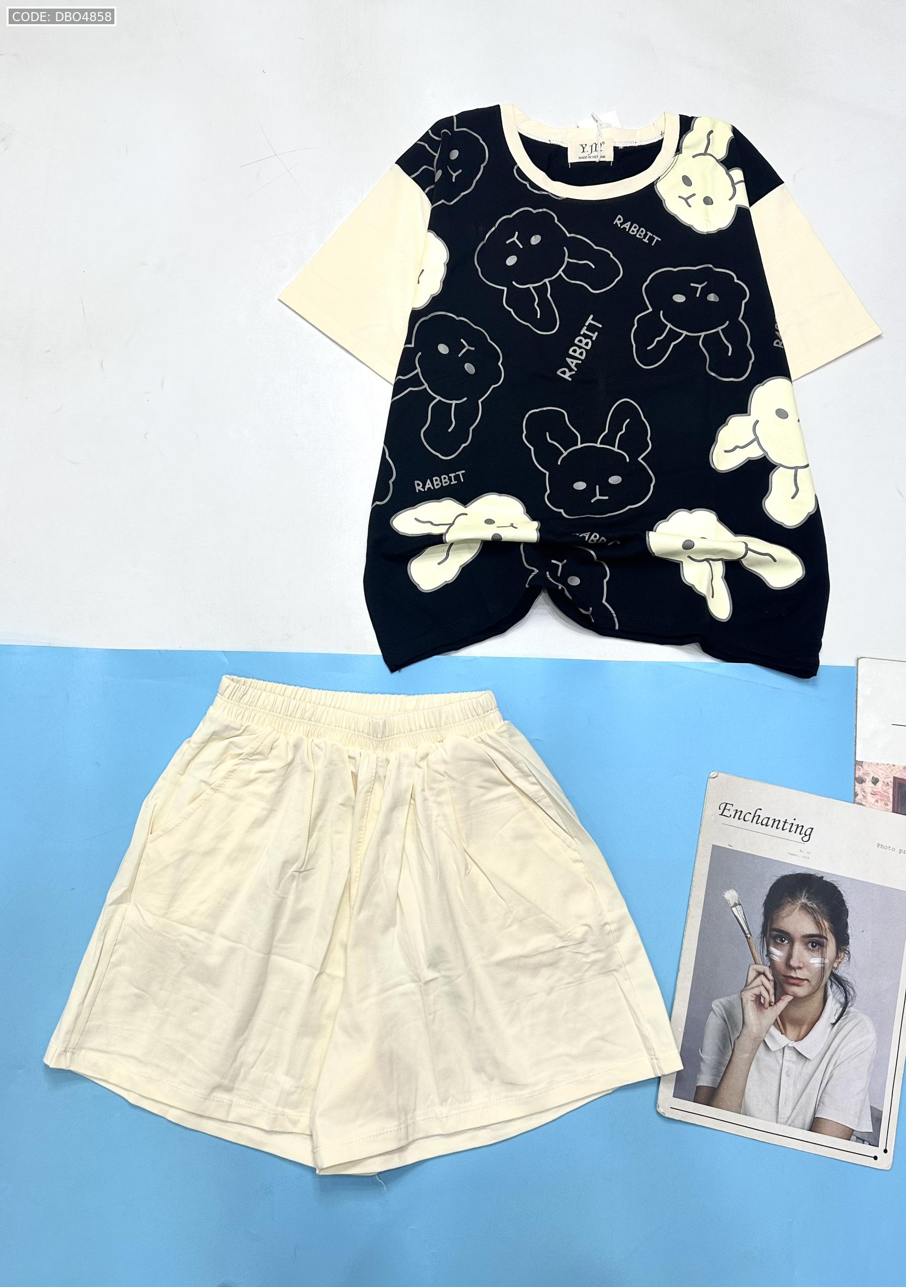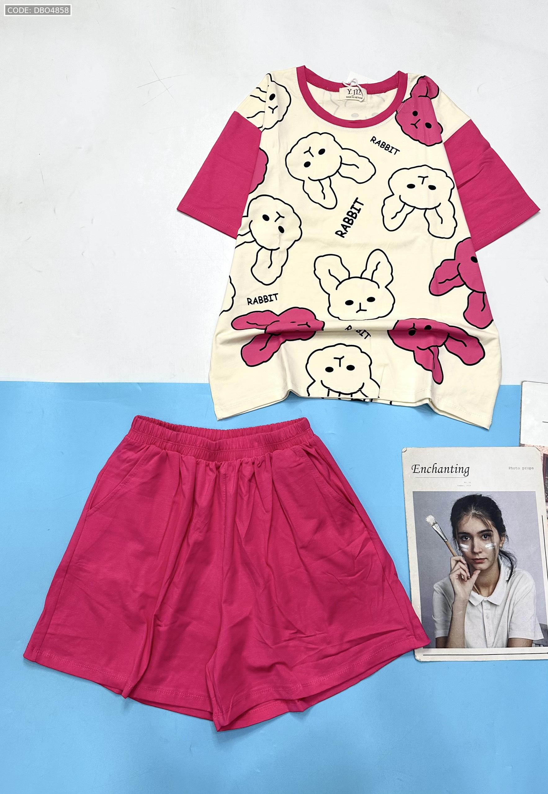 Shop sỉ đồ bộ quần đùi trơn áo tay ngắn in hình nhiều thỏ