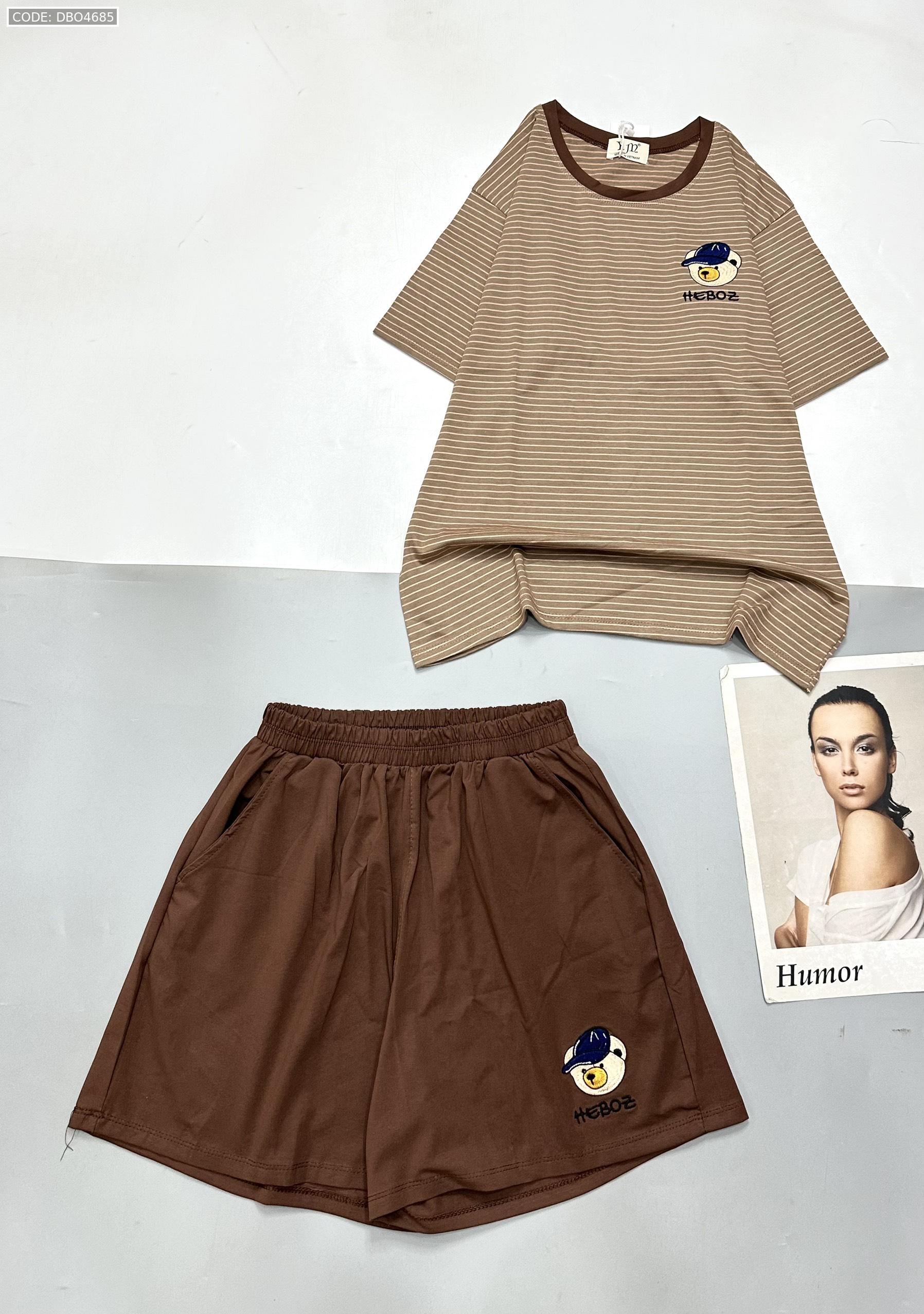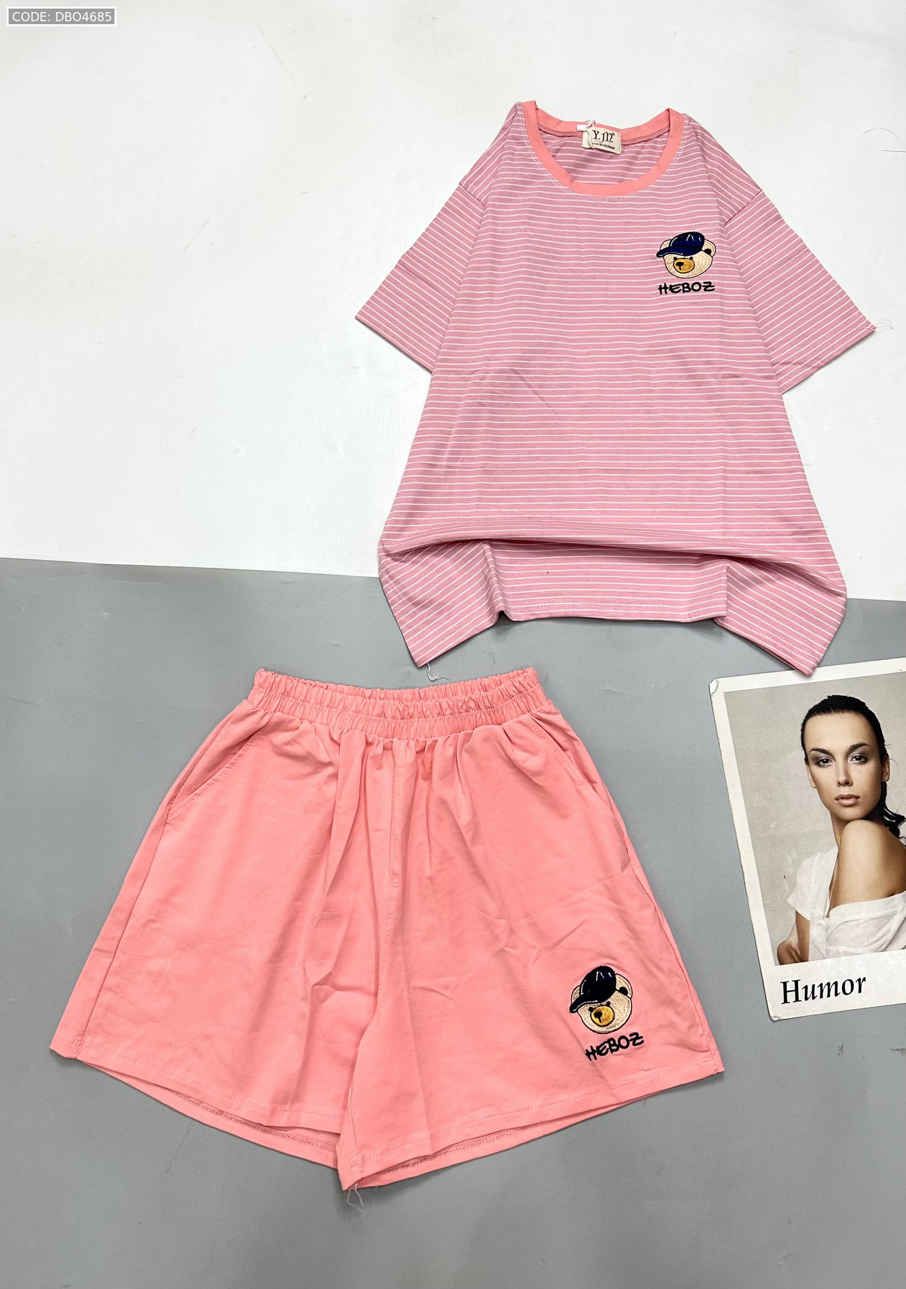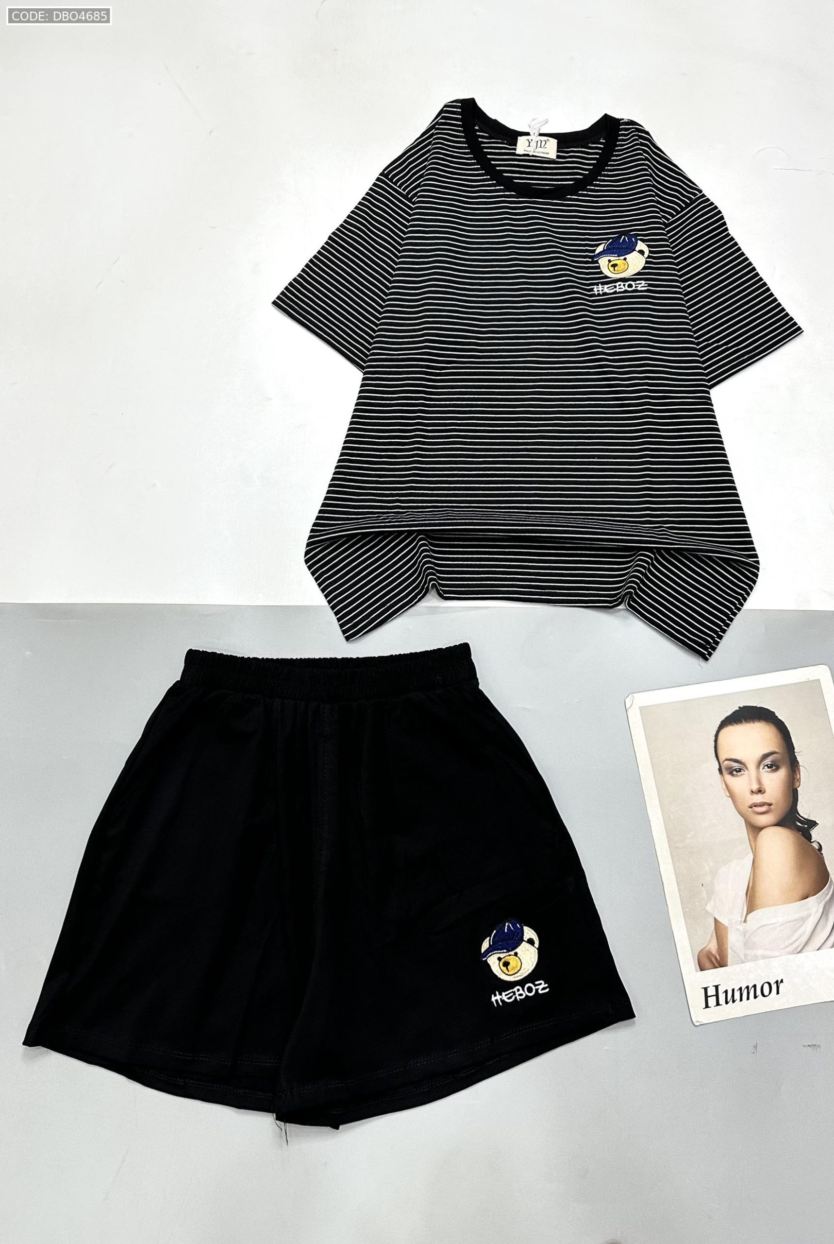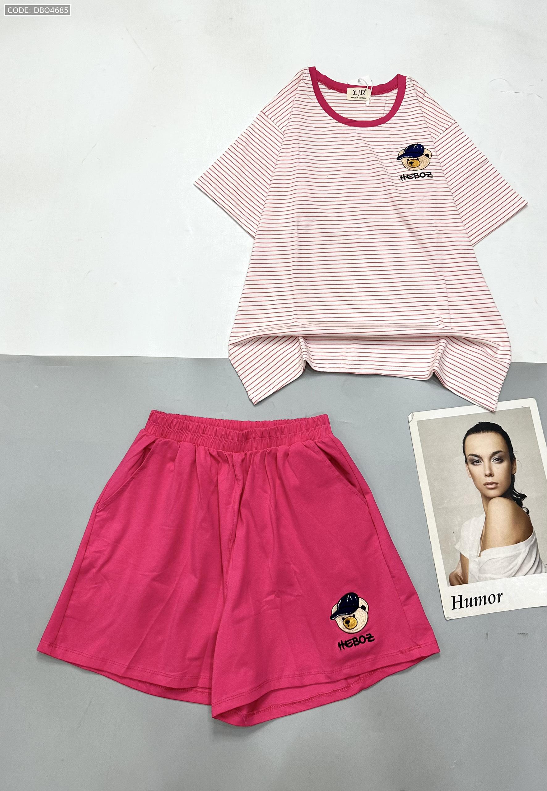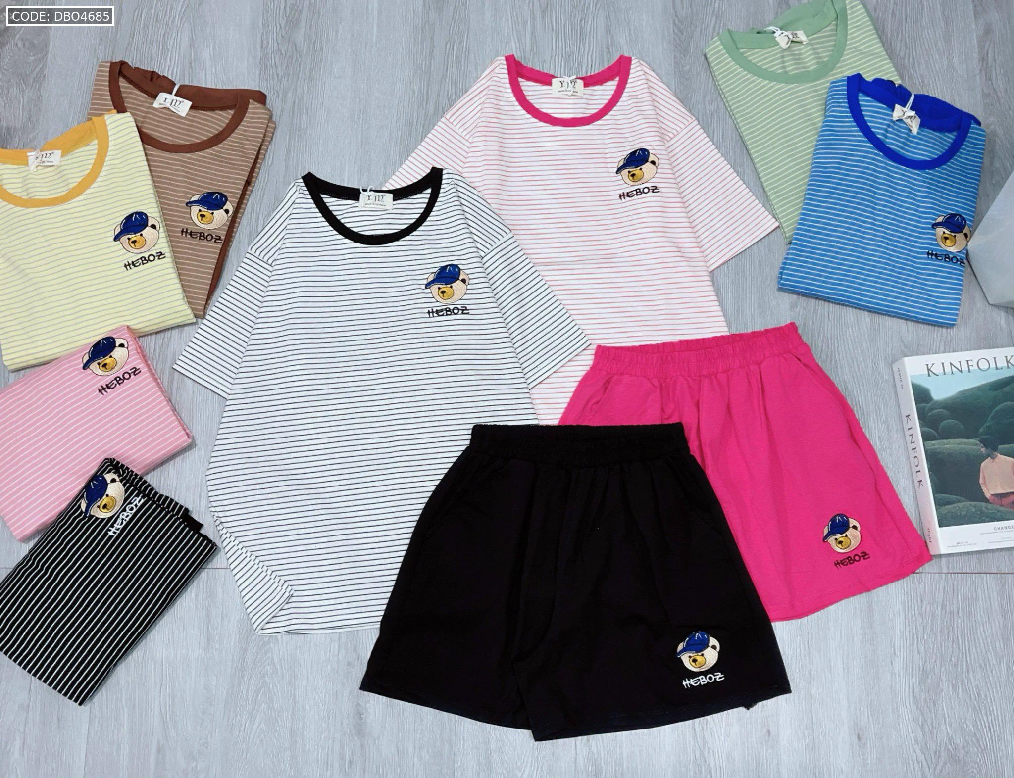 Shop sỉ đồ bộ quần đùi trơn áo tay ngắn kẻ sọc ngang in hình gấu