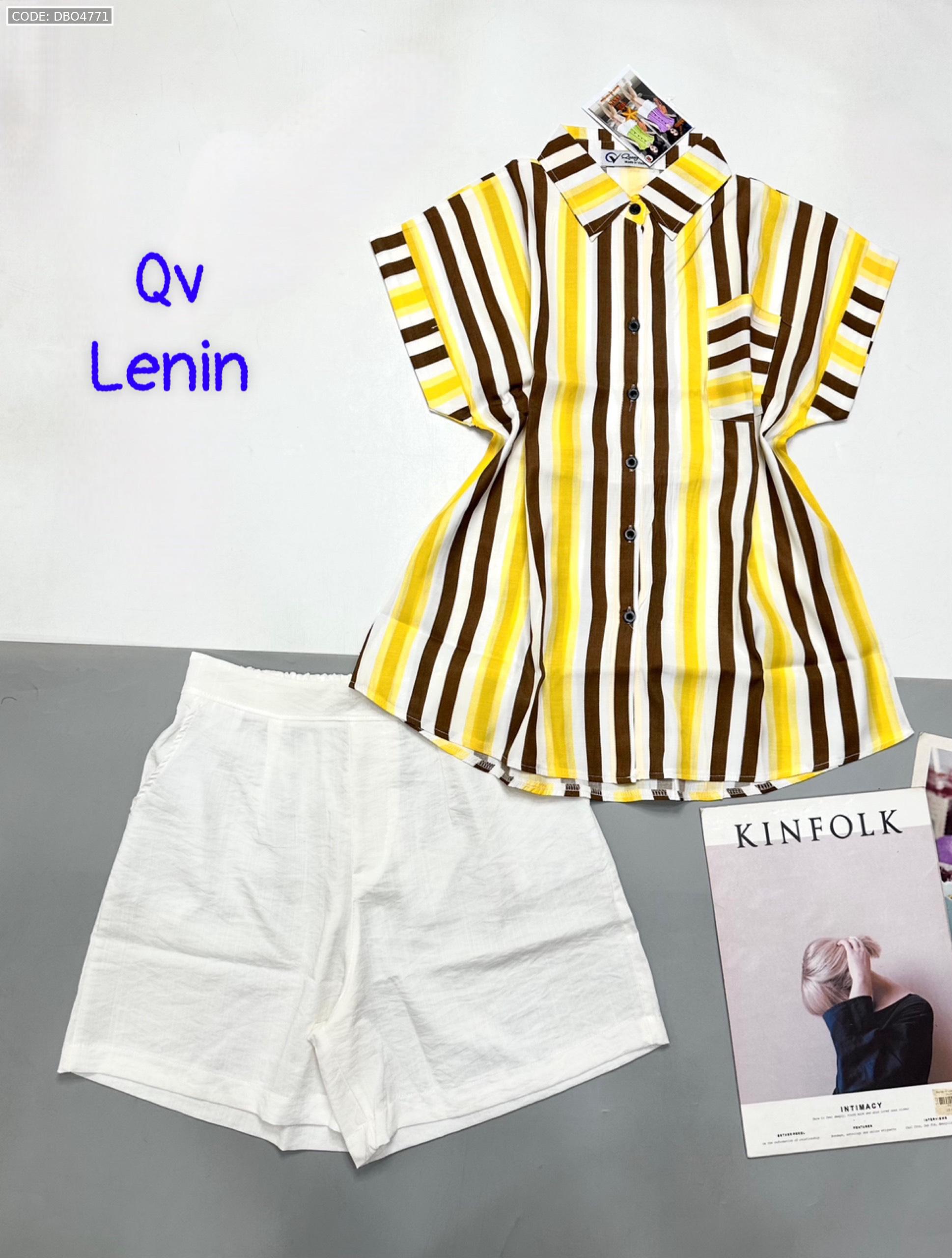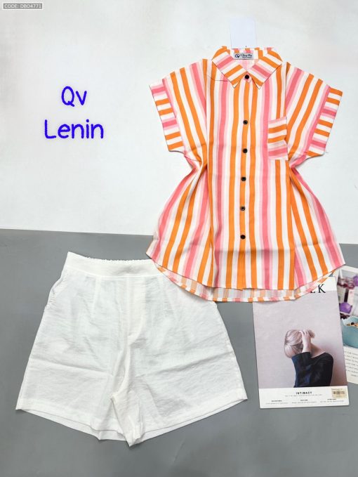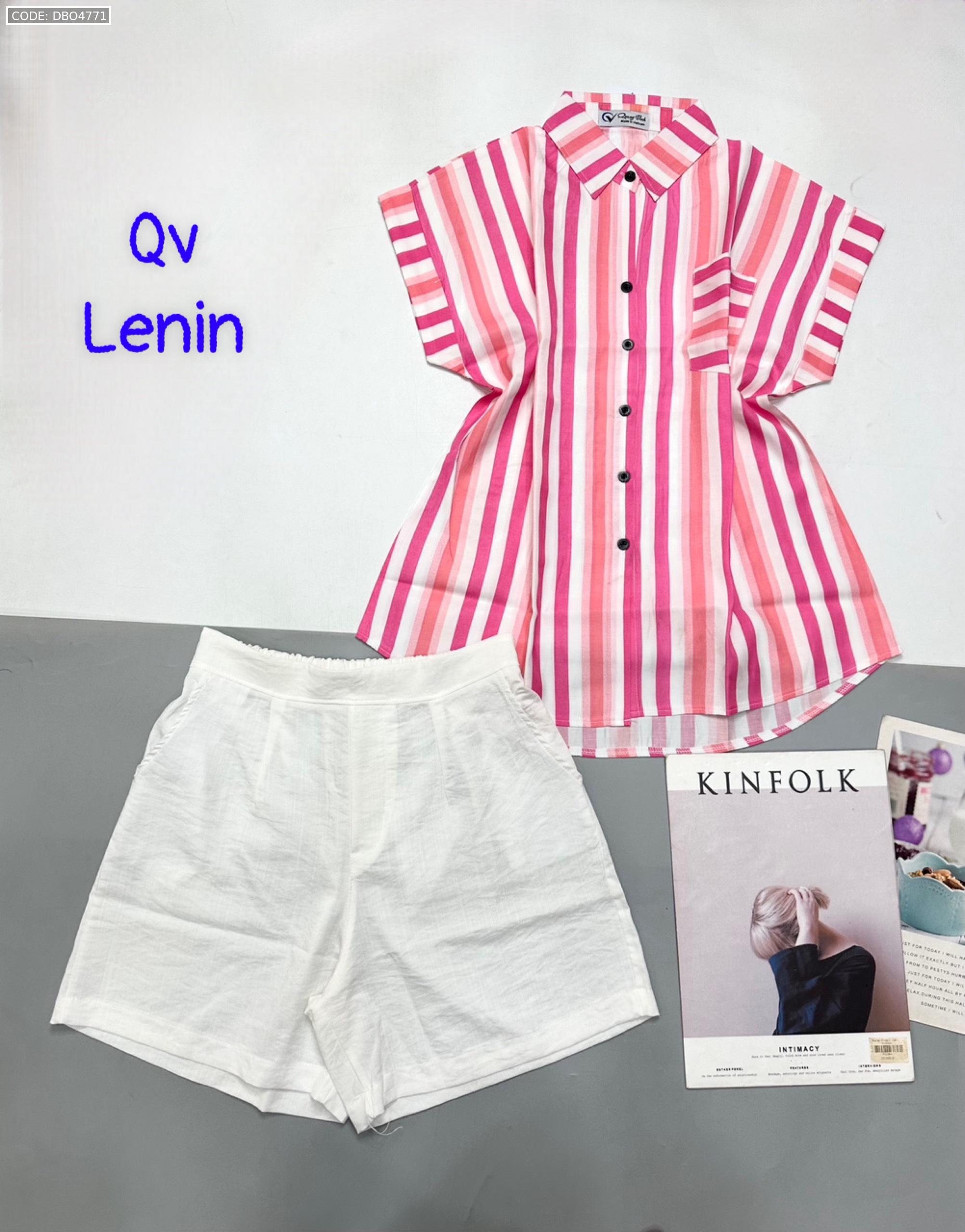 Shop sỉ đồ bộ quần trắng đùi áo sơ mi sọc túi