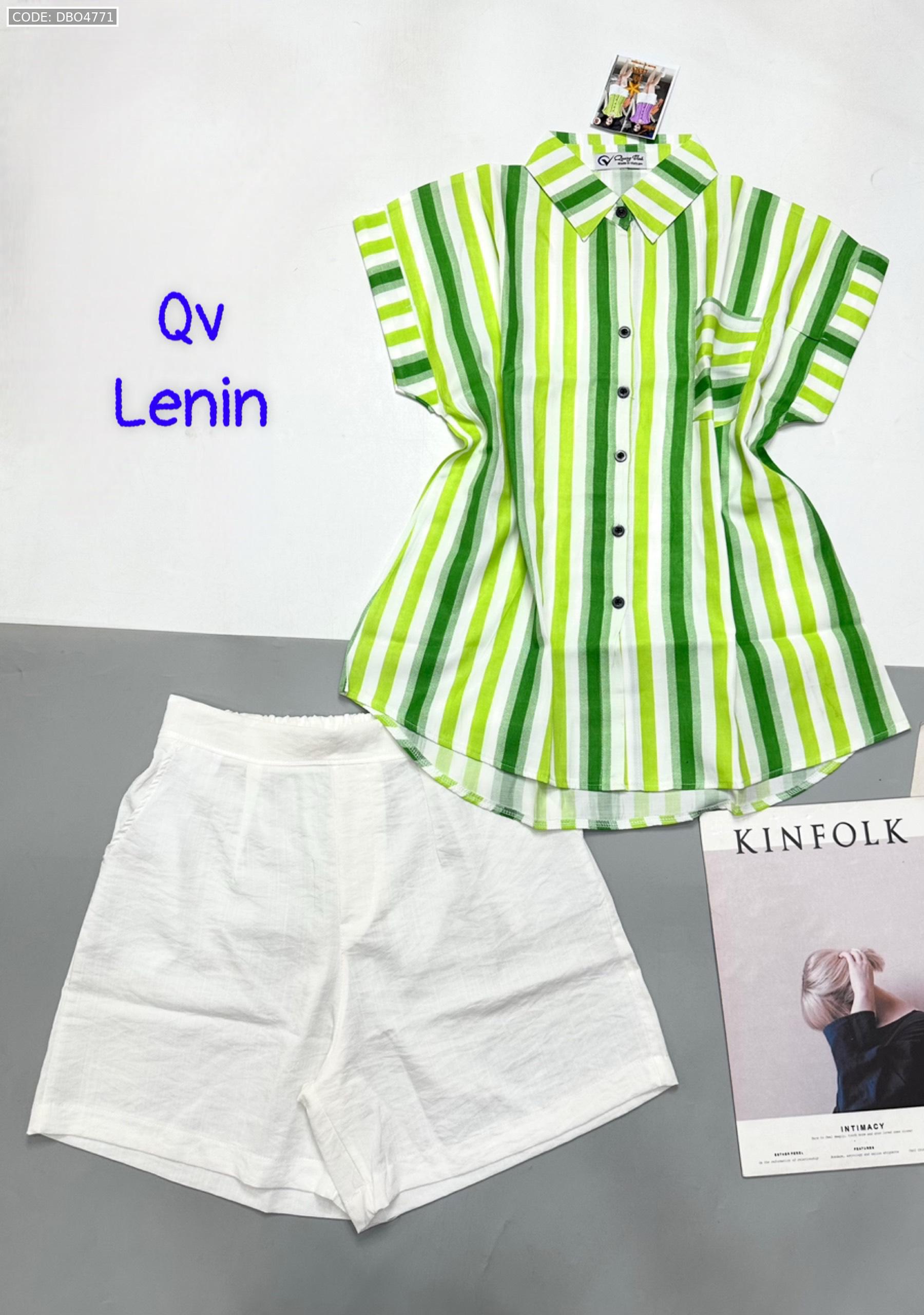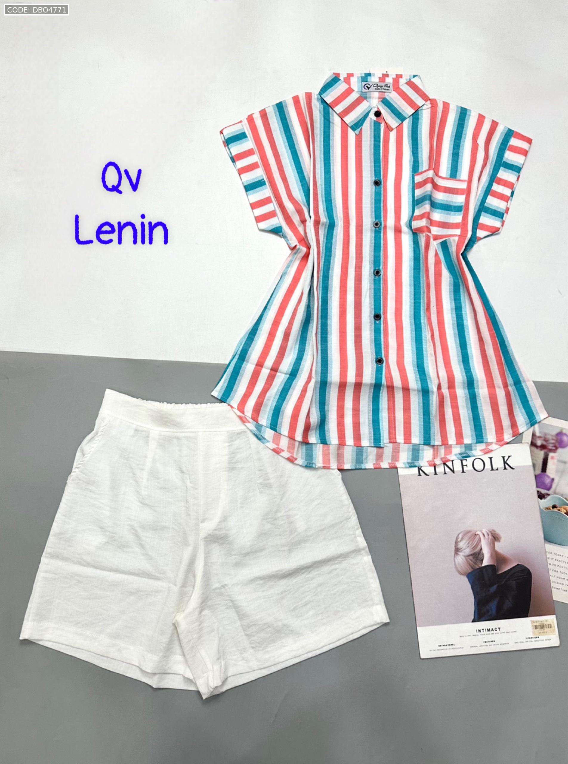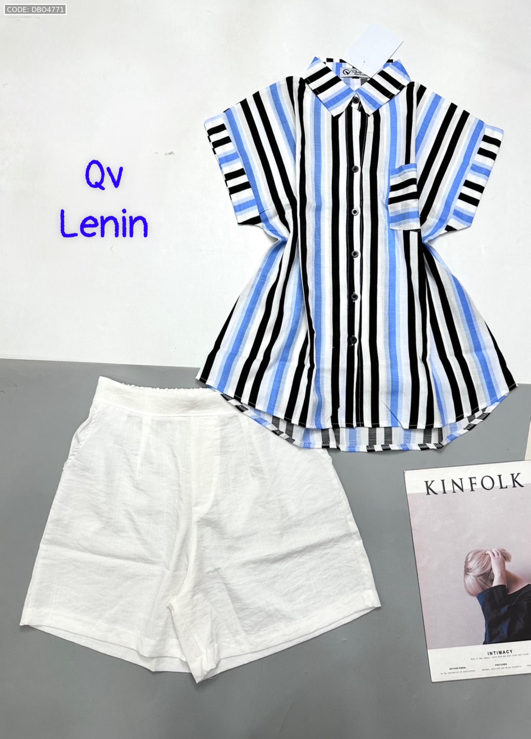 Shop sỉ đồ bộ quần trắng đùi áo sơ mi sọc túi