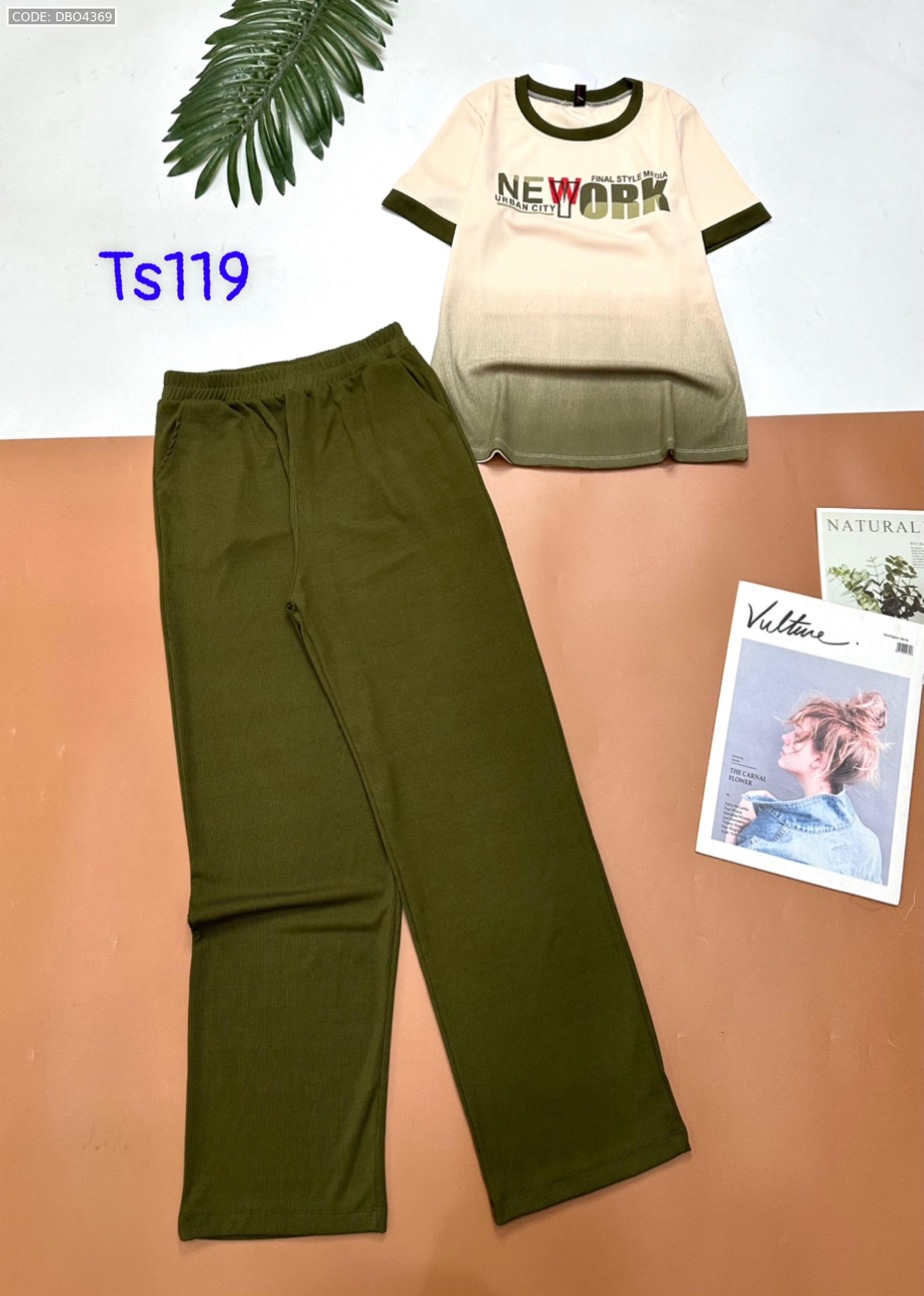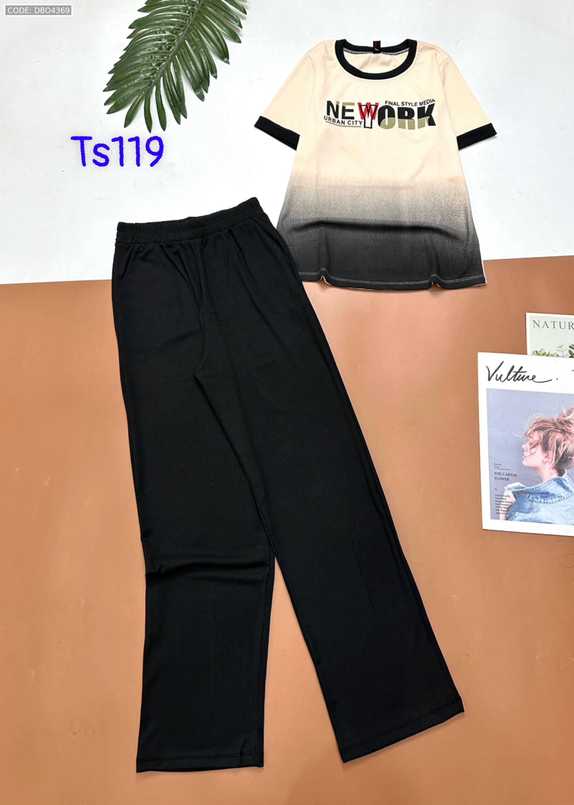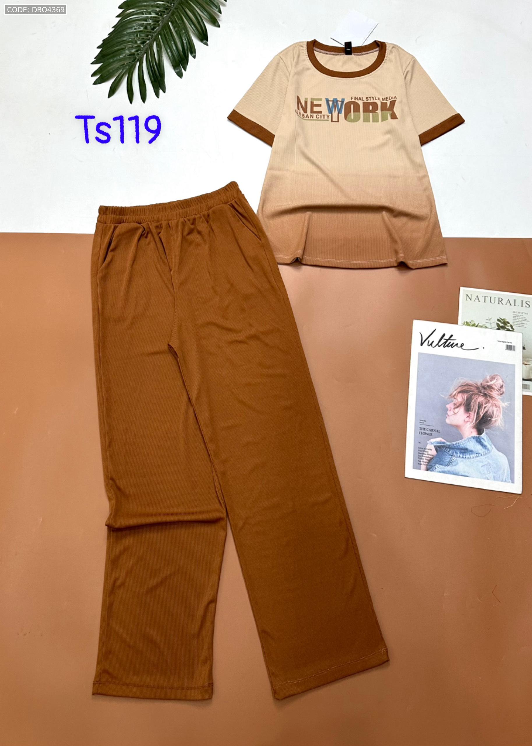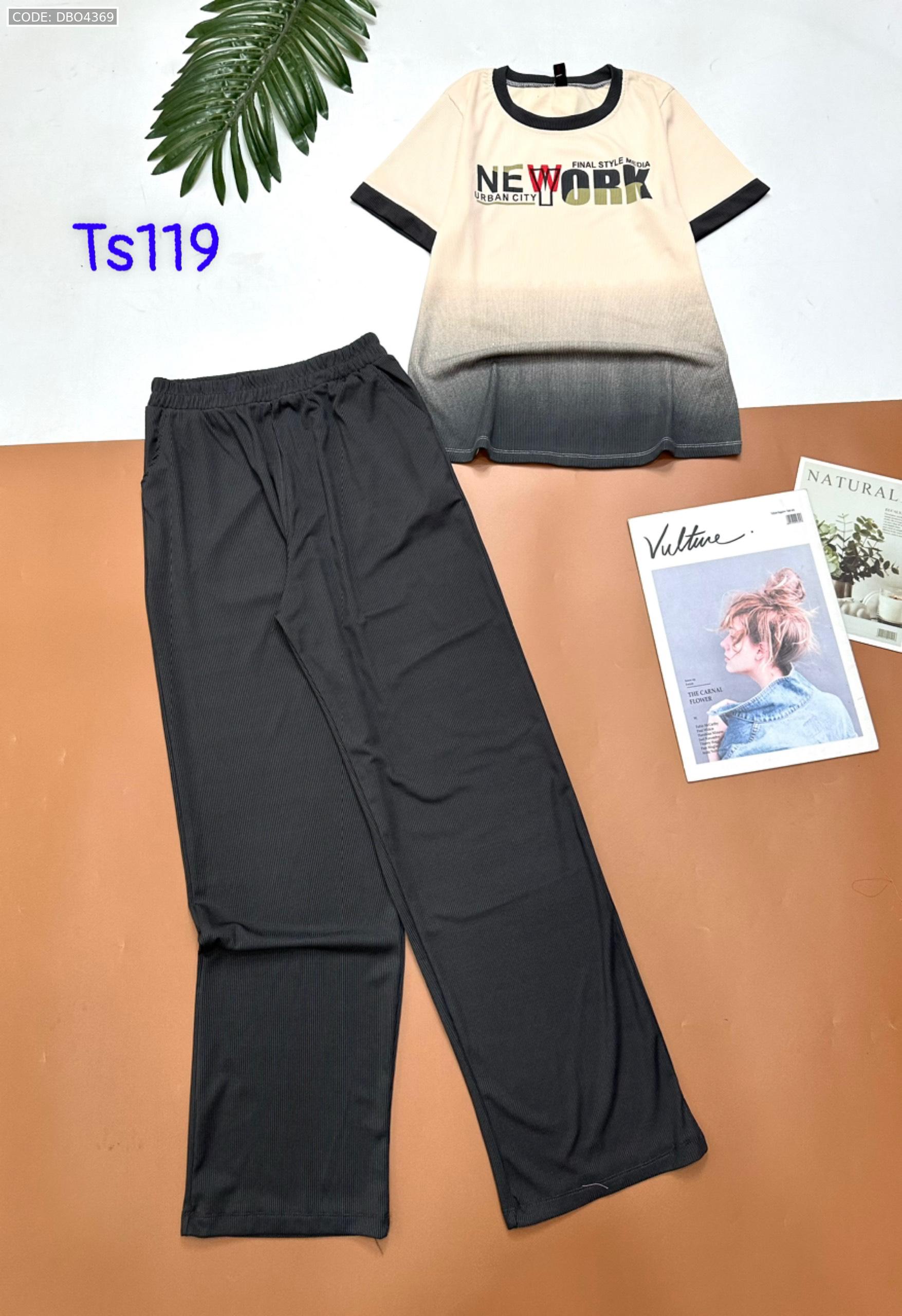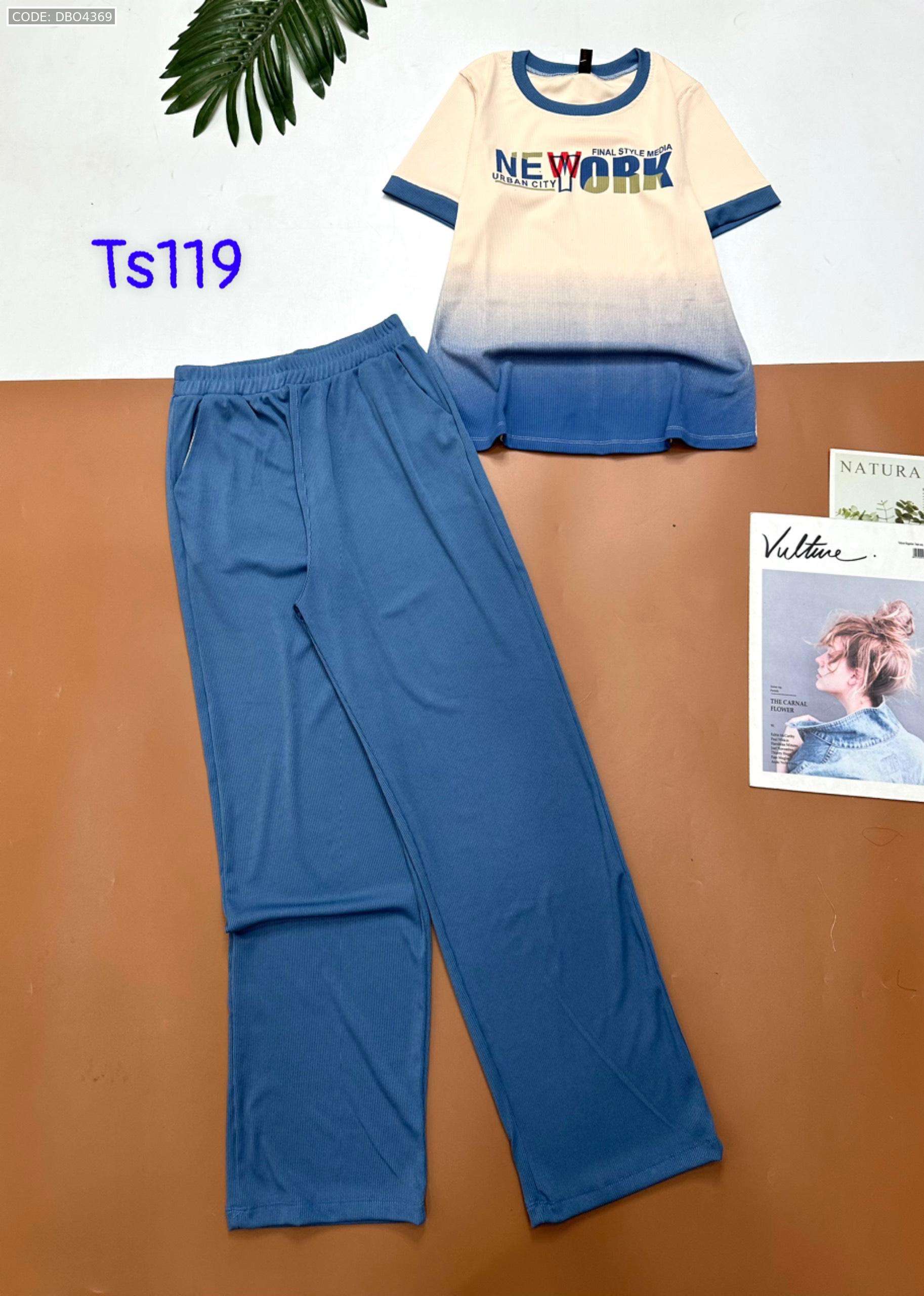 Shop sỉ đồ bộ tăm lạnh quần dài áo cổ tròn tay ngắn in chữ NEWYORK