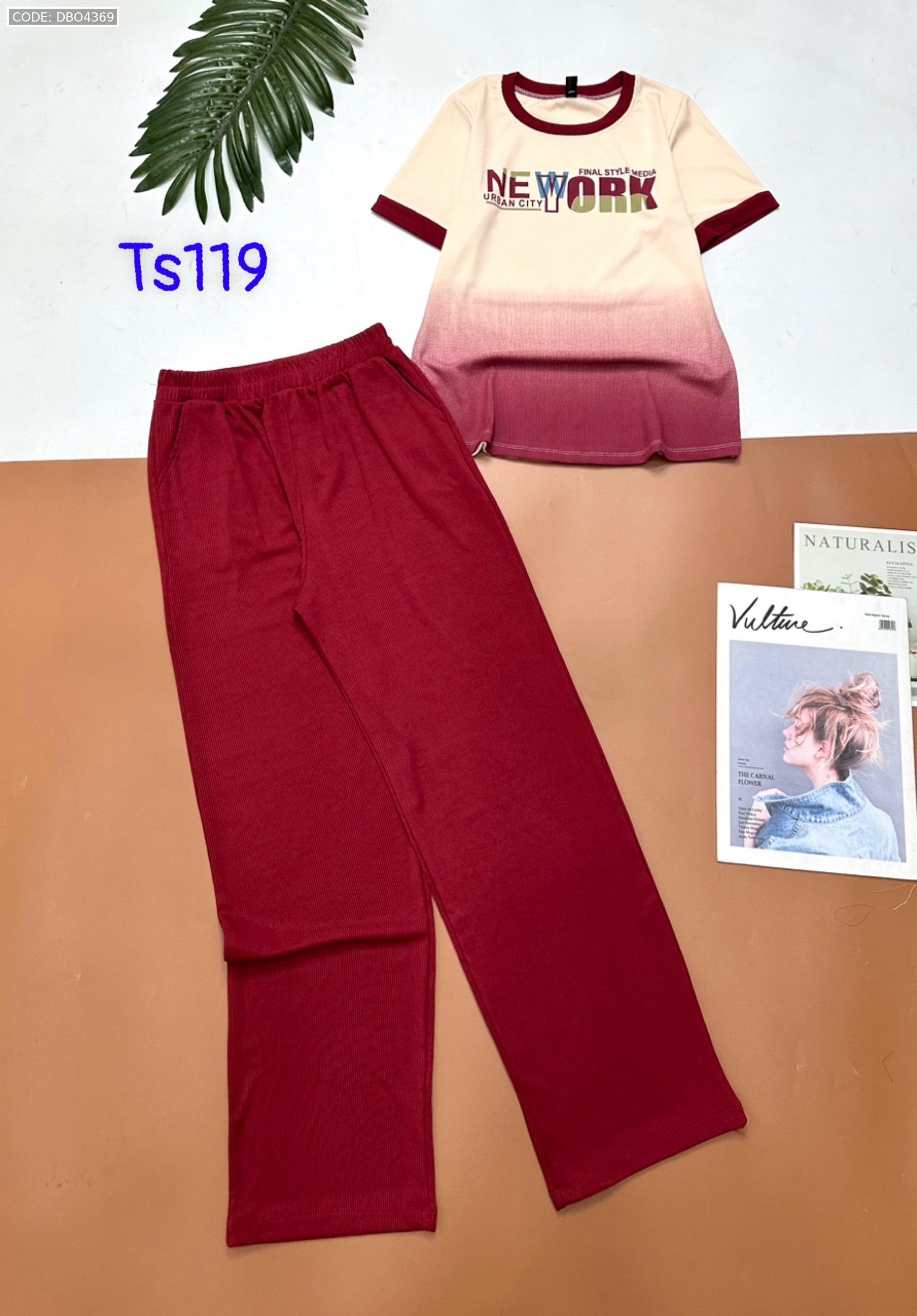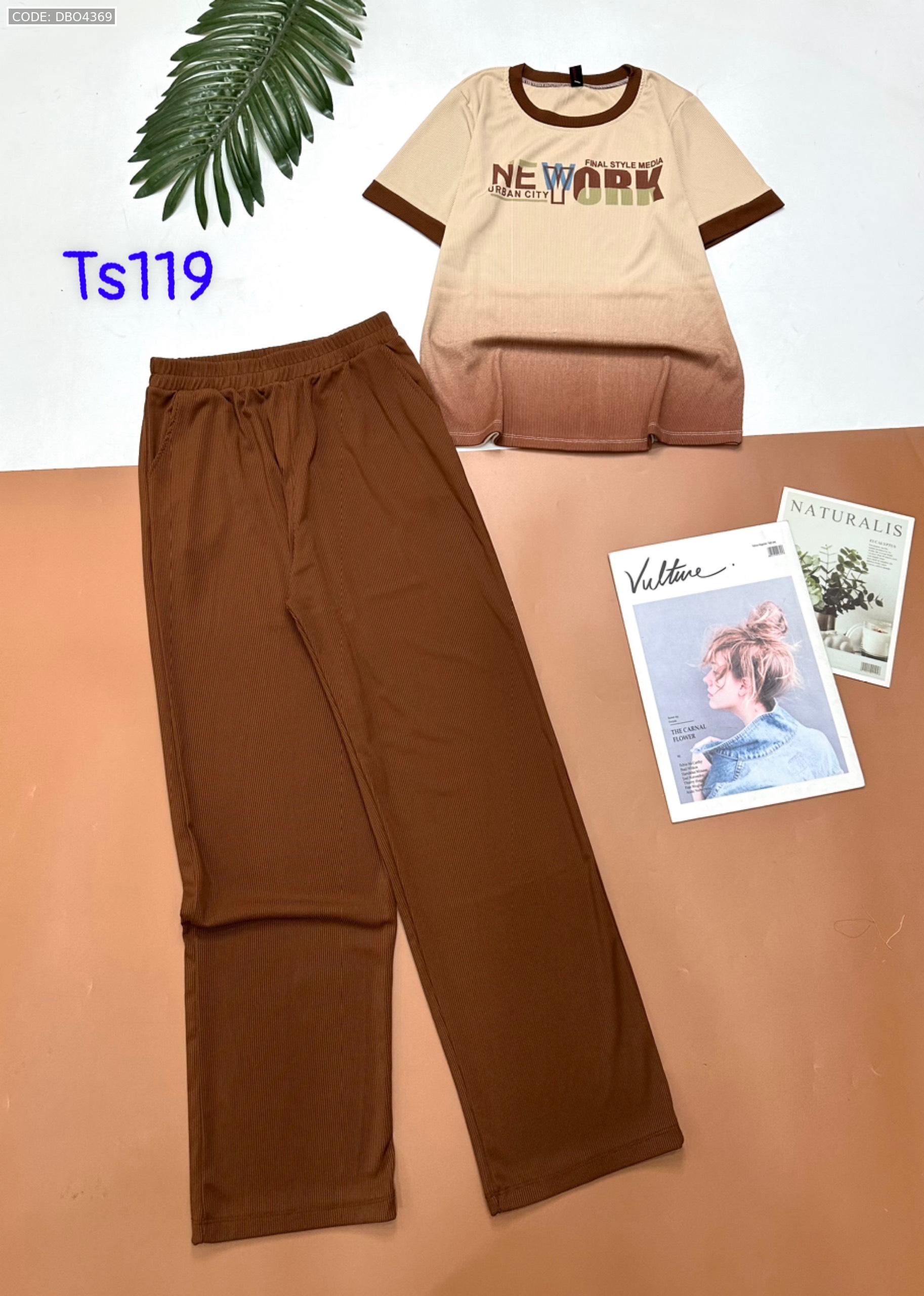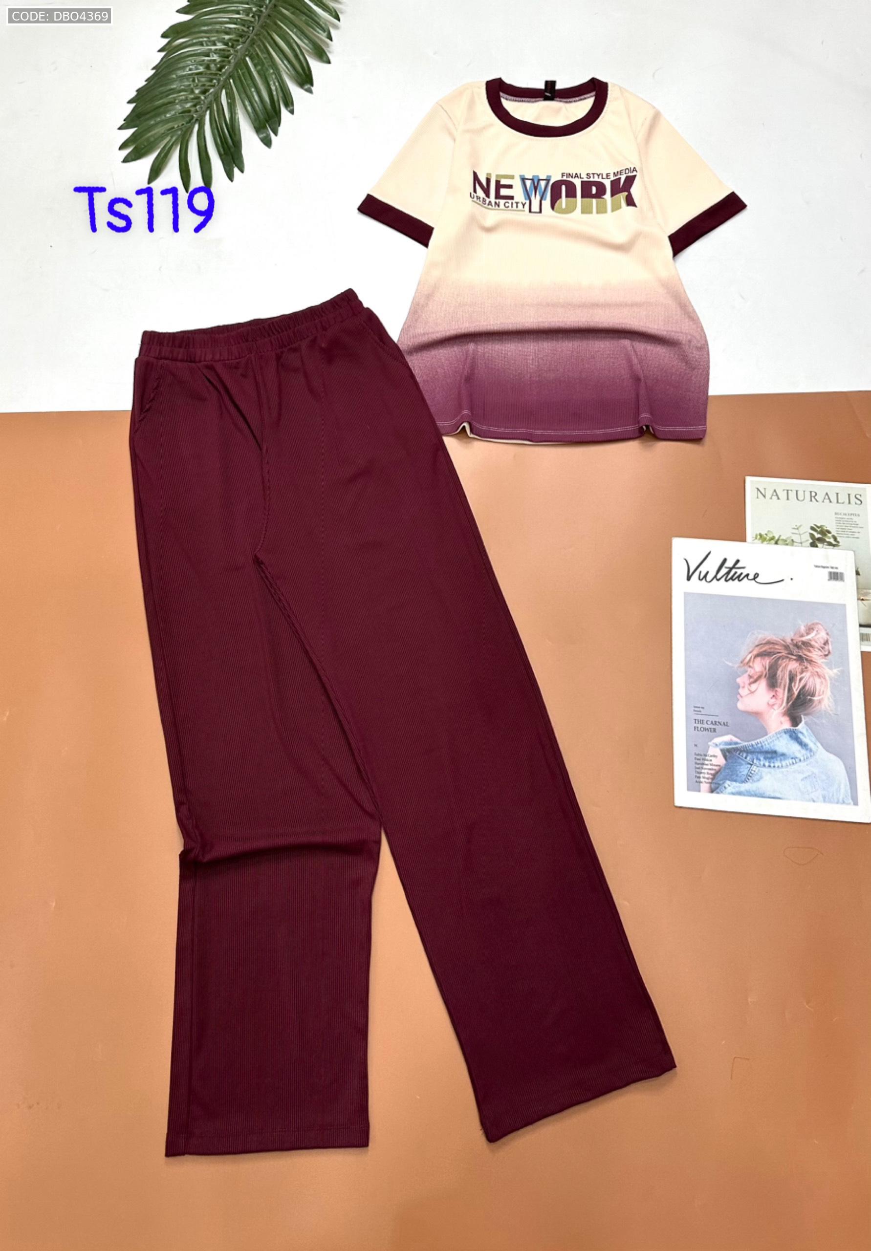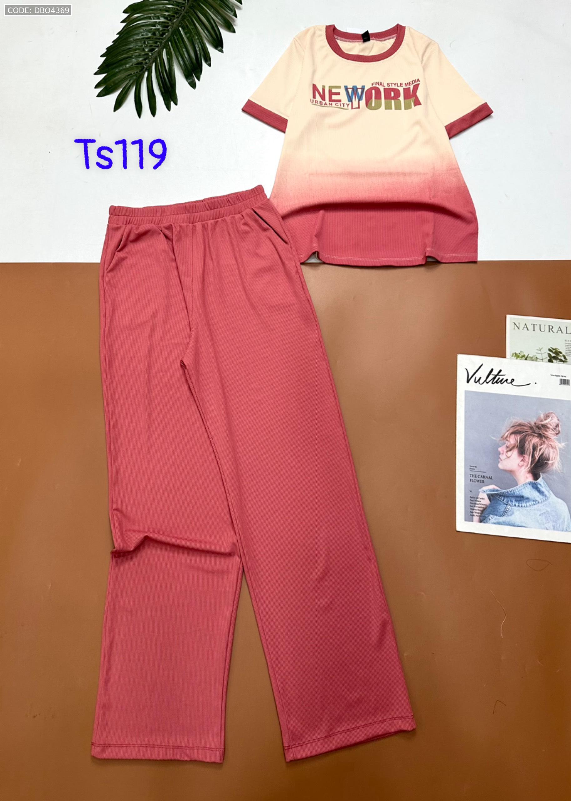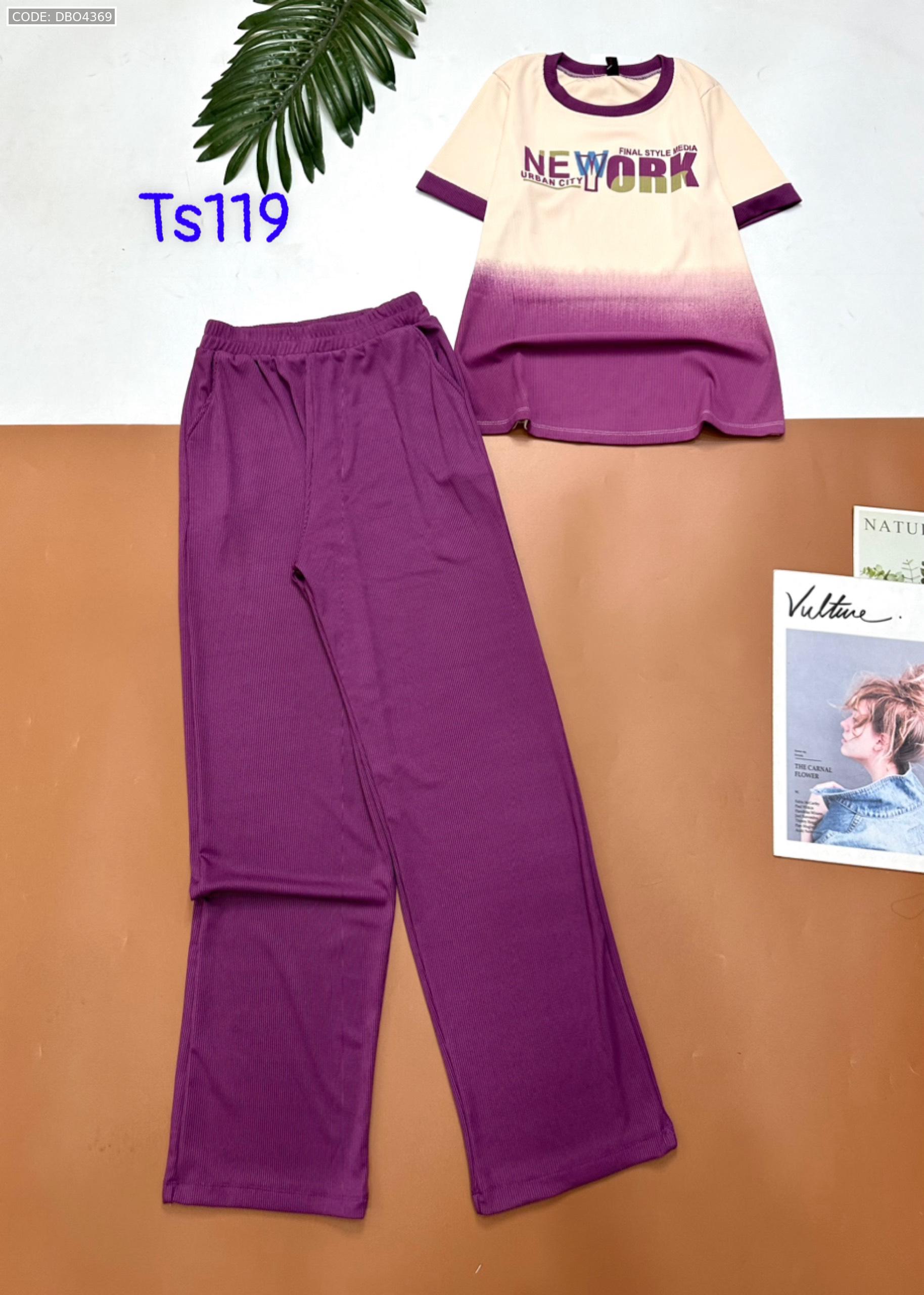 Shop sỉ đồ bộ tăm lạnh quần dài áo cổ tròn tay ngắn in chữ NEWYORK