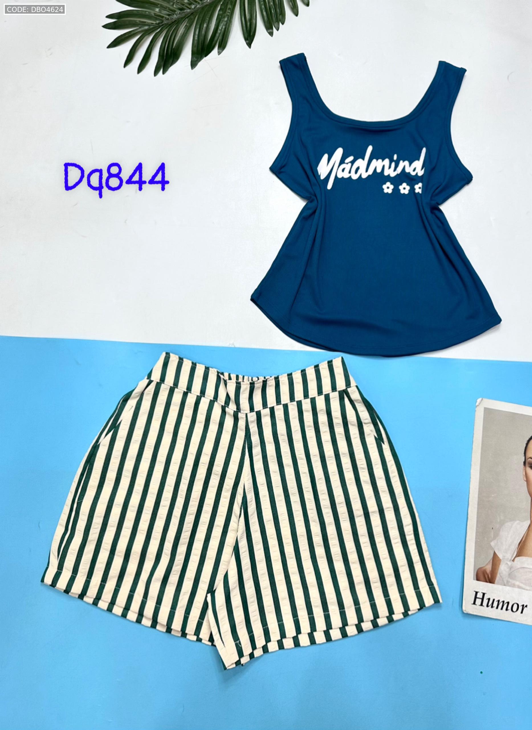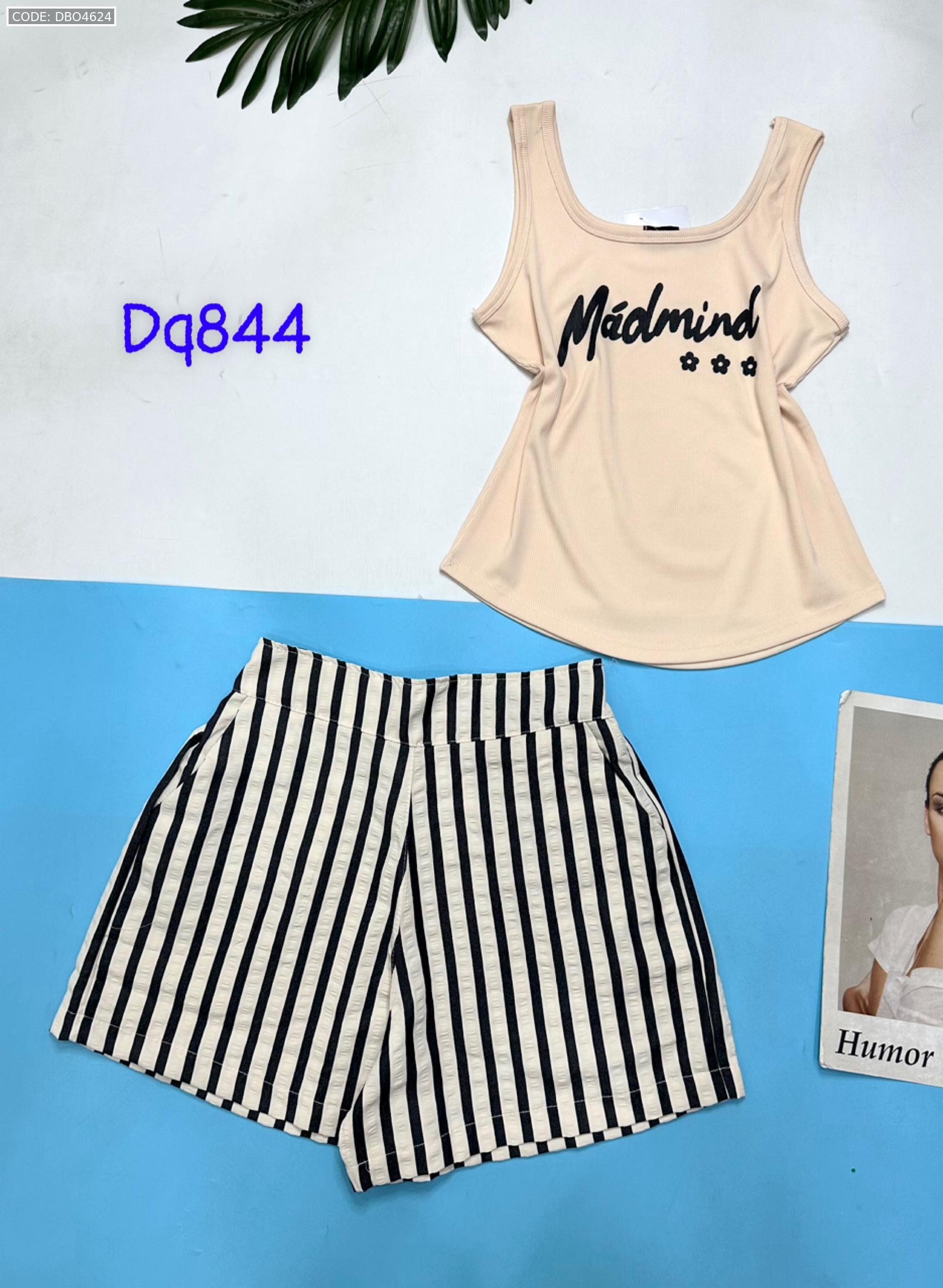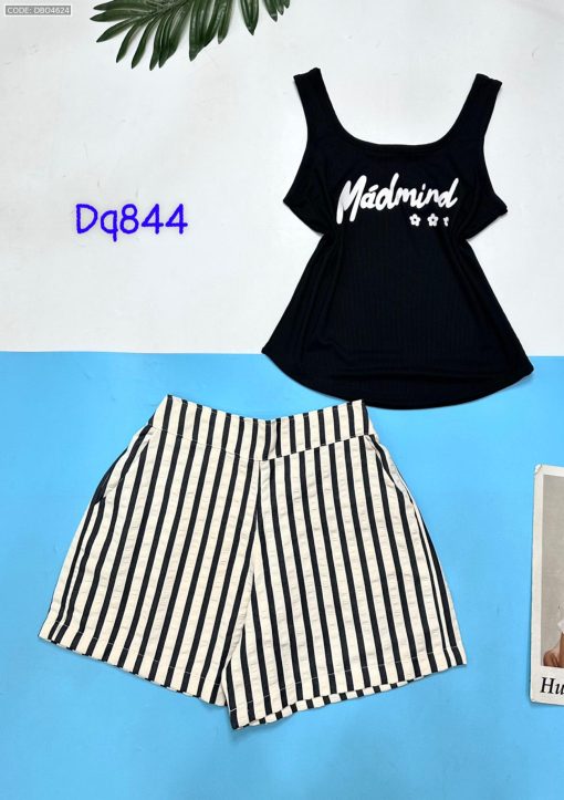 Shop sỉ đồ bộ thun cotton quần đùi kẻ sọc áo tay ba lỗ in chữ Mádmin
