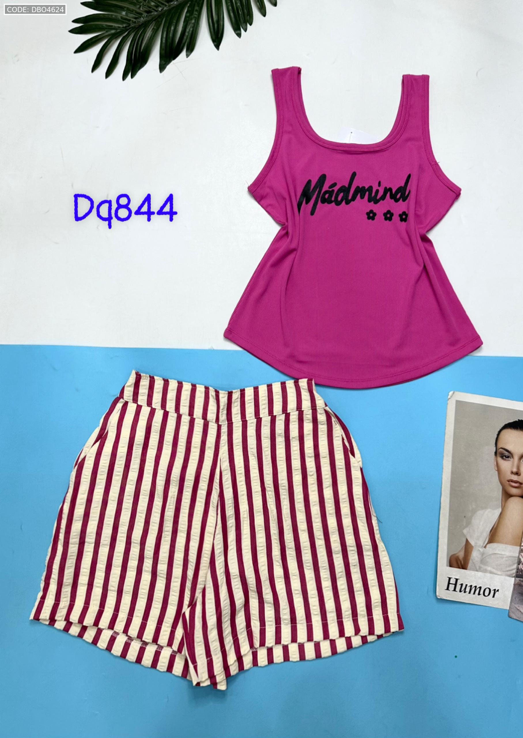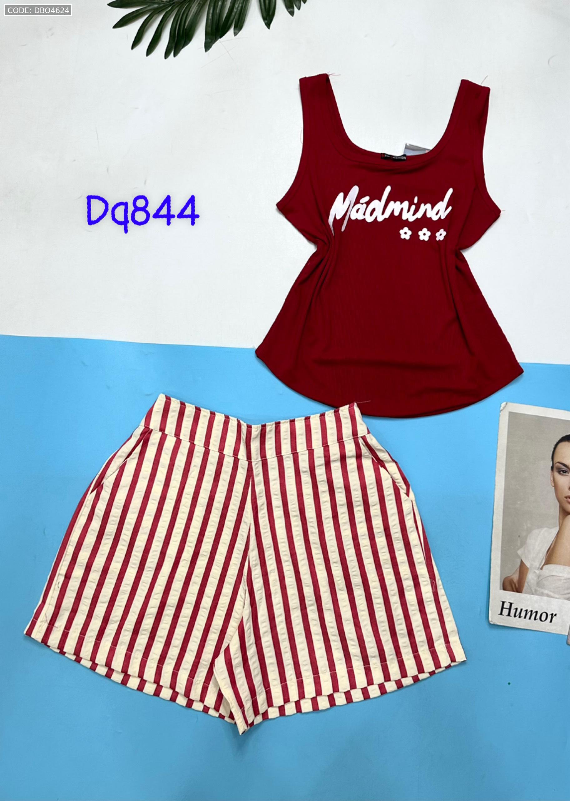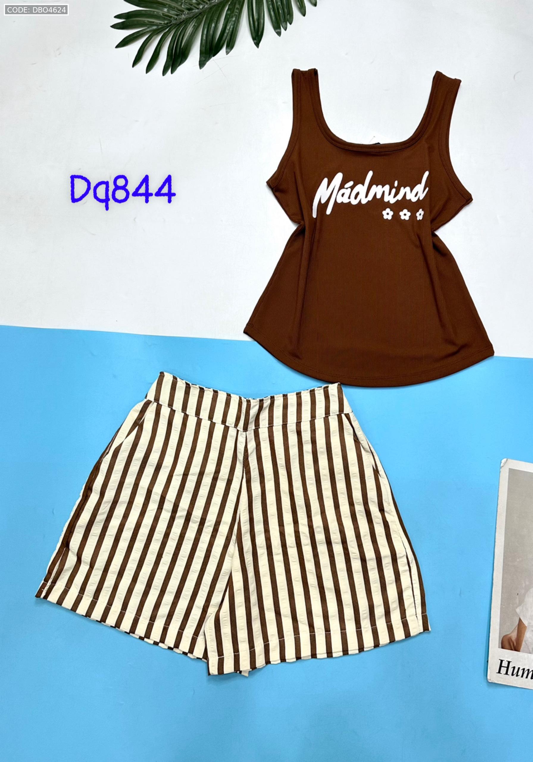Shop sỉ đồ bộ thun cotton quần đùi kẻ sọc áo tay ba lỗ in chữ Mádmin