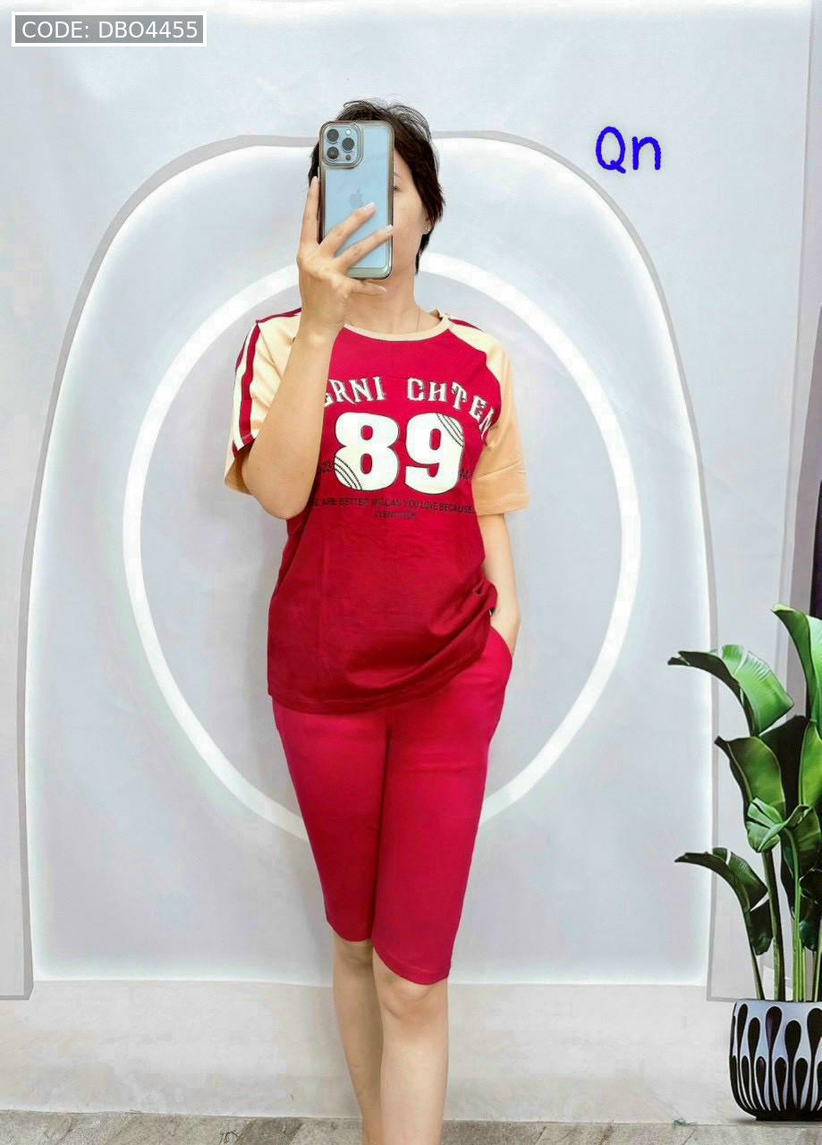 Shop sỉ đồ bộ thun cotton quần lửng áo tay ngắn in số 89