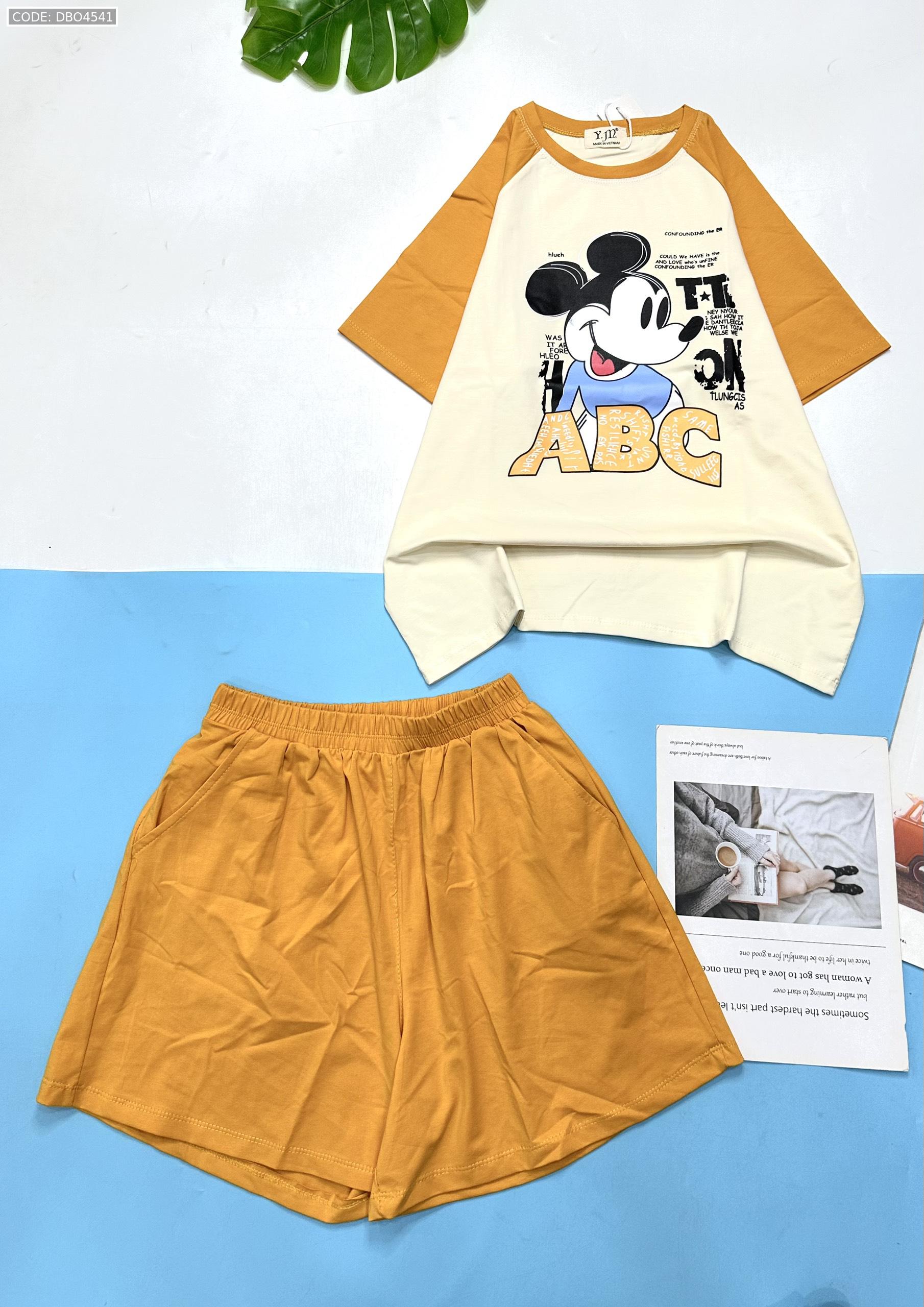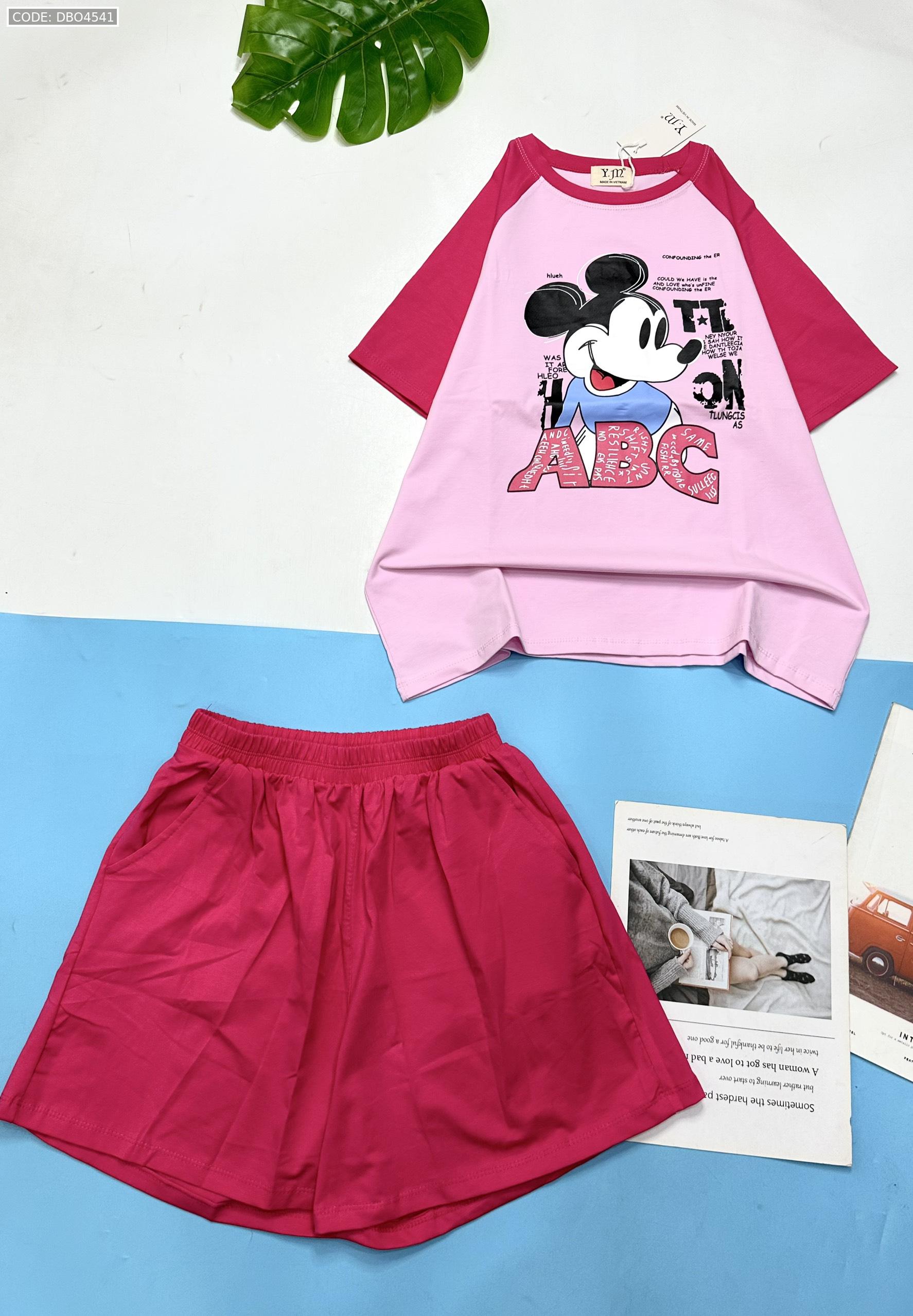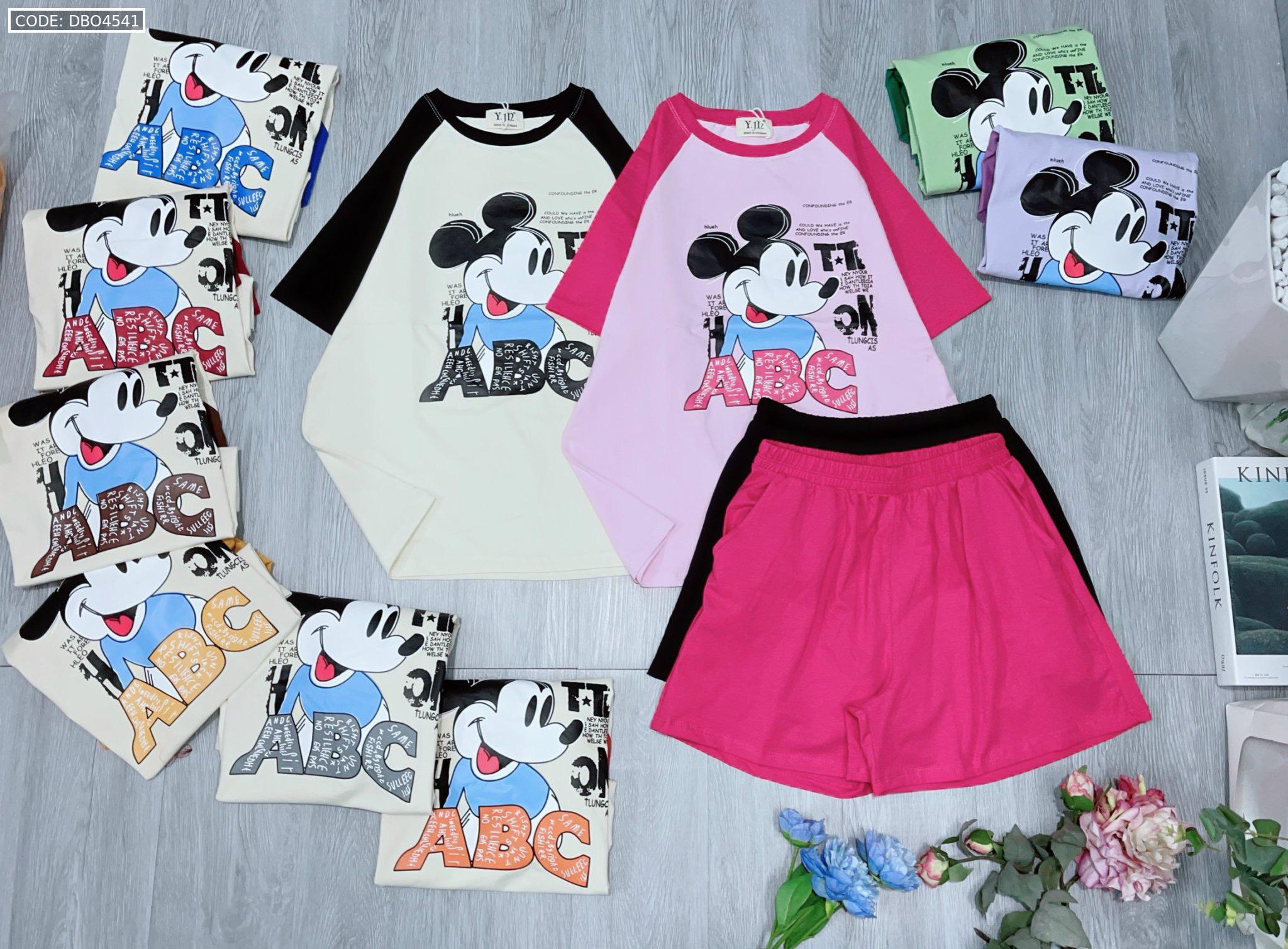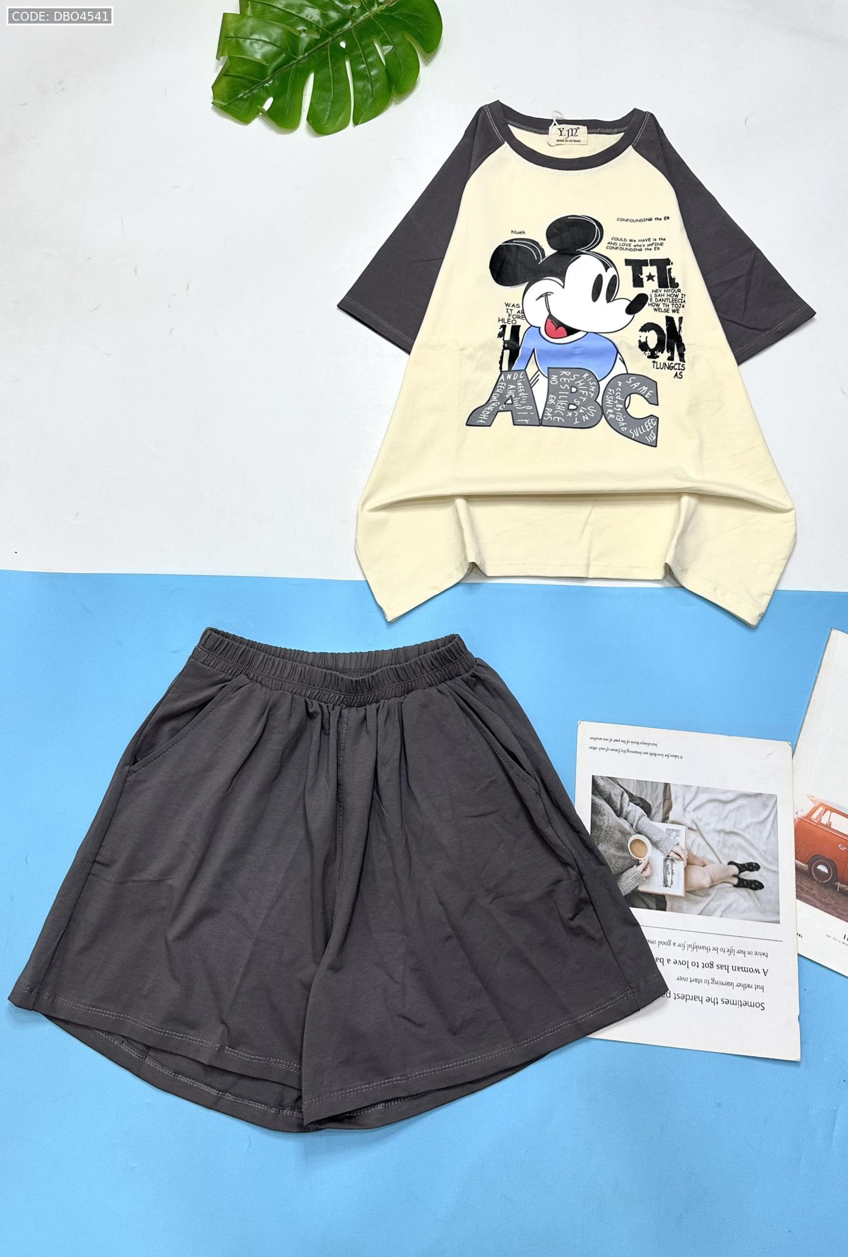 Shop sỉ đồ bộ thun nữ quần đùi áo in hình chuột mickey chữ ABC