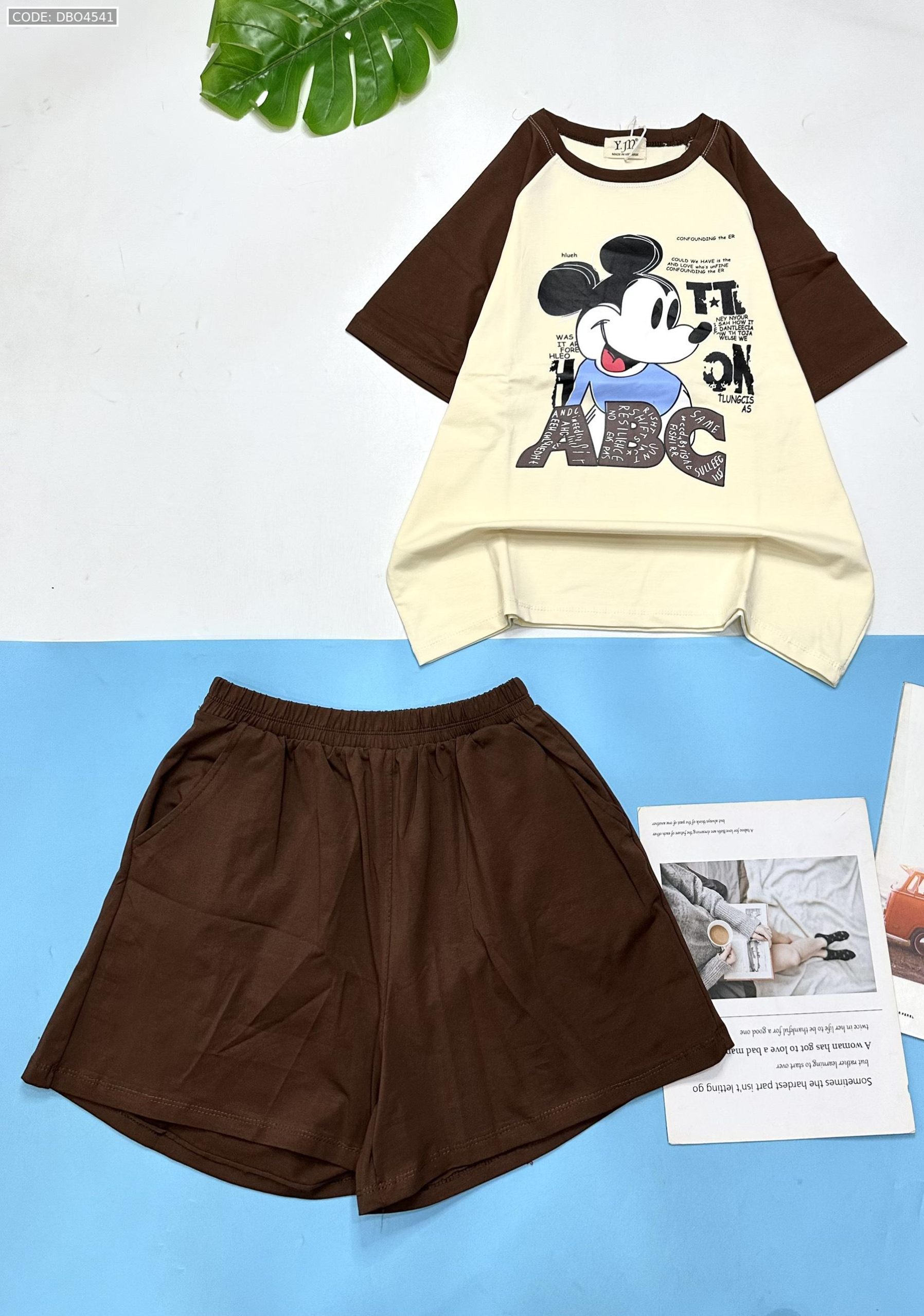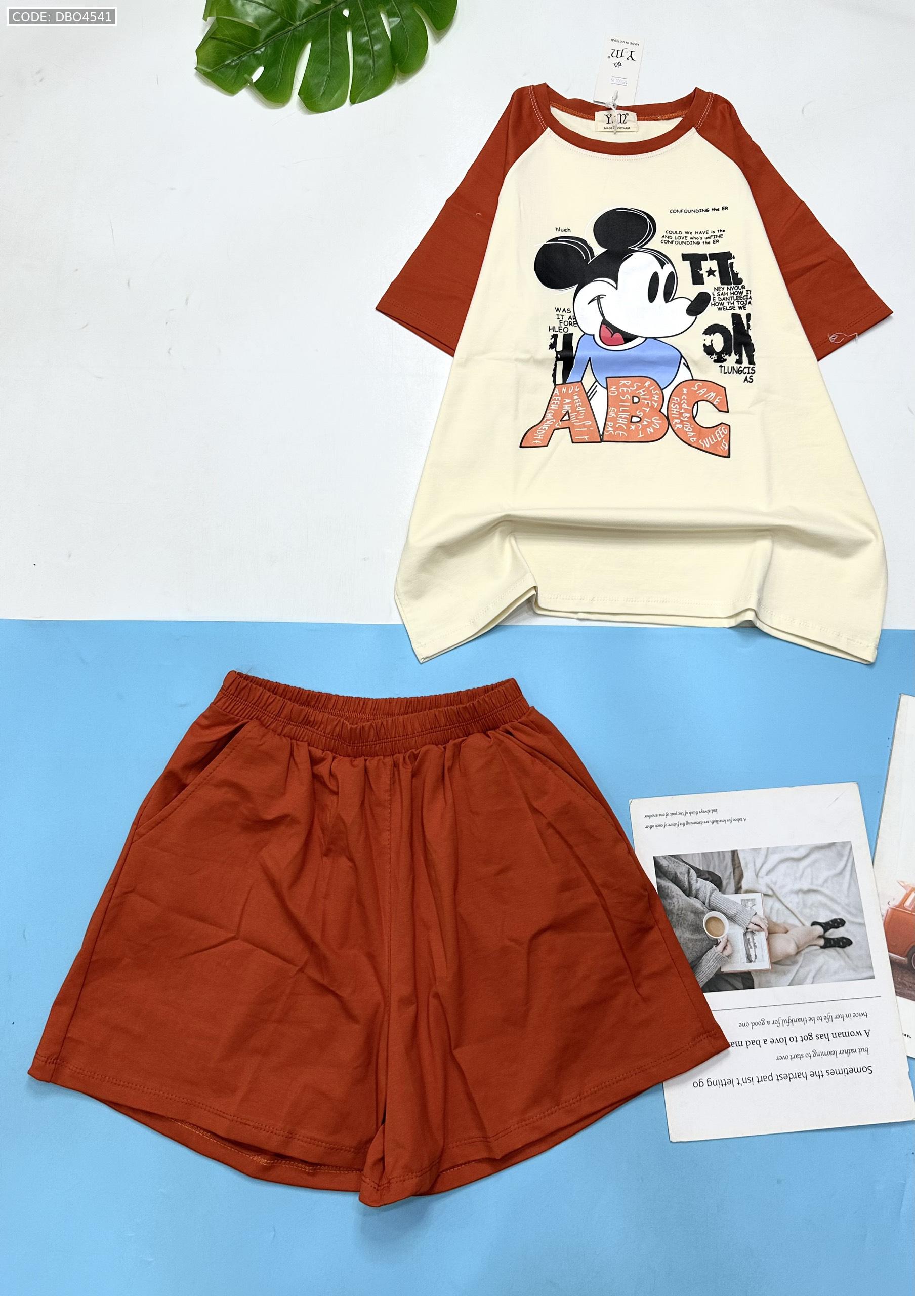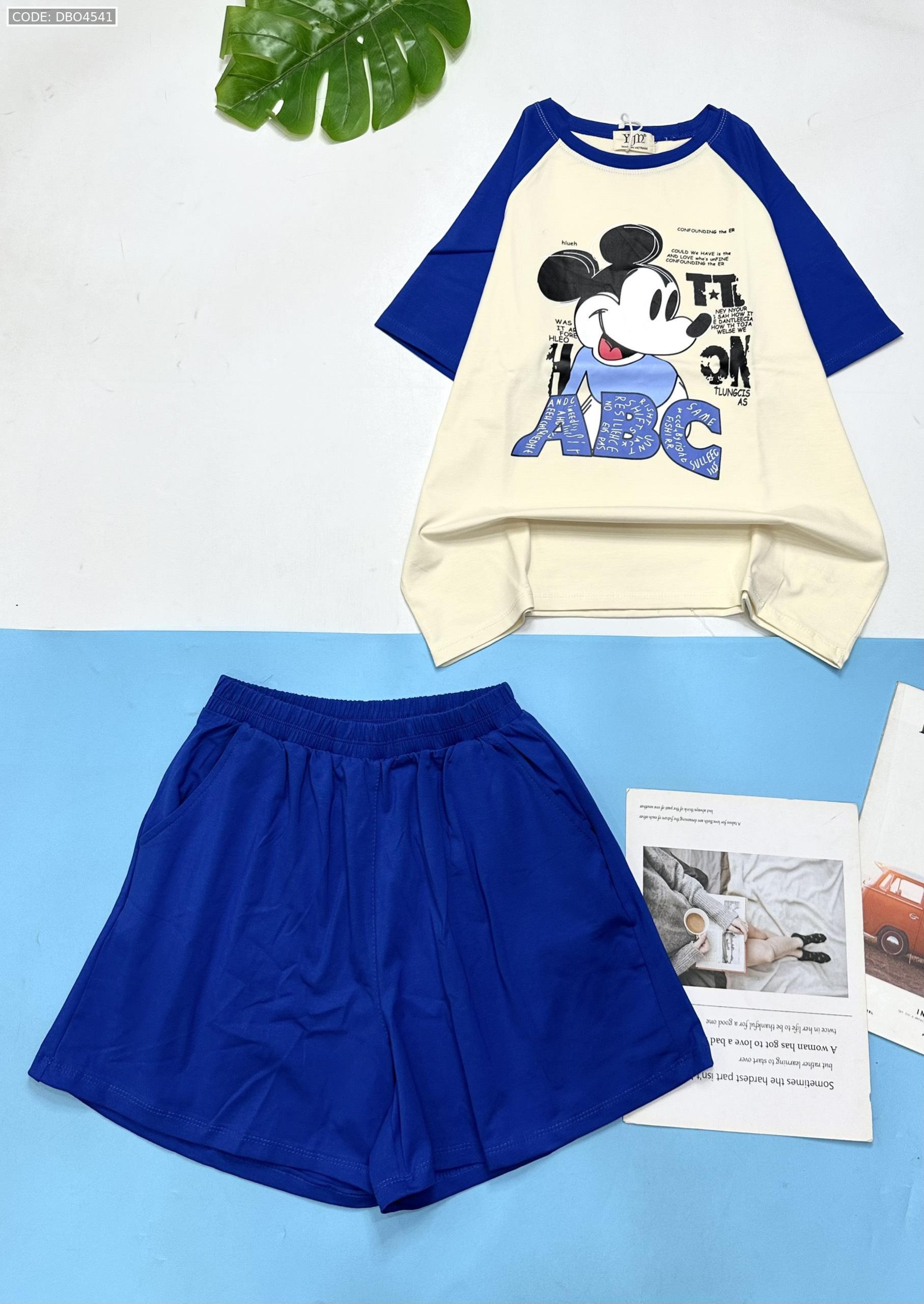 Shop sỉ đồ bộ thun nữ quần đùi áo in hình chuột mickey chữ ABC