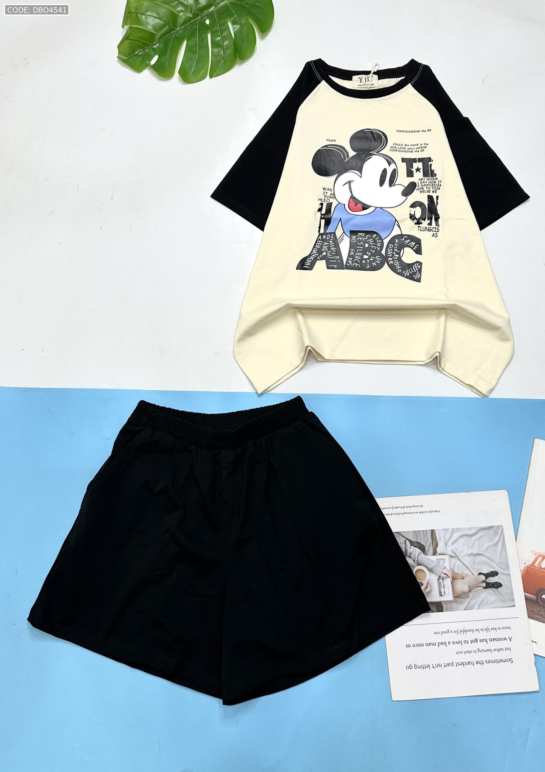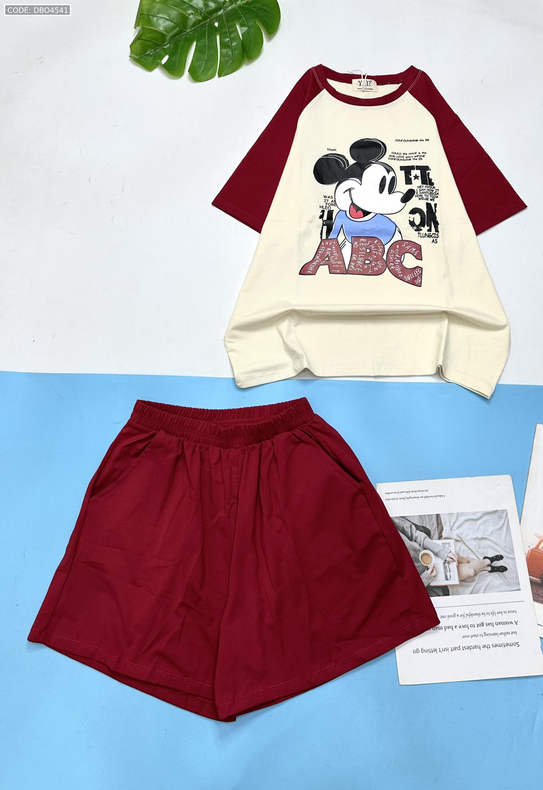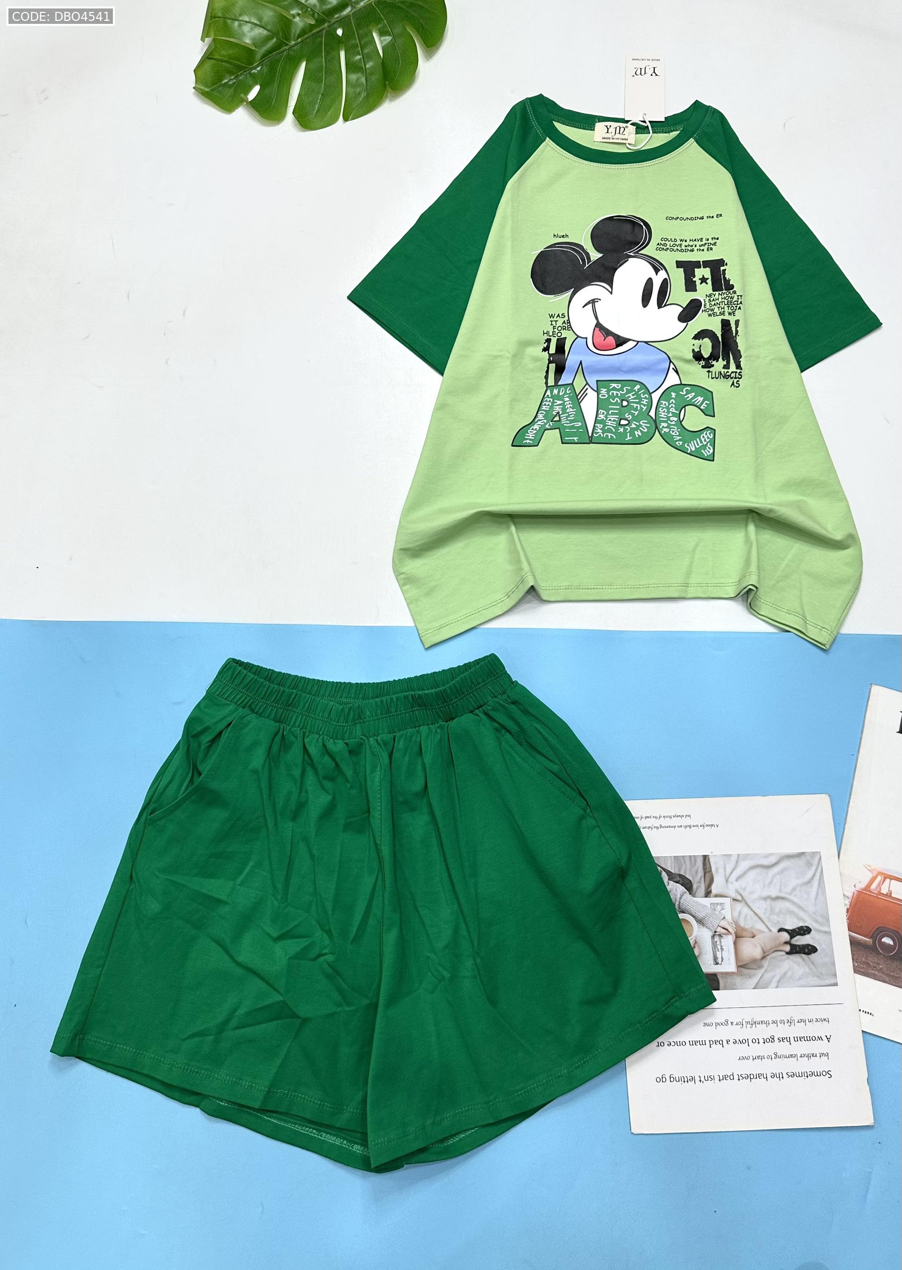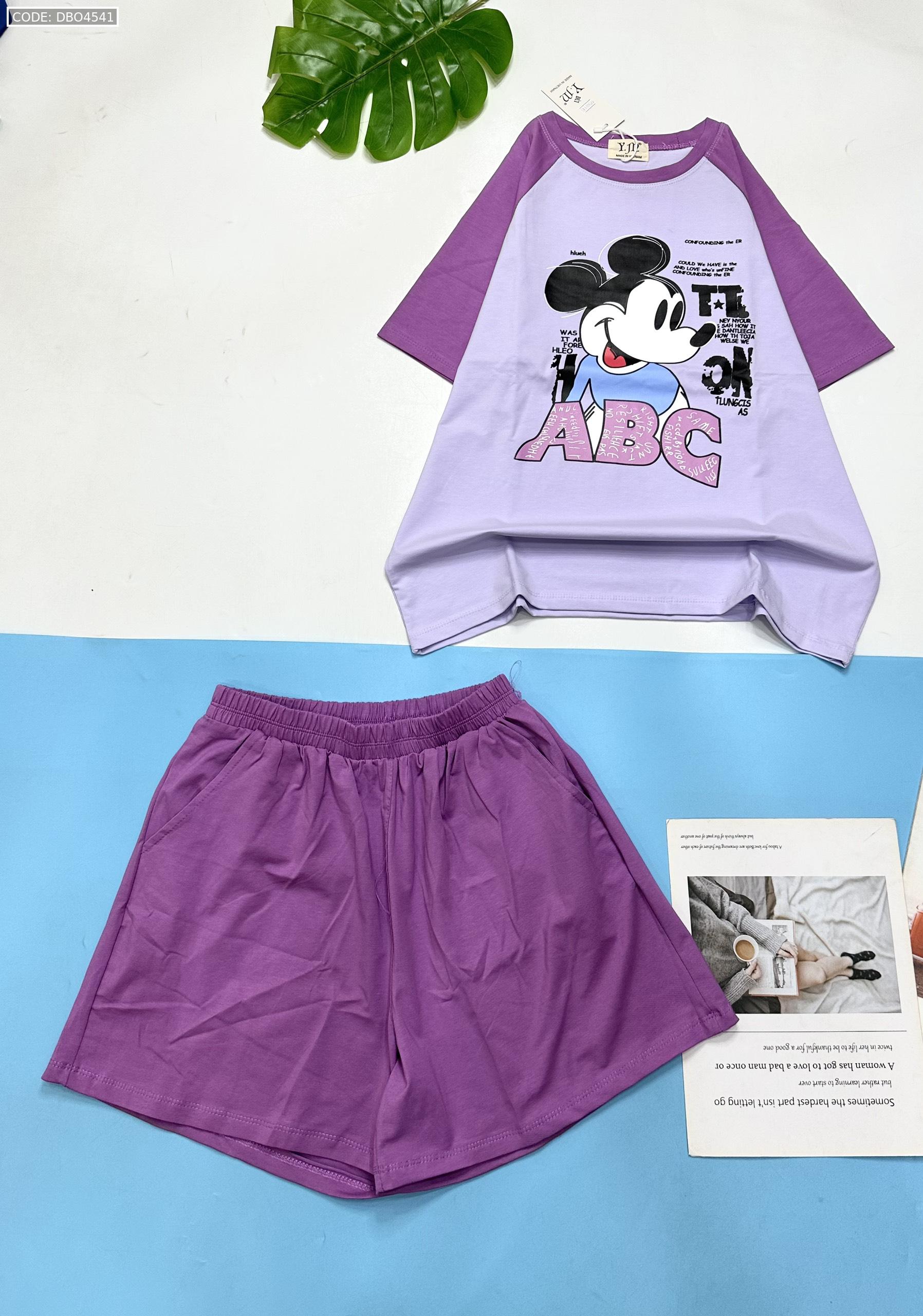 Shop sỉ đồ bộ thun nữ quần đùi áo in hình chuột mickey chữ ABC