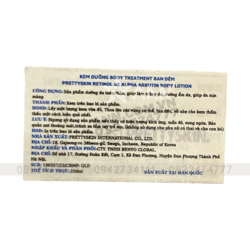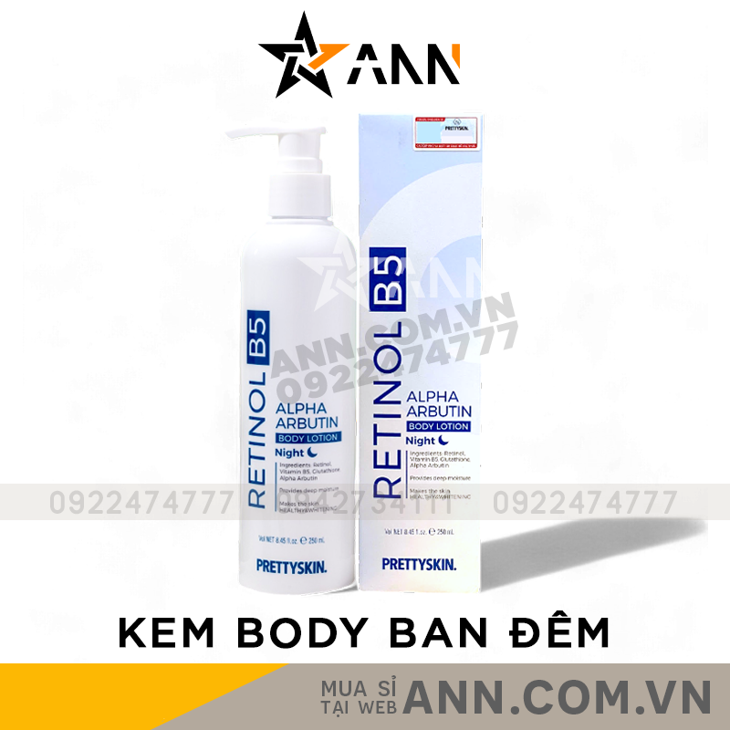Shop sỉ kem Body Prettyskin Màu Xanh Ban Đêm Retinol B5 Alpha Arbutin Body Lotion 250ml