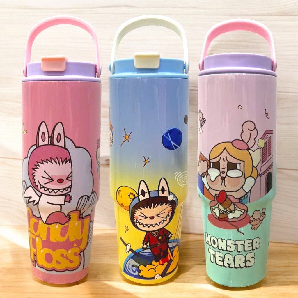 Shop sỉ ly Giữ Nhiệt Labubu Loang Màu Có Quai Xách 900ml