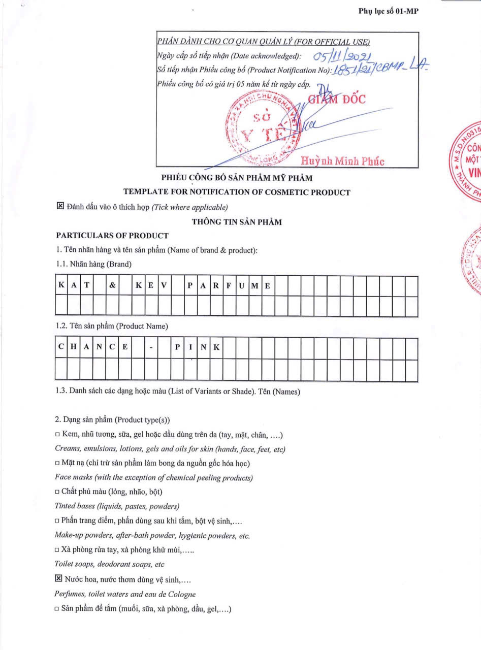 Shop sỉ nước Hoa Nữ Kat Kev Parfume Chance Pink 50ml – Hương Thơm Ngọt Ngào Nữ Tính