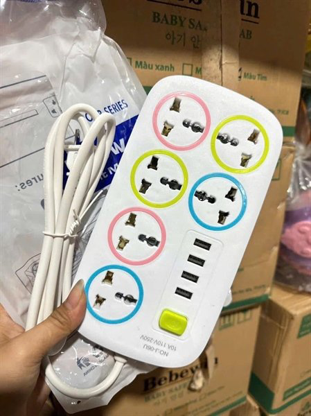 Trang bị 6 ổ cắm đa năng, phù hợp cho mọi loại phích cắm – dùng cho nhà ở, văn phòng, quán, cửa hàng đều tiện.