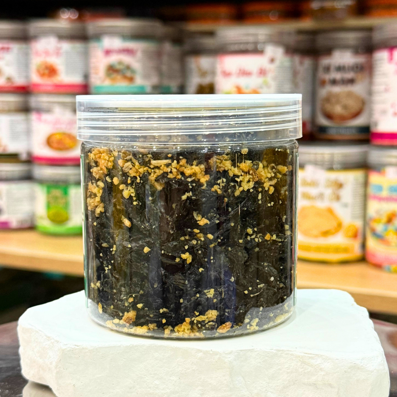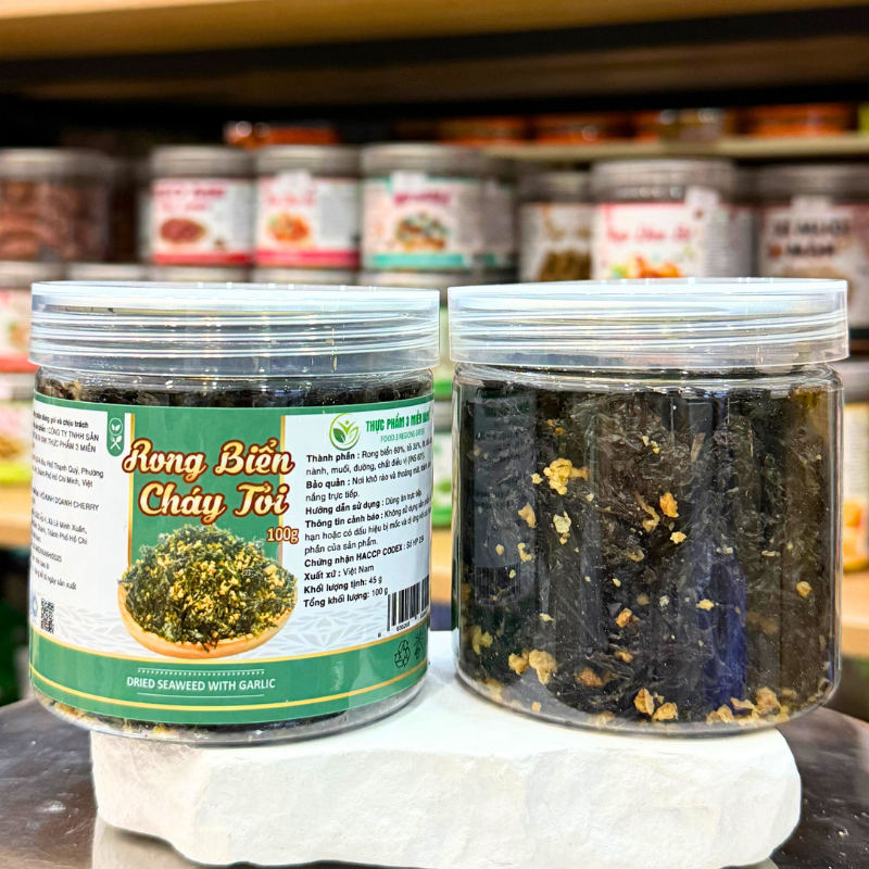 Shop sỉ rong Biển Cháy Tỏi Thơm Ngon Mini 100g – Hộp Pet