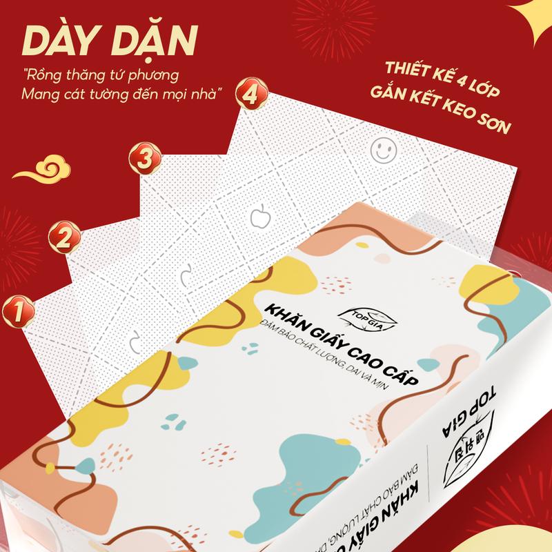 + 4 lớp dày, dai nhưng vẫn mềm mại, giấy chính hãng sẽ được dập nổi 4D