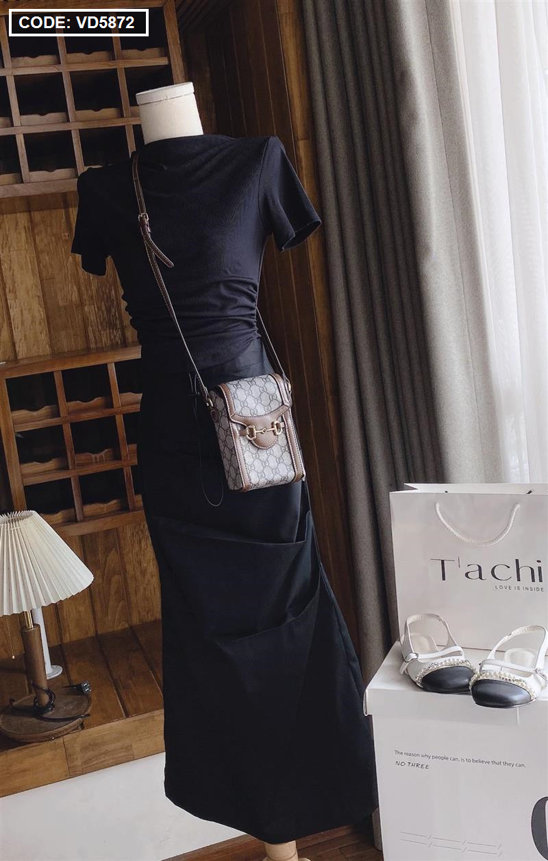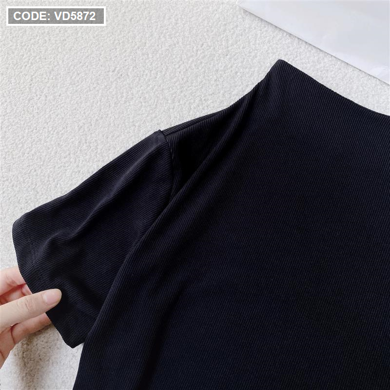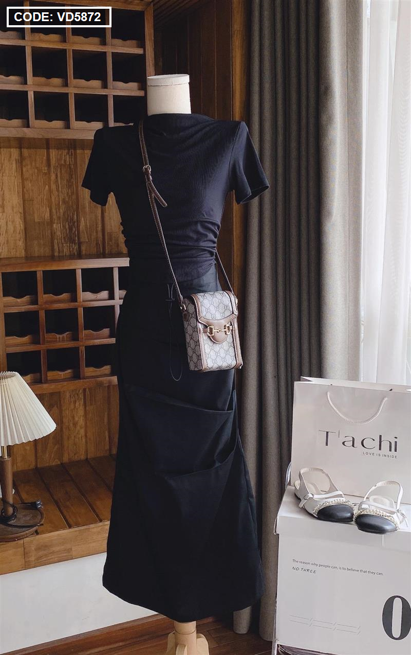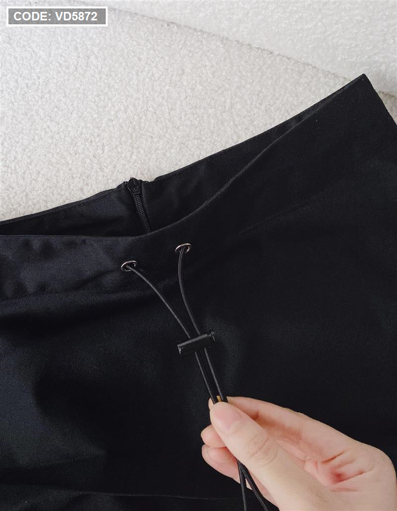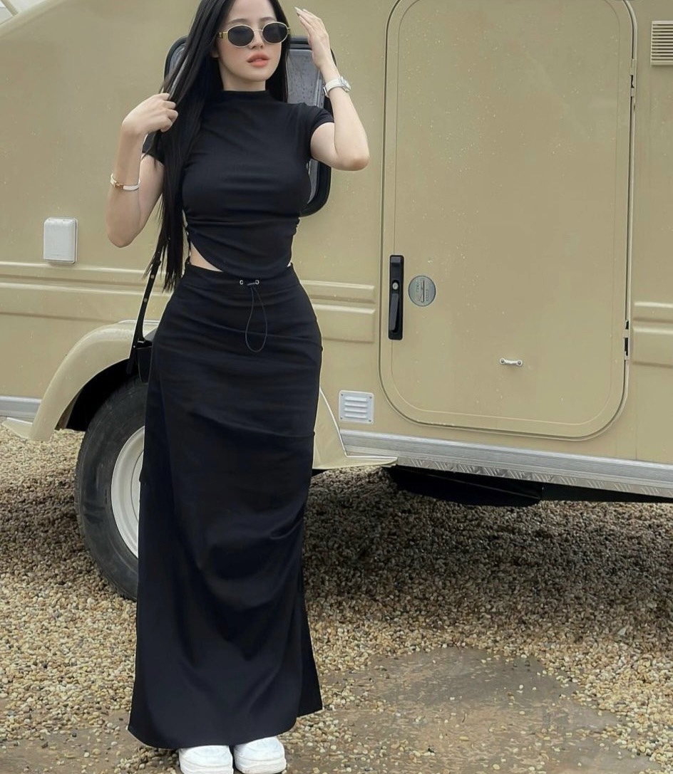 Shop sỉ sét áo đen cổ cao tà bàu + chân váy midi