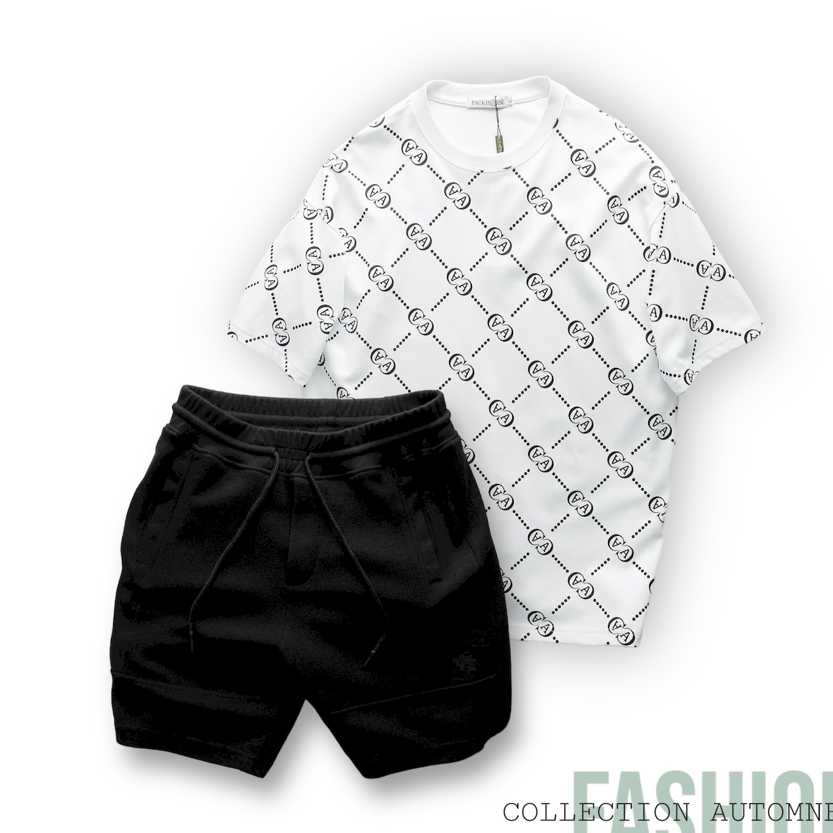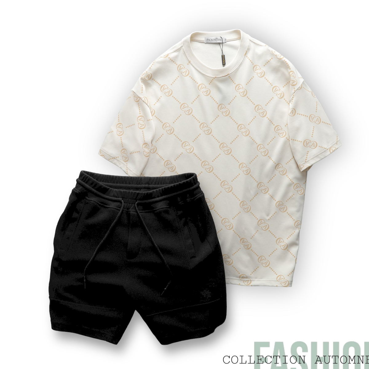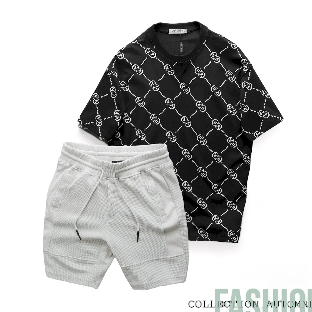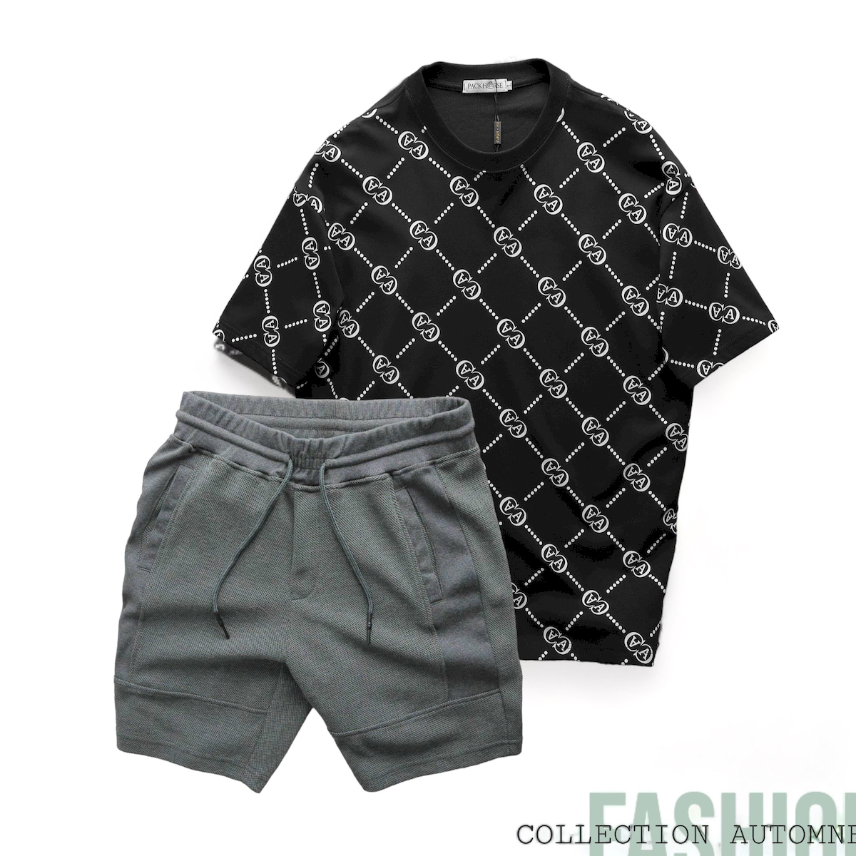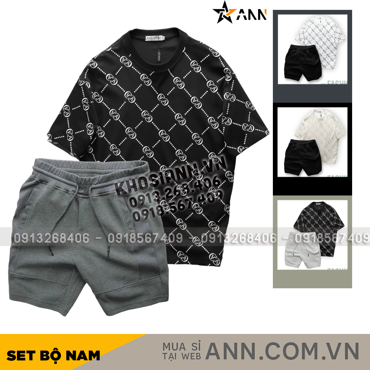 Shop sỉ set Bộ Nam Áo Cổ Tròn Pack Horse In Chữ AA Quần Short Thun Thể Thao