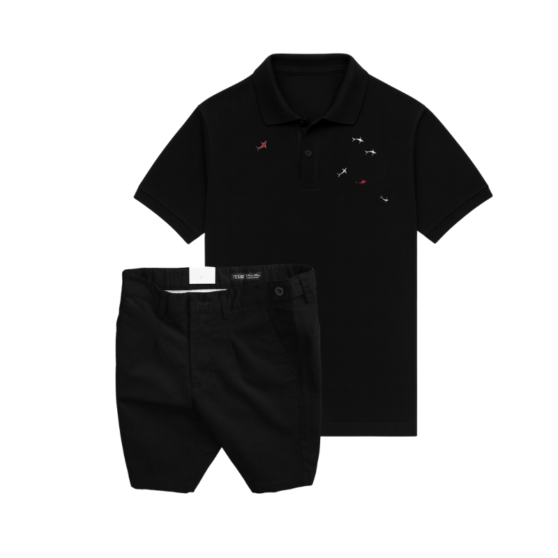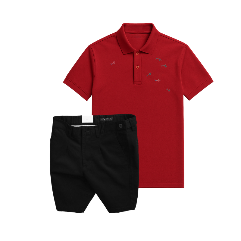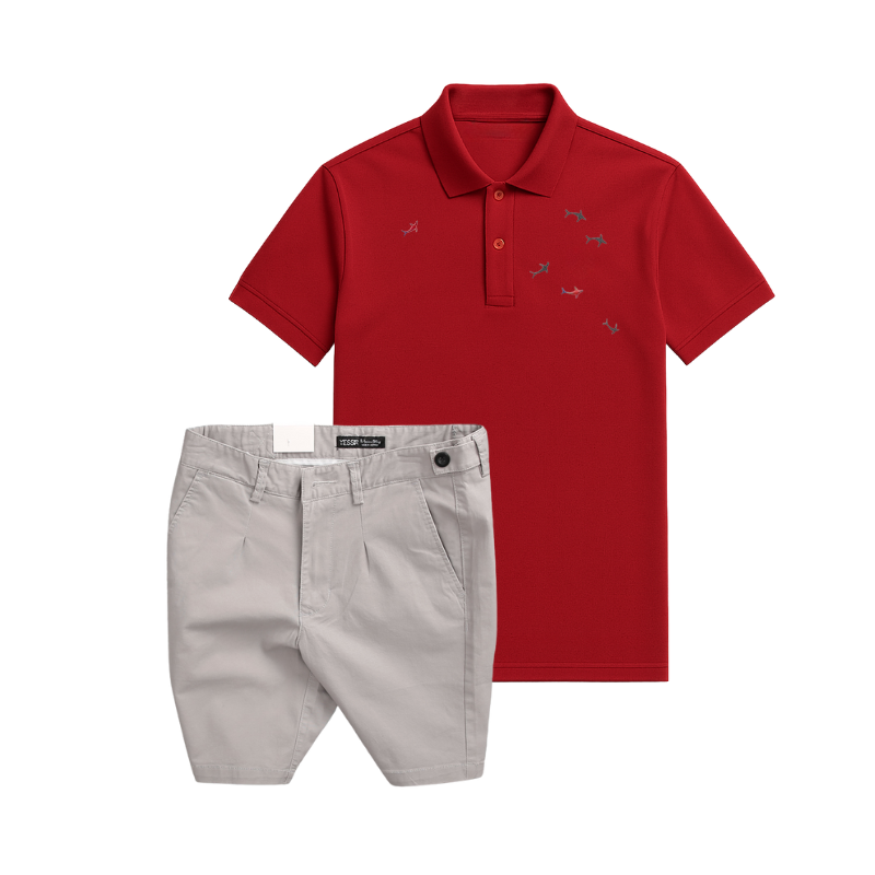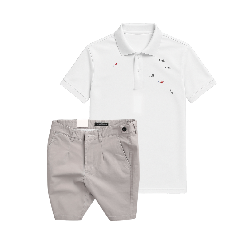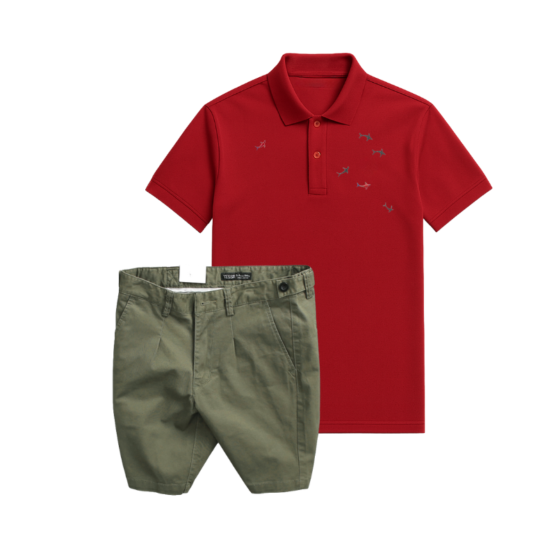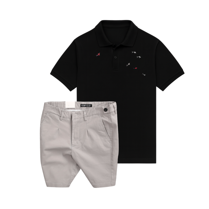 Shop sỉ set Bộ Nam – Áo Thun Nam Polo Cổ Bẻ Thêu Cá Mập Trước Ngực Và Quần Short Kaki Co Giãn Phối Nút Cao Cấp (Có Size 36)