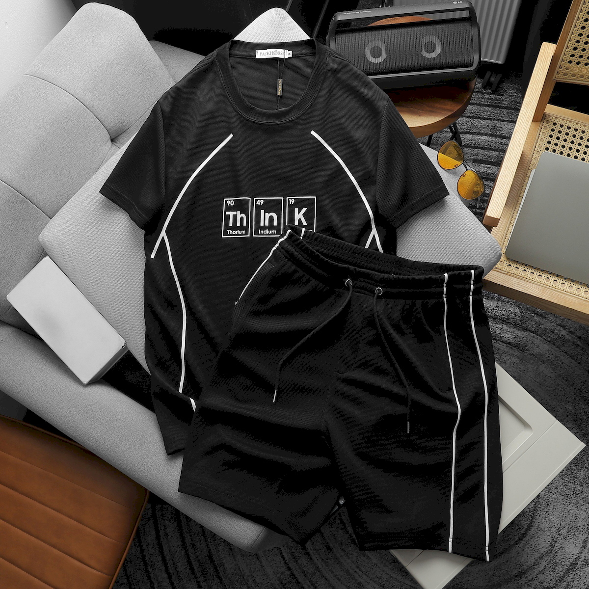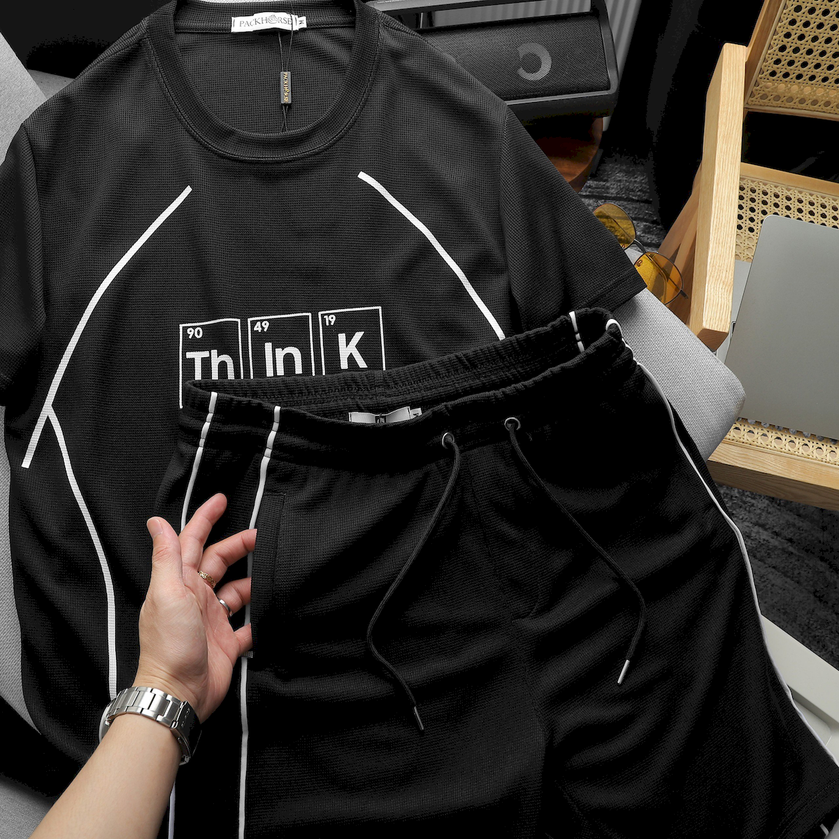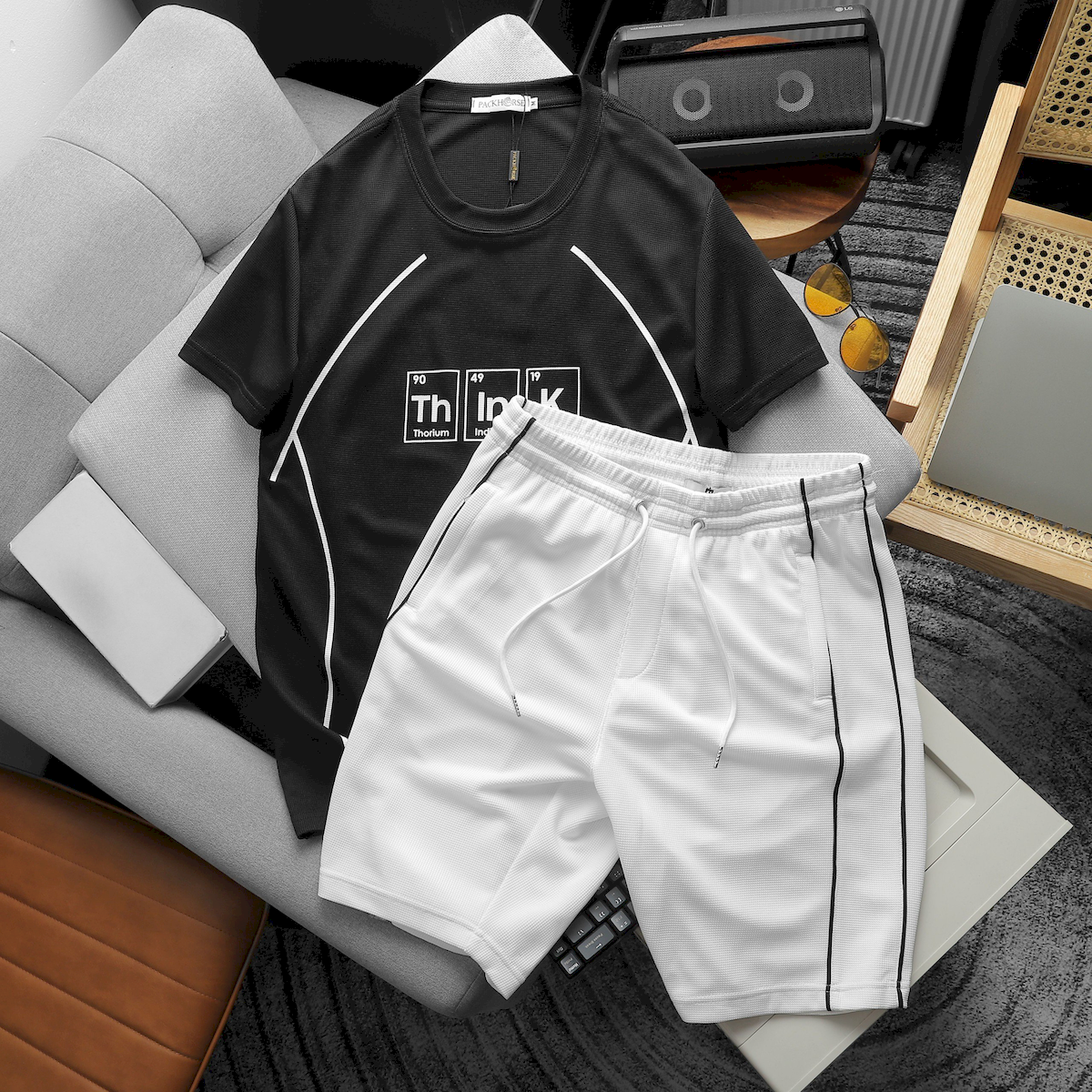 Mang phong cách trẻ trung, năng động cùng bộ set quần short phối áo thun cổ tròn Pack Hourse In Chữ Think dành cho nam giới.