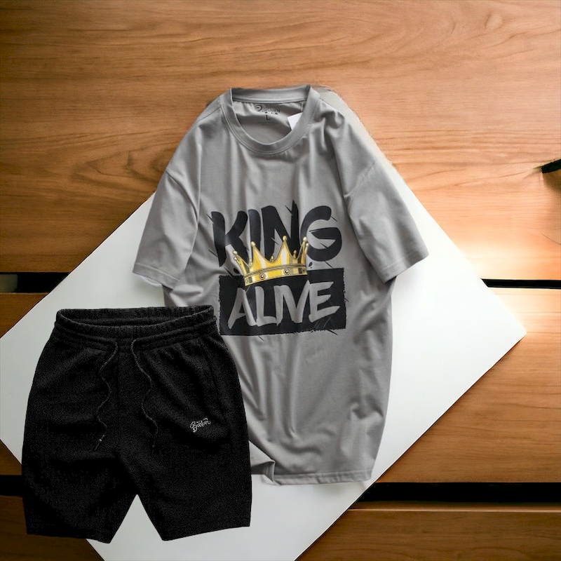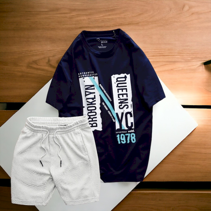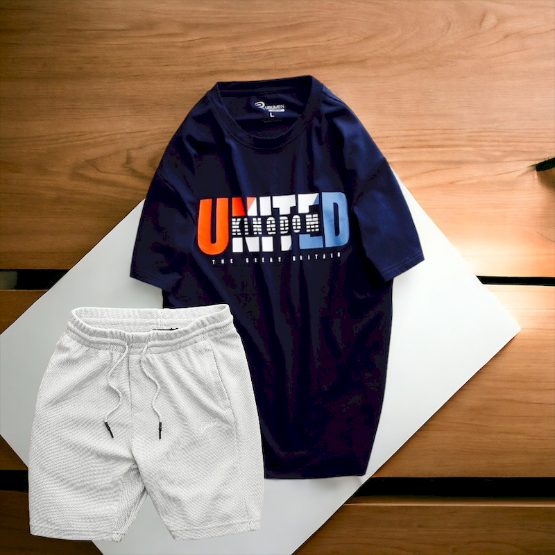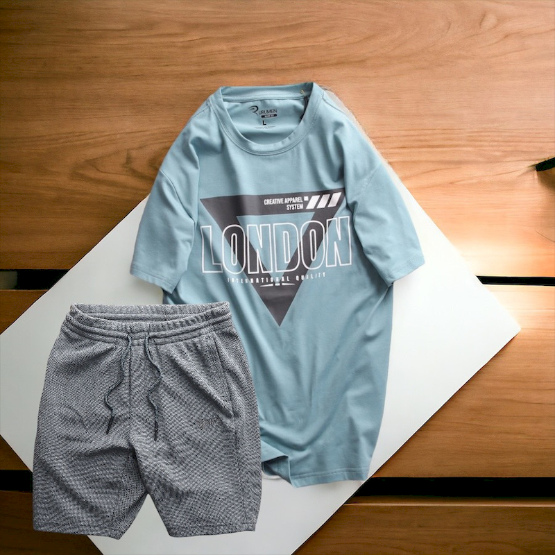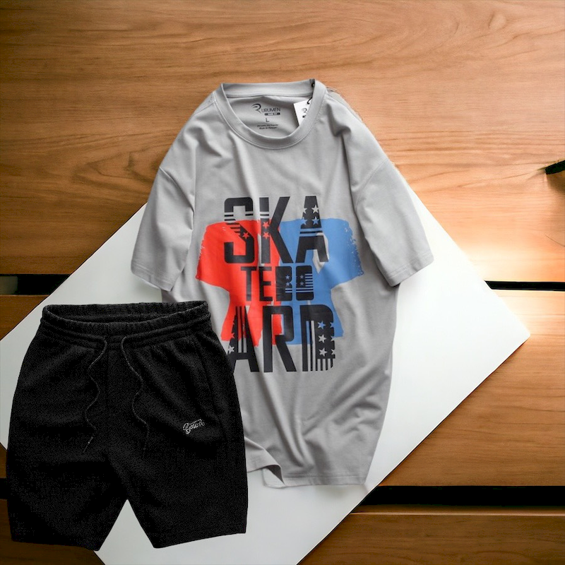 Set Bộ Nam Quần Short Thun Phối Áo Cổ Tròn Rurumen In Hình