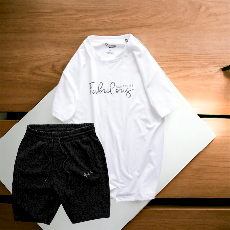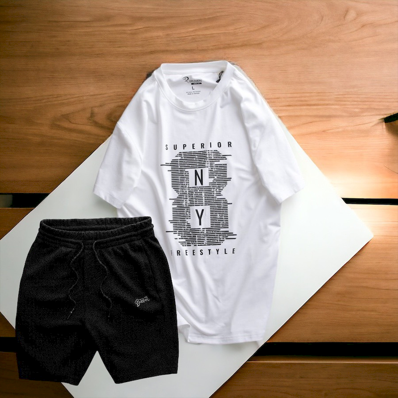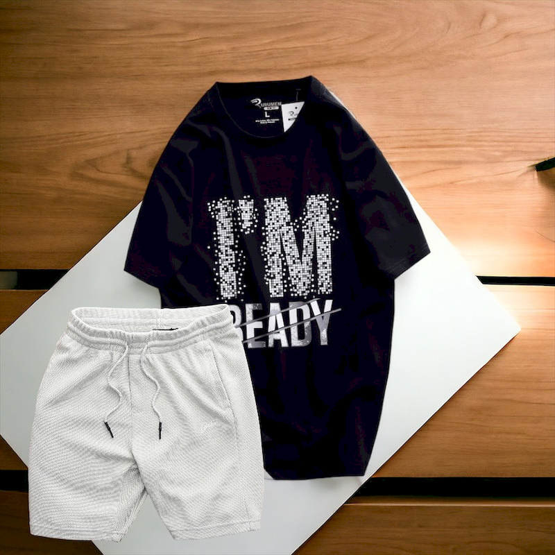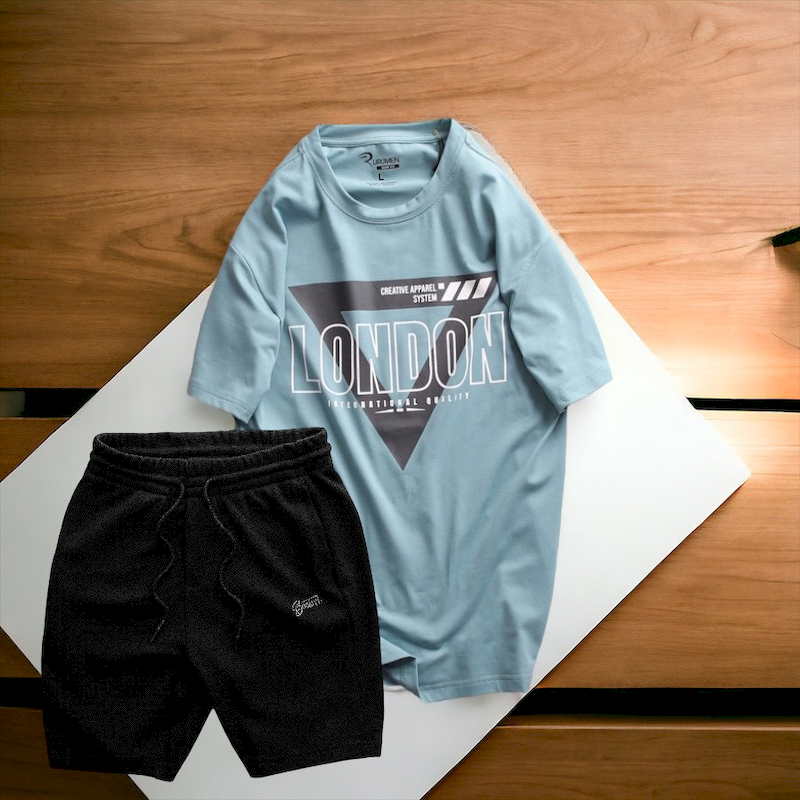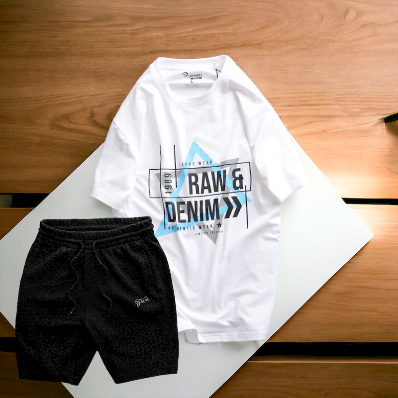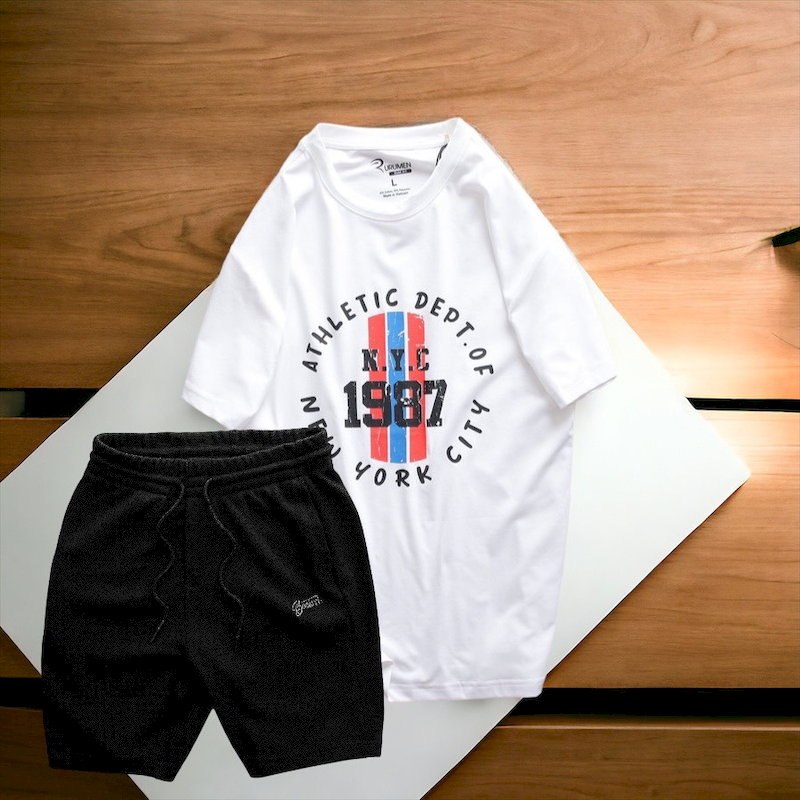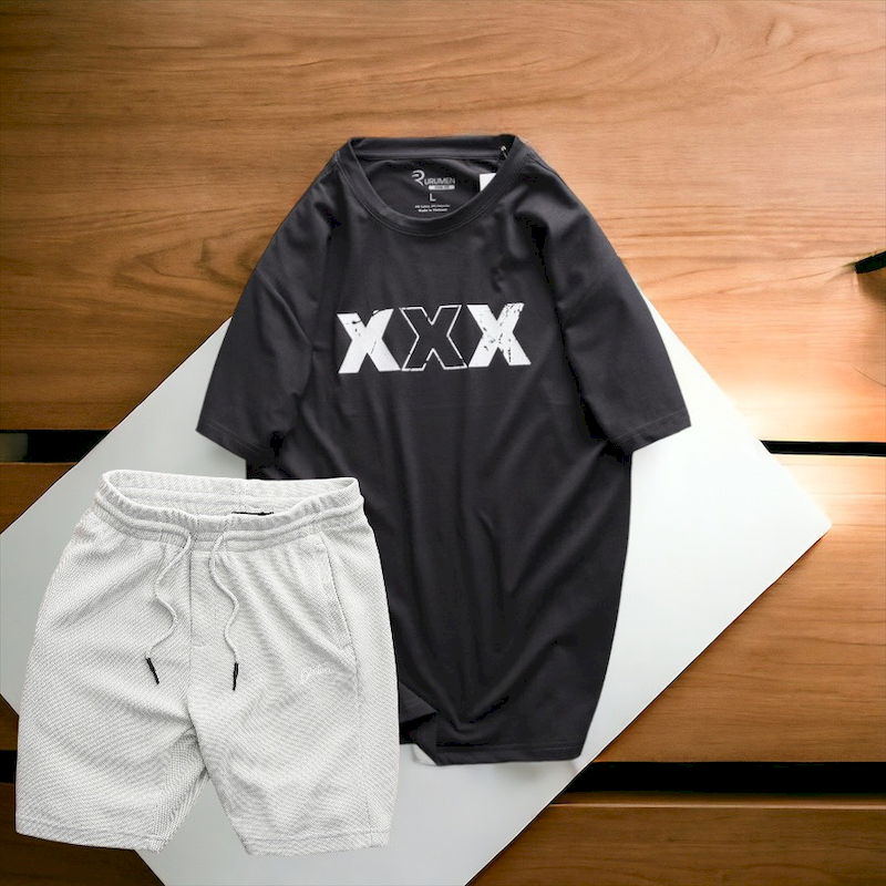 Shop sỉ set Bộ Nam Quần Short Thun Phối Áo Cổ Tròn Rurumen In Hình