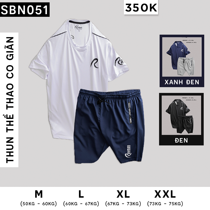 Chất liệu Áo thun thể thao co giãn tốt, thấm hút mồ hôi, quần vải dù giản nhẹ.