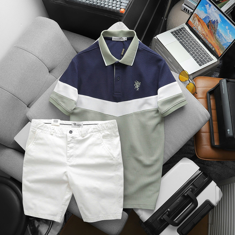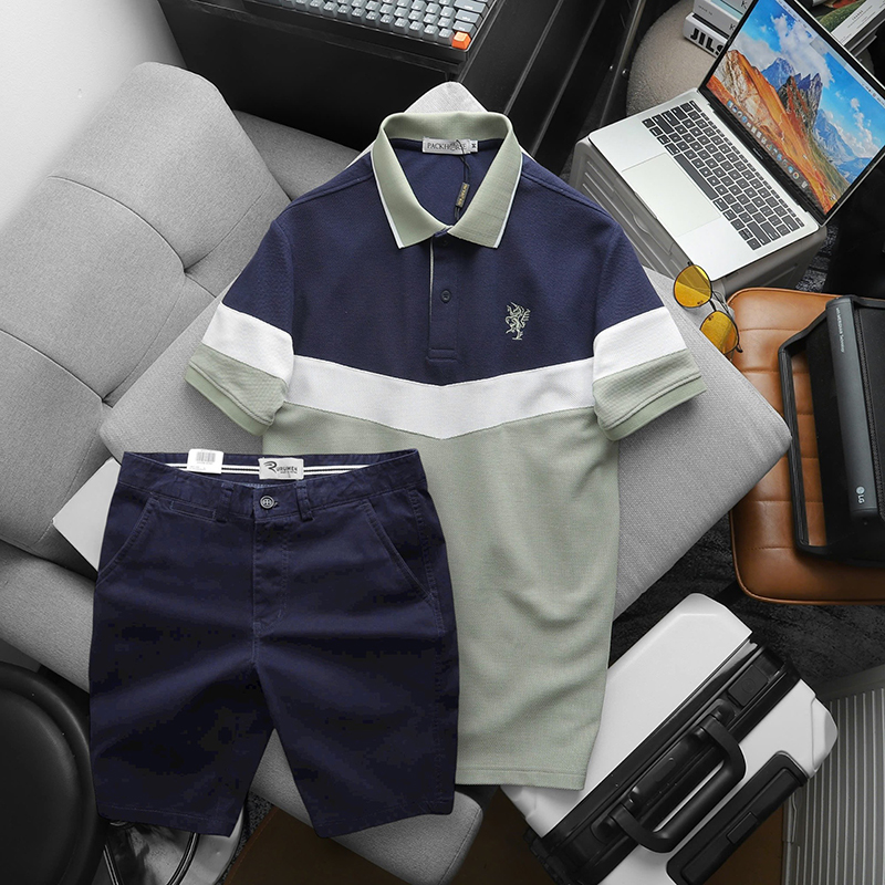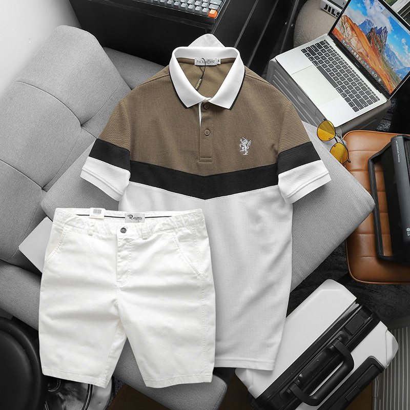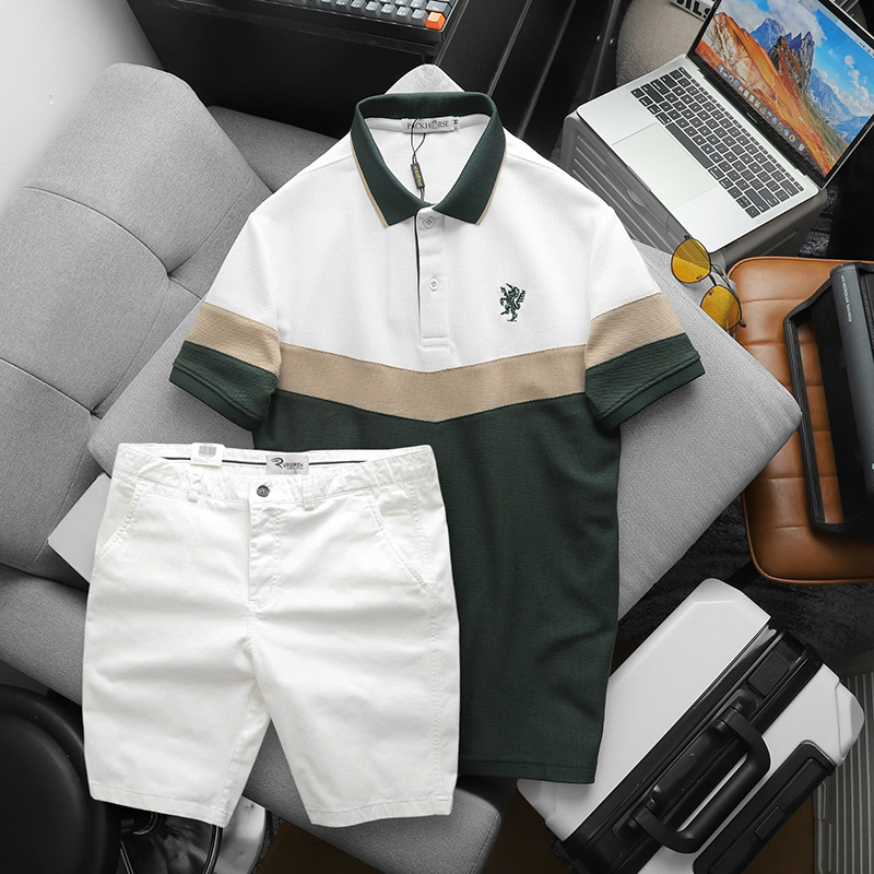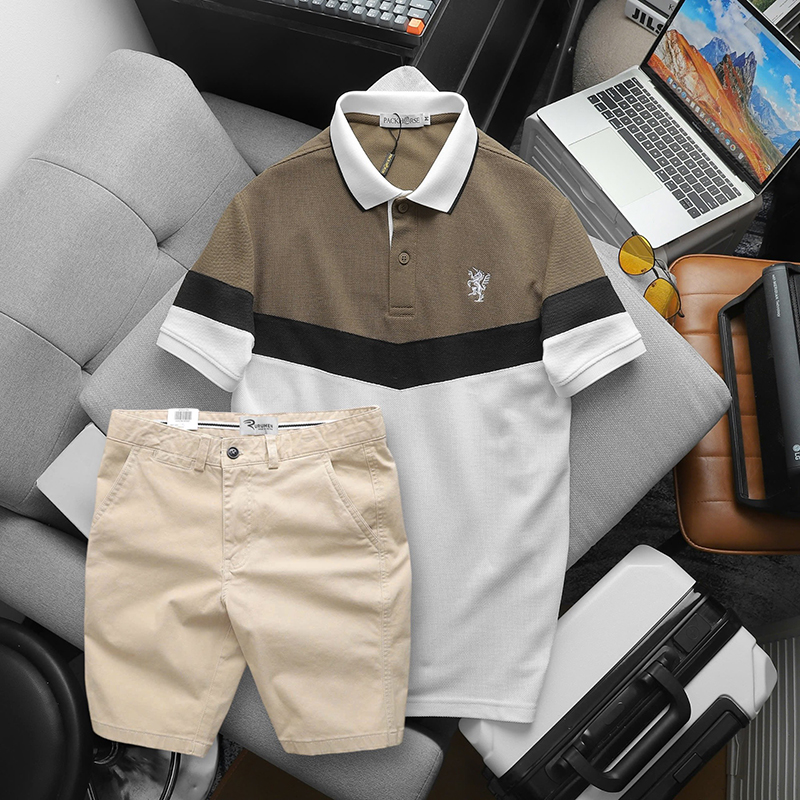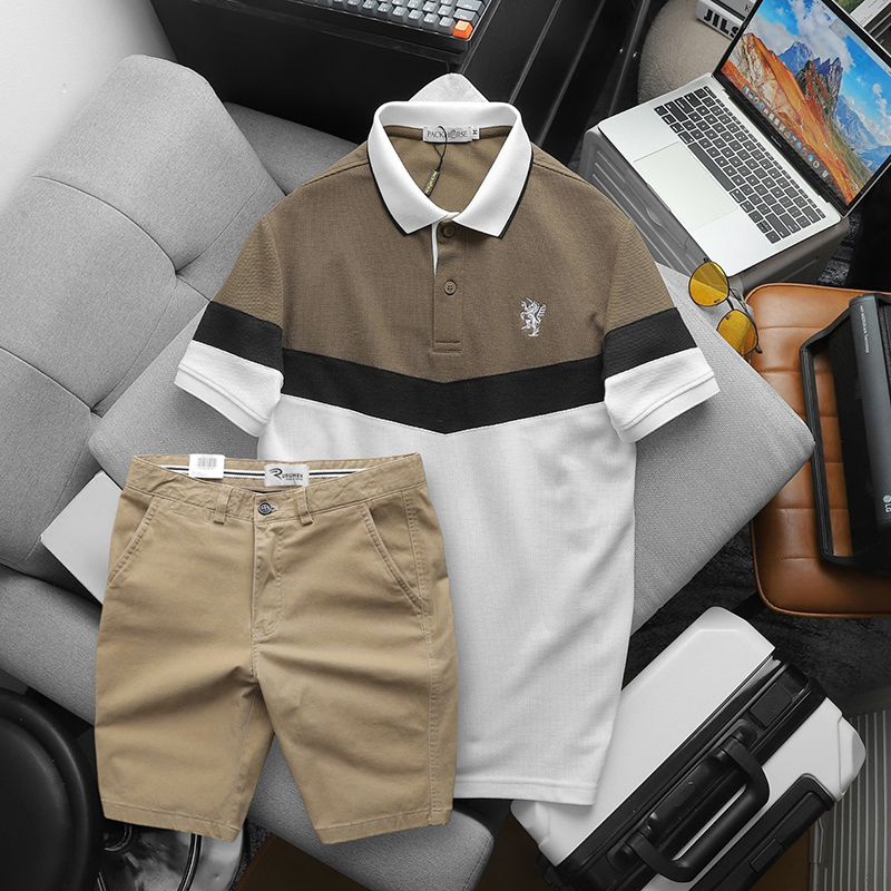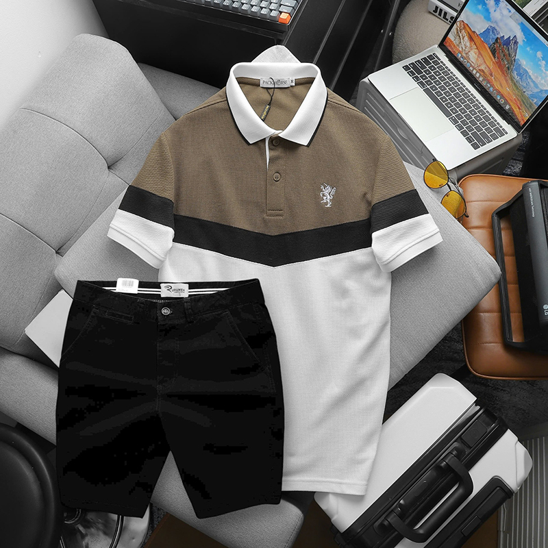 Shop sỉ set Đồ Nam Áo Polo Phối Ba Màu Thêu Logo Trước Ngực + Quần Short Kaki Nam Cao Cấp (Có Size 3x)