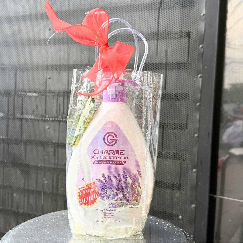Shop sỉ set Giỏ Quà Tặng Sữa Tắm Charme Hương Hoa Oải Hương Tím 1 Lít