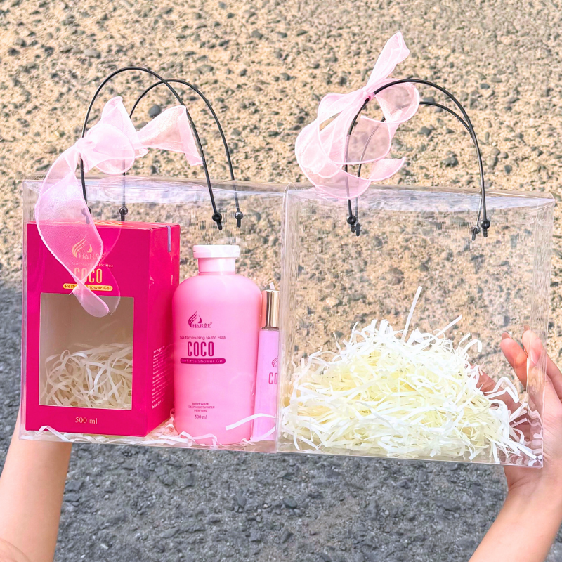 Túi nhựa trong cao cấp giúp khoe trọn sản phẩm bên trong: mỹ phẩm, nước hoa, sữa tắm, gấu bông mini, phụ kiện… nhìn là thấy quà xịn liền.