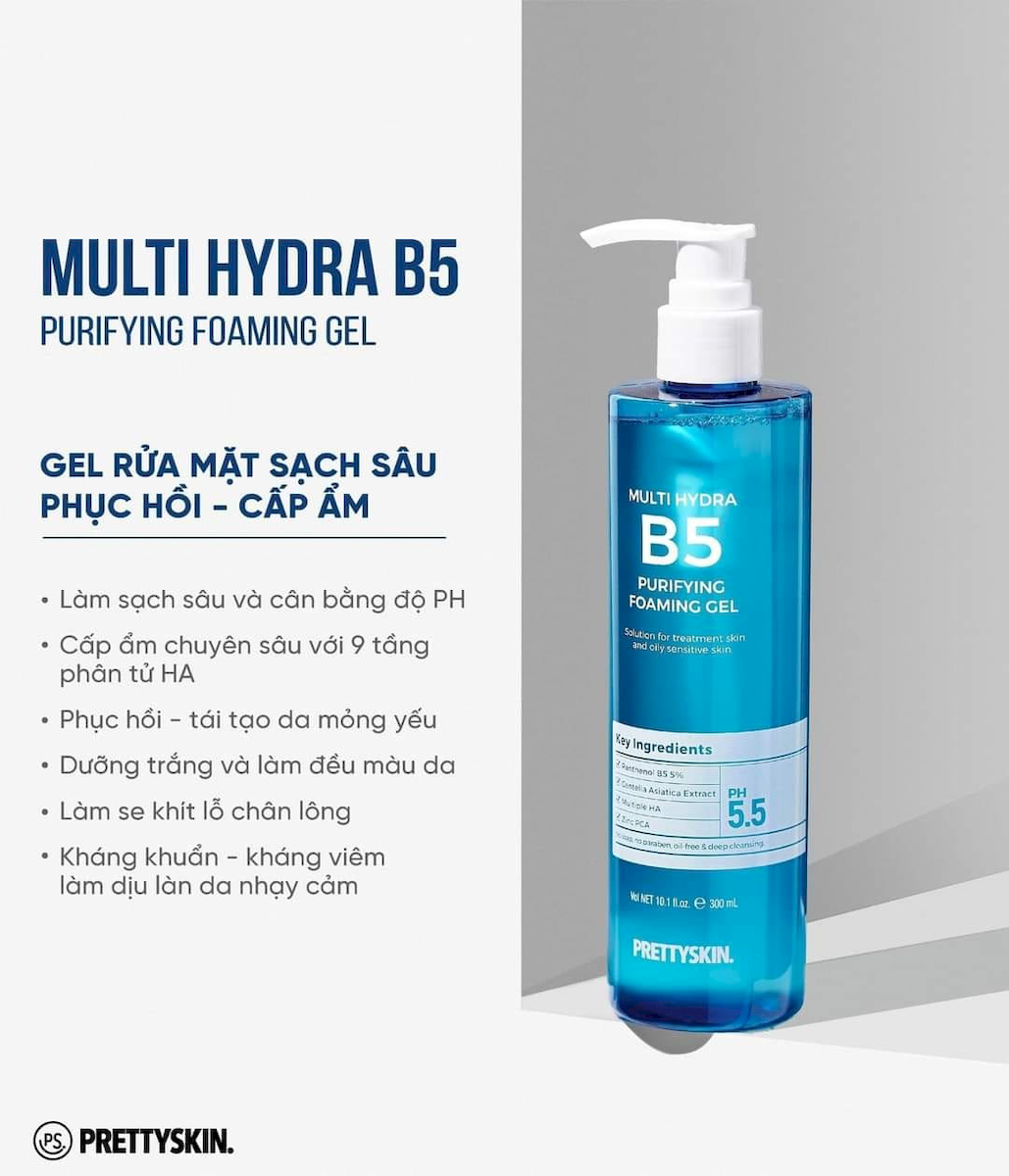 Sữa Rửa Mặt Prettyskin Multi Hydra B5 Cấp Ẩm Sạch Sâu 300ml