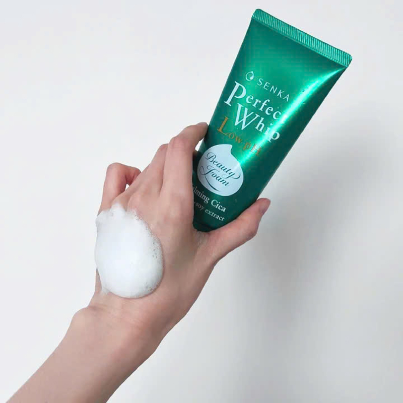 Sữa Rửa Mặt Senka Perfect Whip Chiết Xuất Rau Má Màu Xanh Lá Dịu Nhẹ Cho Da Nhạy Cảm 100g