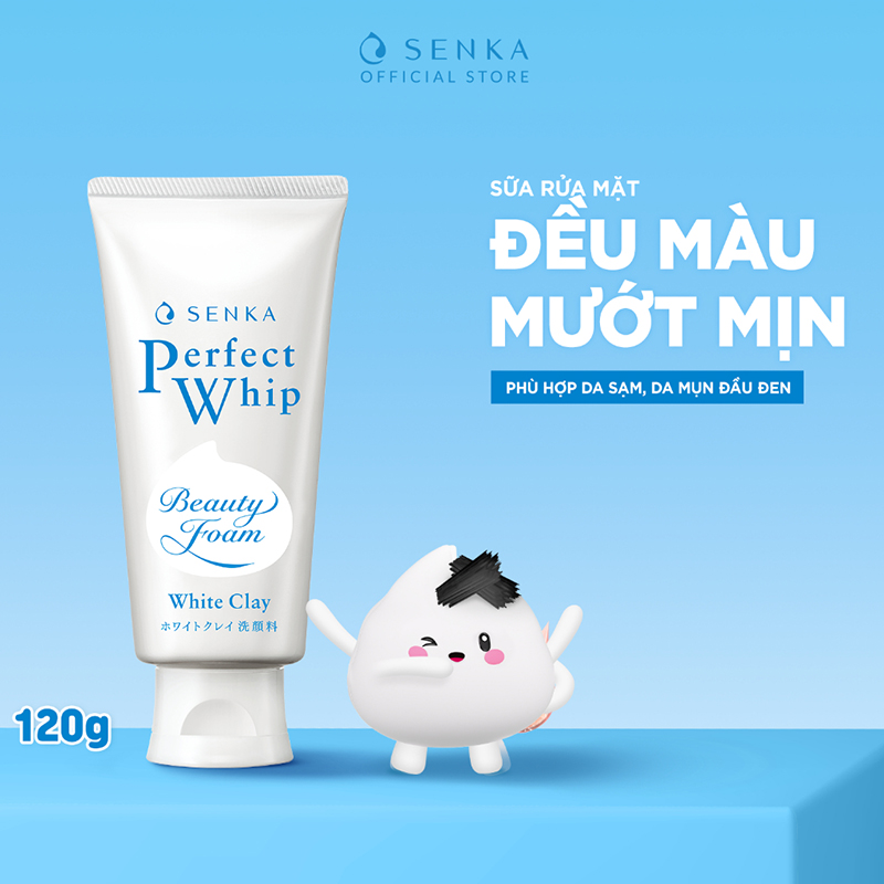 Sữa Rửa Mặt Senka Perfect Whip Đất Sét Màu Trắng 120g – Dành Cho Da Dầu Mụn