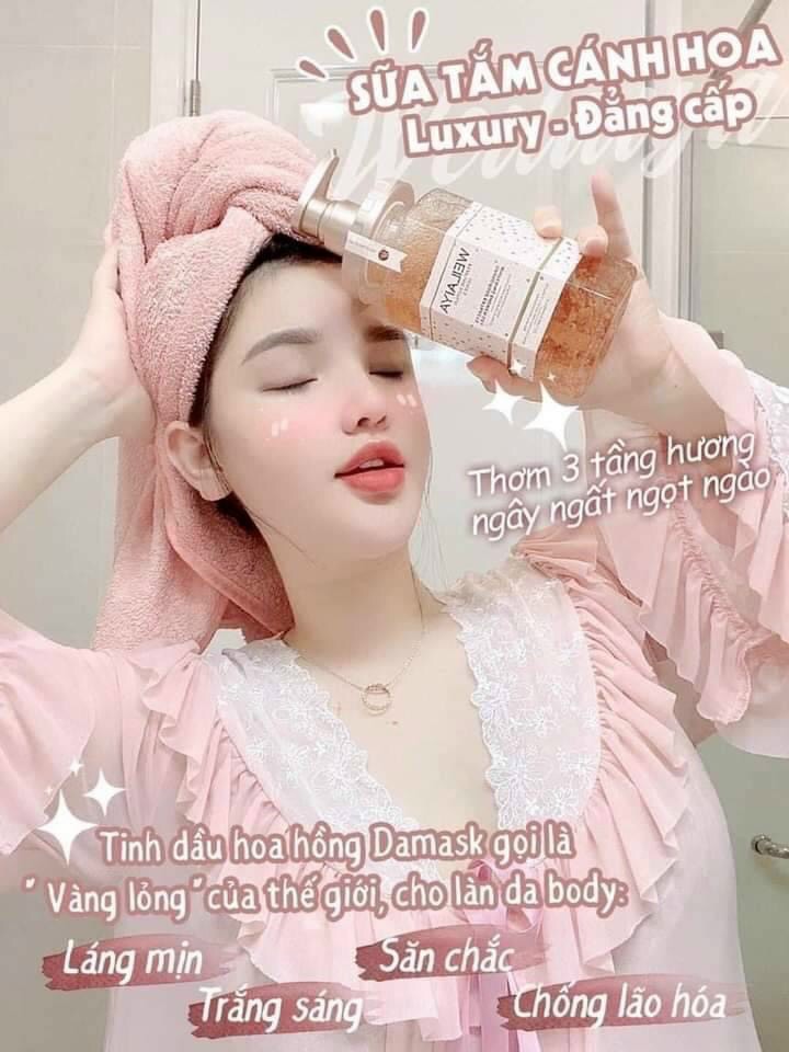 Sữa Tắm Trắng Da Cánh Hoa Hồng Weilaiya Damask 450ml Chính Hãng