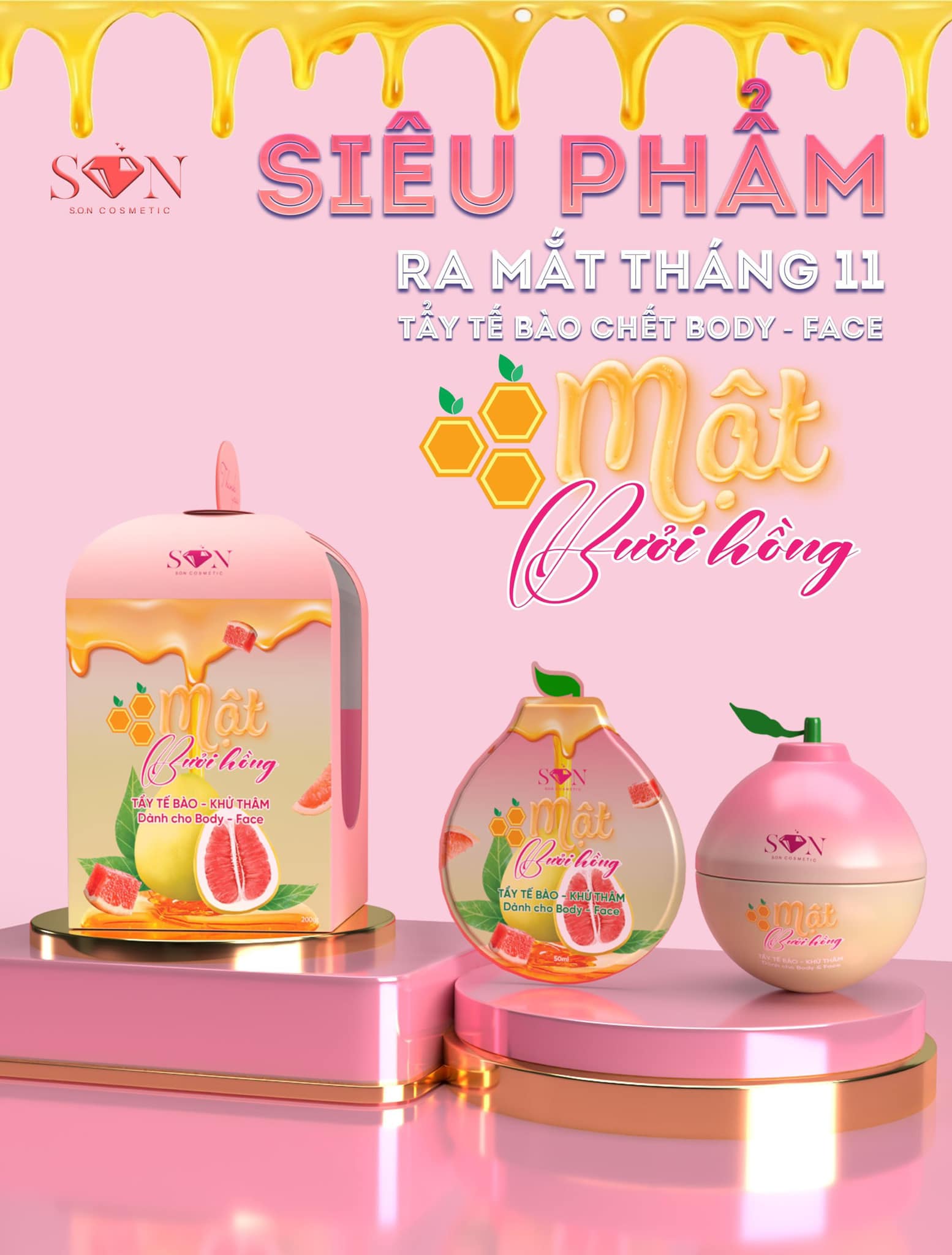 Tẩy Tế Bào Mật Bưởi Hồng Son Khử Thâm Dành Cho Body Và Face