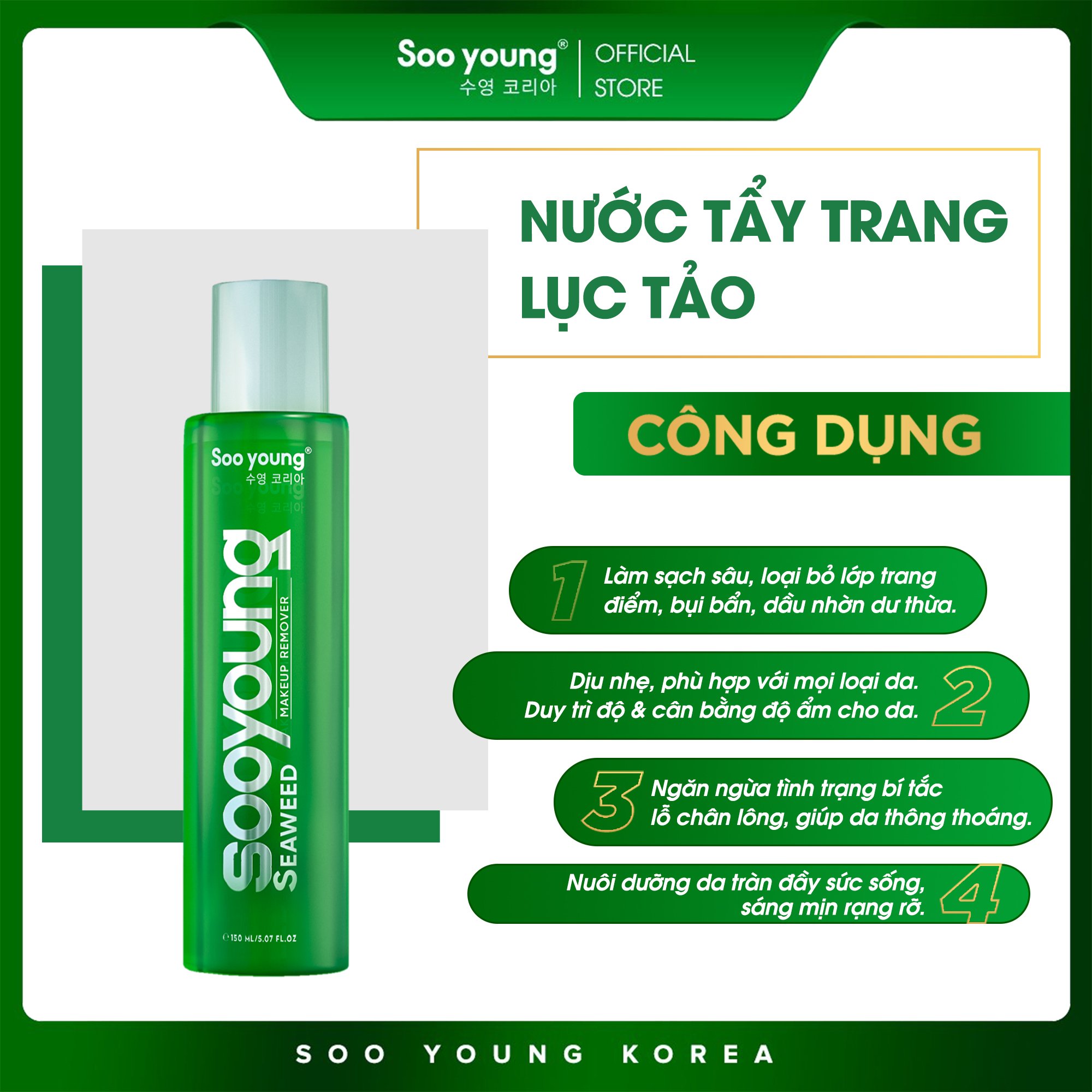Nói về dòng tẩy trang dịu nhẹ, thân thiện với da thì em SEAWEED MAKEUP REMOVER xứng đáng đứng top1 các sản phẩm Bestseller nhà Sooyoung.