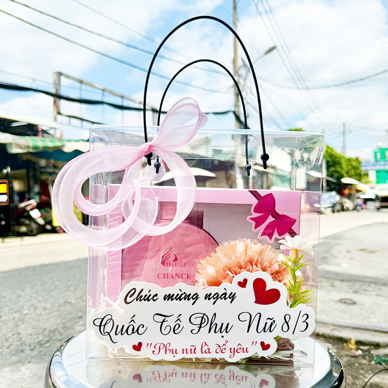 Túi Quà Tặng 8-3 Sữa Tắm Nước Hoa Charme Chance Hồng 250ml + Nước Hoa Charme Chance (Có Đèn Chớp)