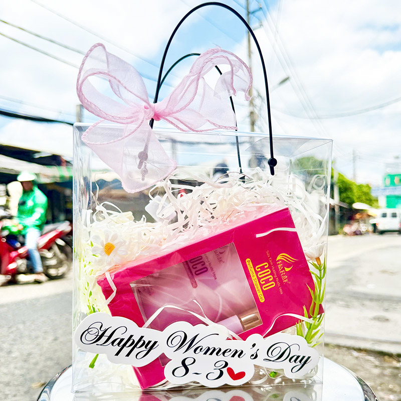 Túi Quà Tặng 8-3 Sữa Tắm Nước Hoa Charme Coco Hồng + Nước Hoa Charme Coco (Có Đèn Chớp)