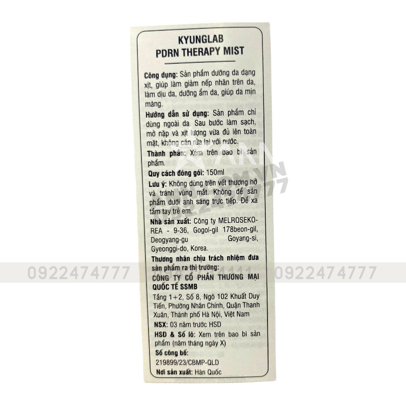 Xịt Khoáng Kyung Lab PDRN Therapy Mist Hàn Quốc 150ml
