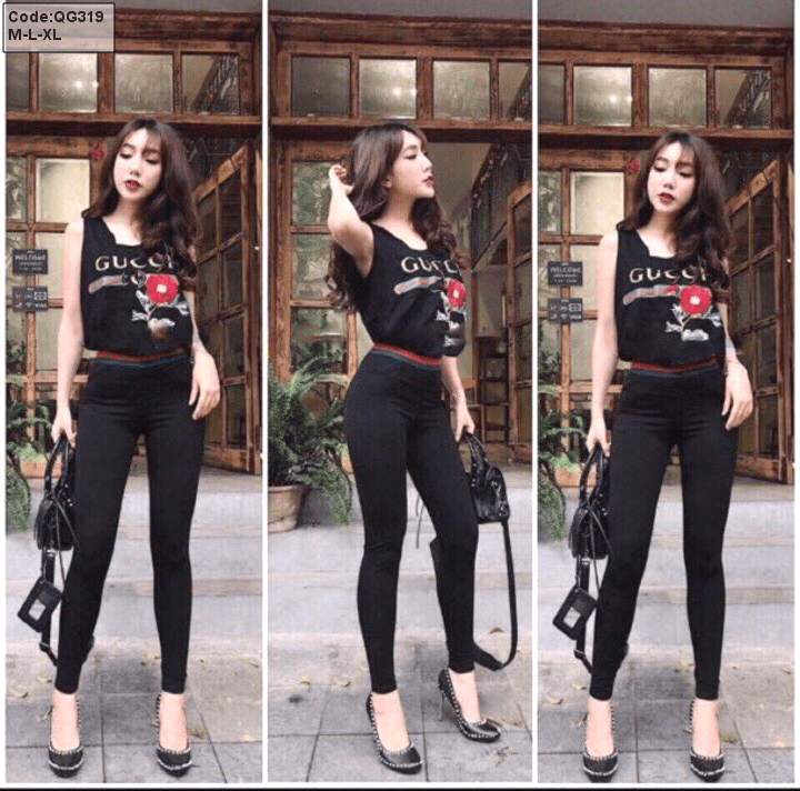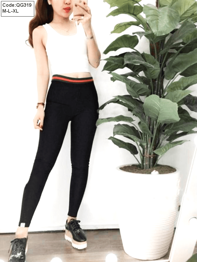 Xưởng sỉ quần legging nữ phối lưng sọc đỏ cao cấp( kèm hộp)